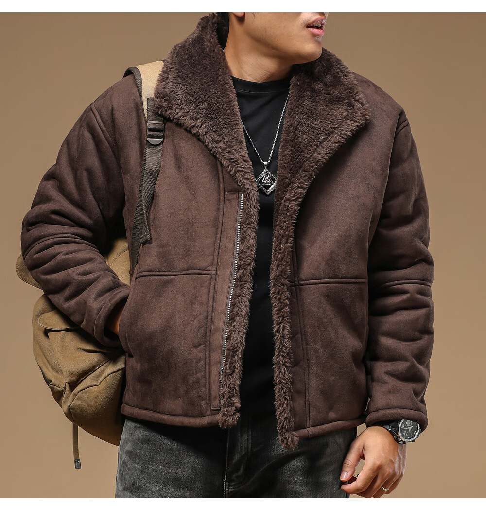 Ji Yan Chao Luxury Fur Integrated 2024 New Popular Men's Short Leather Jacket Men's High-end Handsome Casual Jacket Brown M