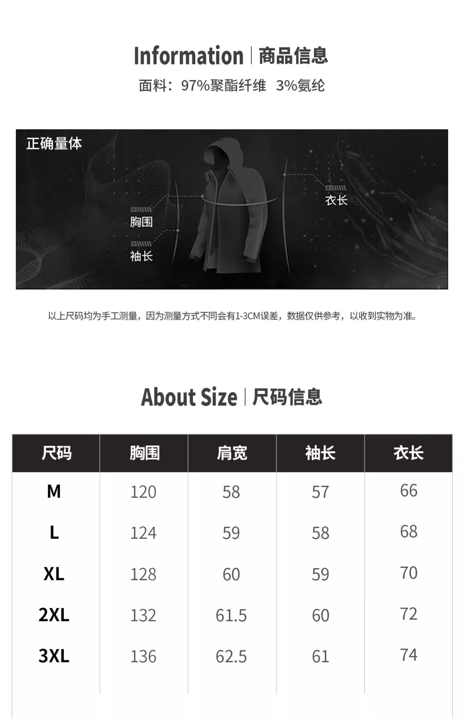 China (cm) 165 / 88-90 170 / 96-98 175 / 108-110 180 / 118-122 185 / 126-130