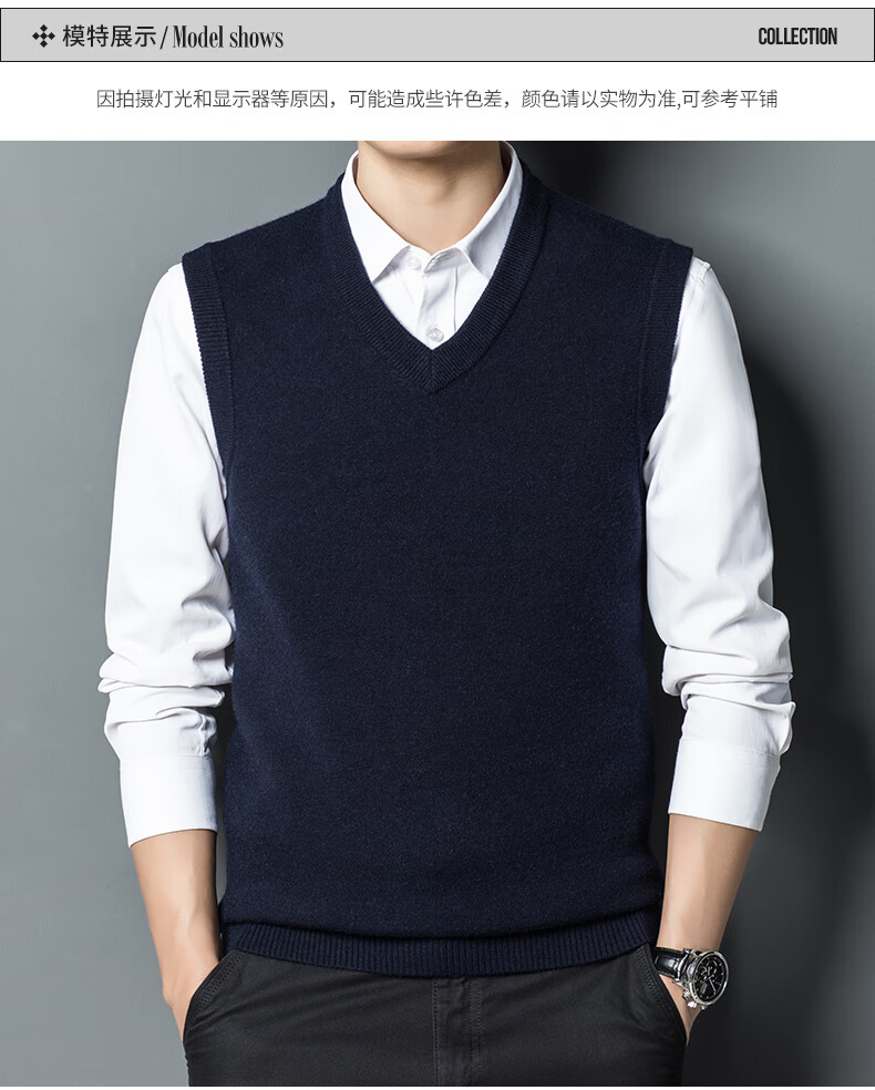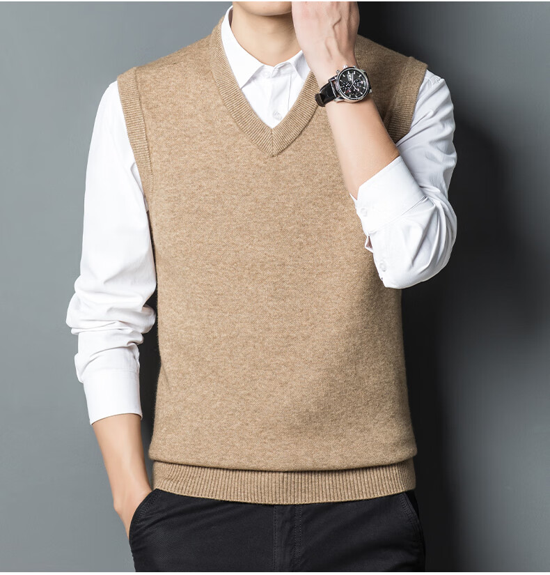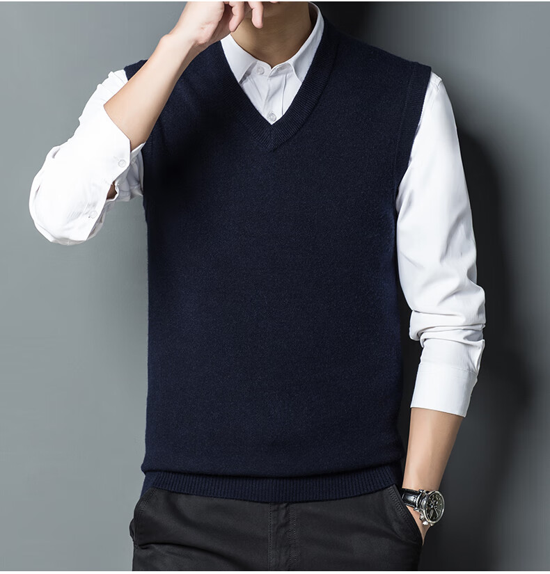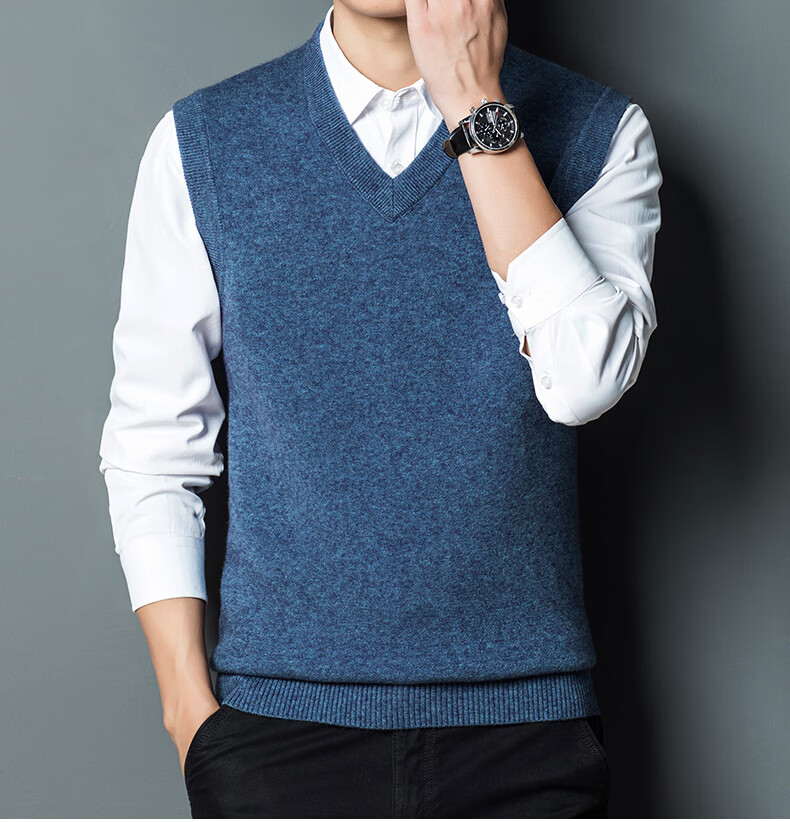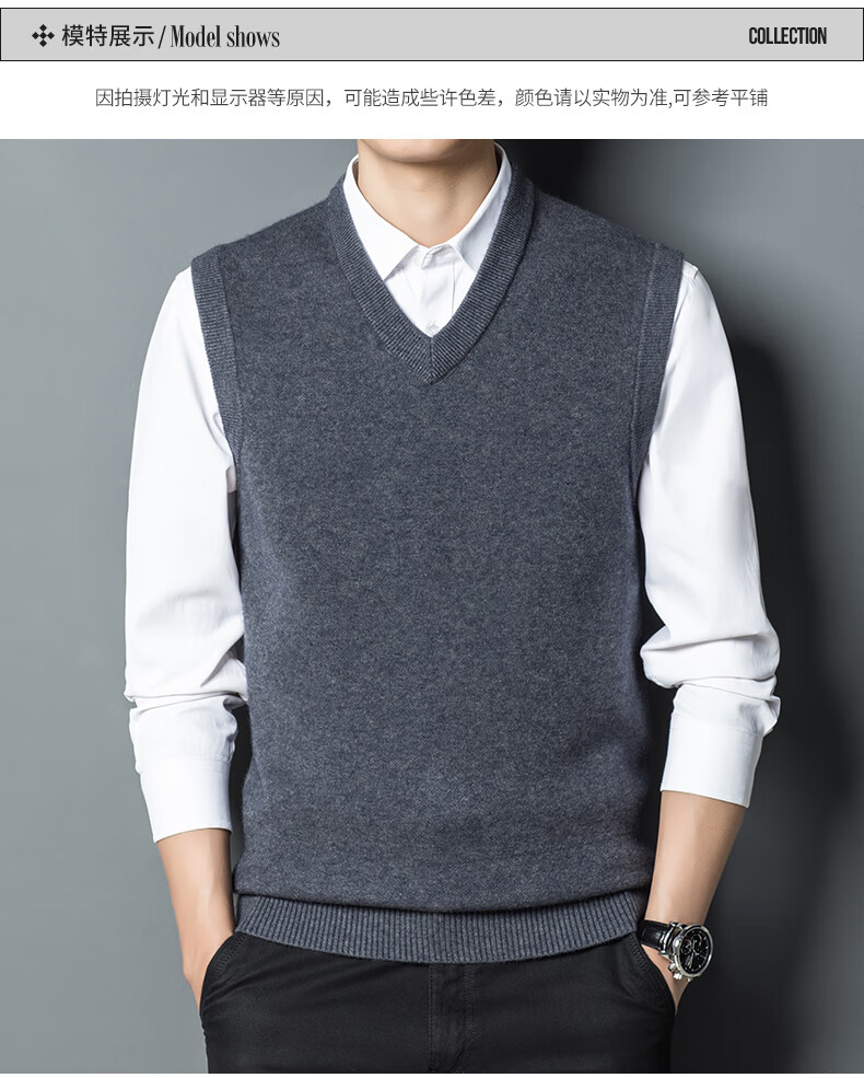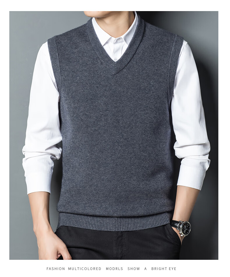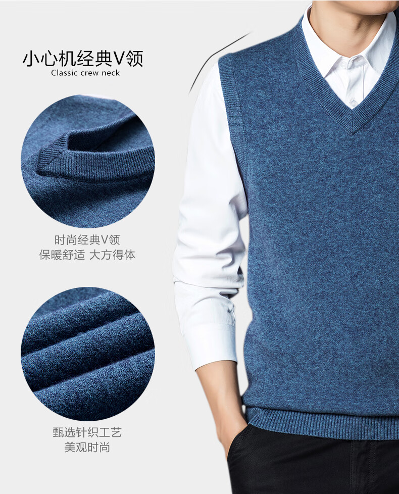 Hengyuan Xiangshi Cashmere Sweater Men's Middle-aged Thickened Sweater Vest Wool Waistcoat V-neck Vest New Style Gray L (170)