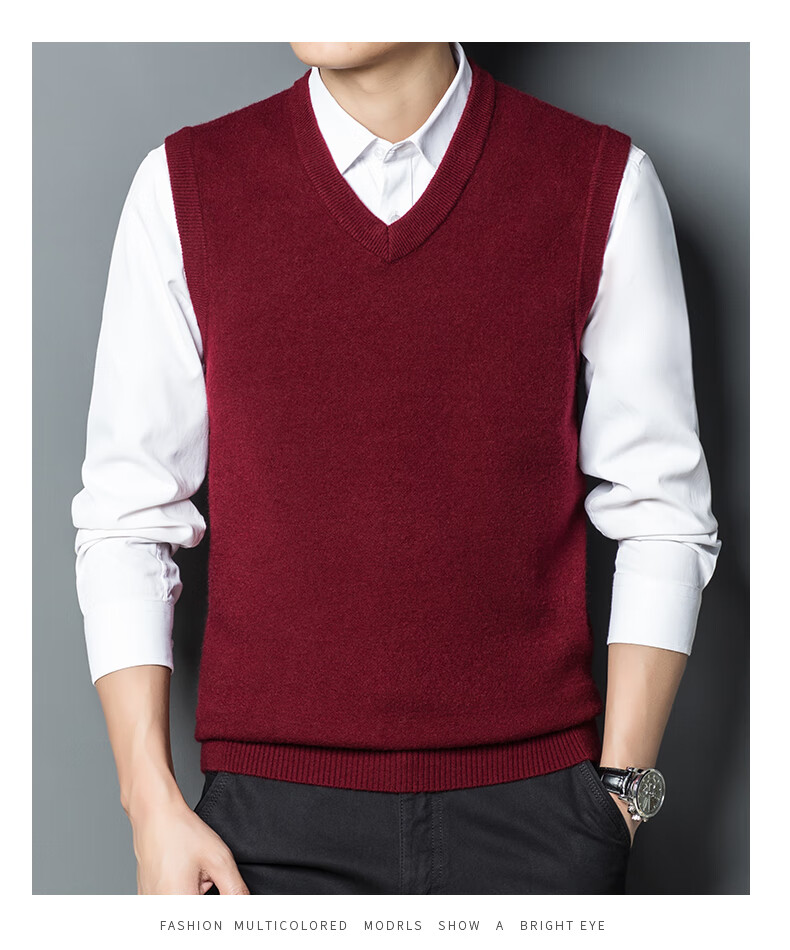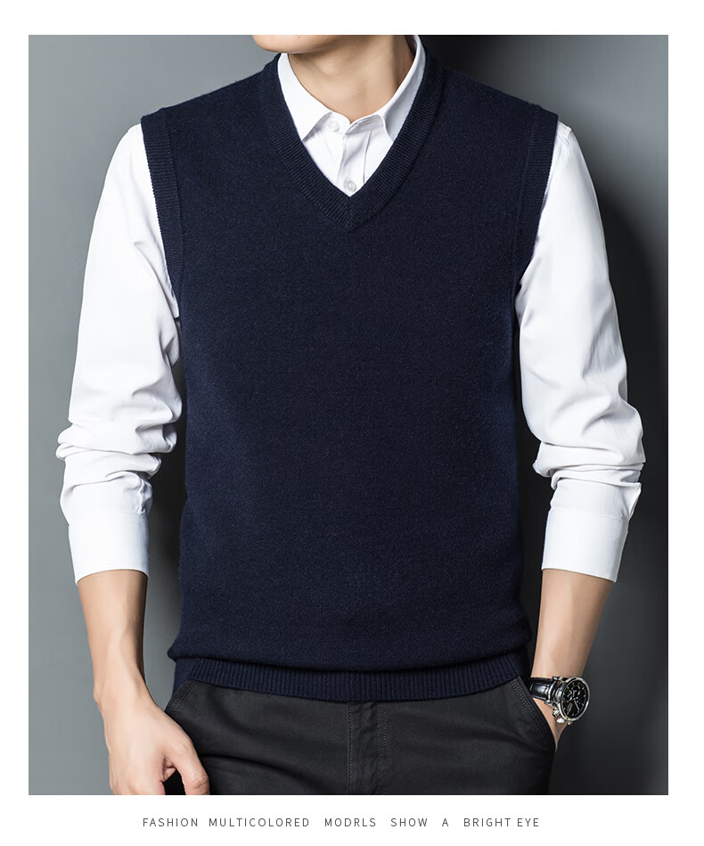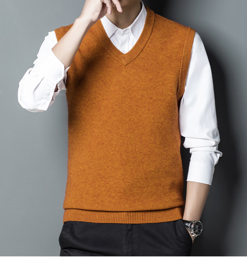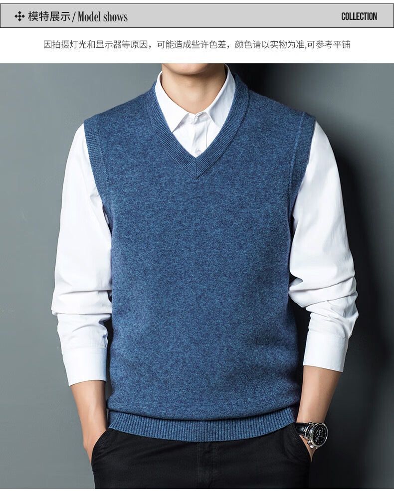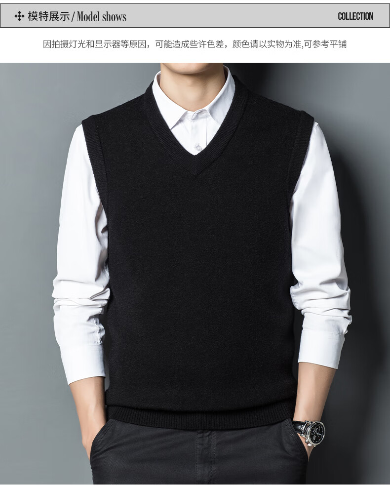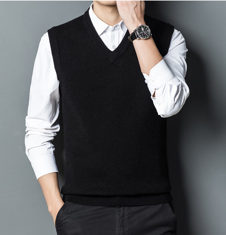Hengyuan Xiangshi Cashmere Sweater Men's Middle-aged Thickened Sweater Vest Wool Waistcoat V-neck Vest New Style Gray L (170)