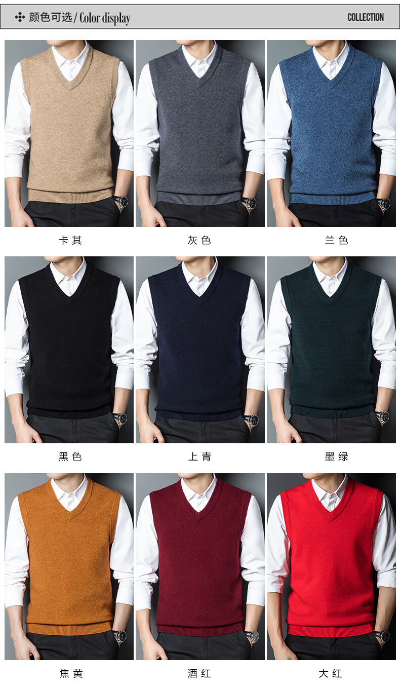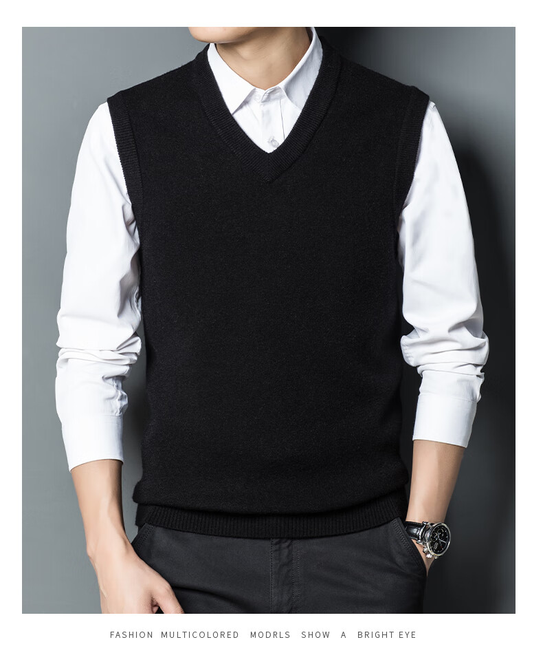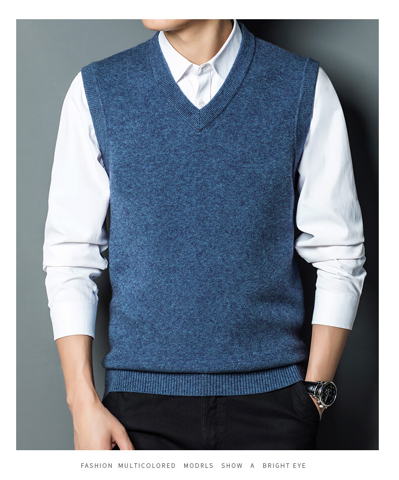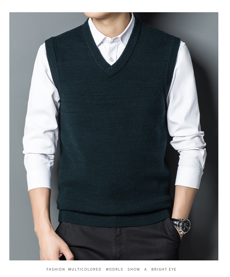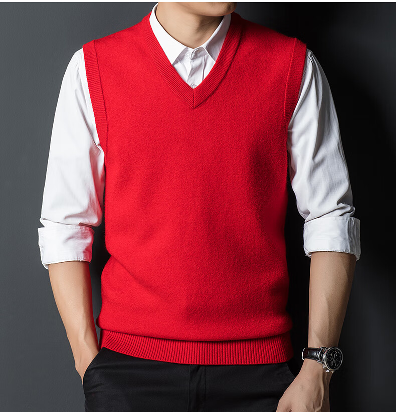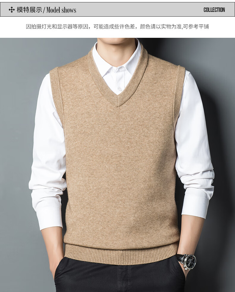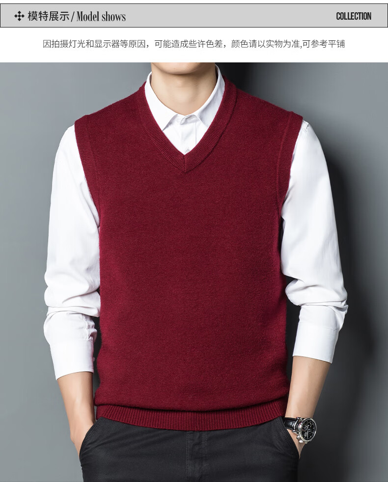 Hengyuan Xiangshi Cashmere Sweater Men's Middle-aged Thickened Sweater Vest Wool Waistcoat V-neck Vest New Style Gray L (170)