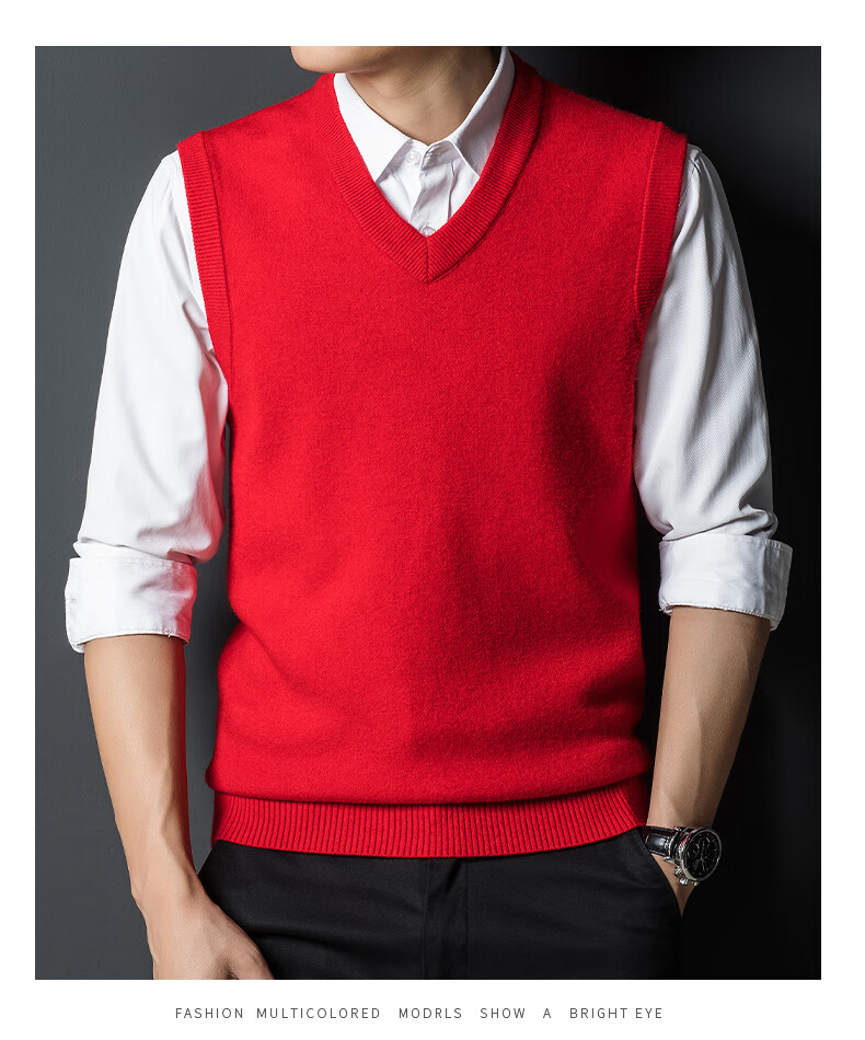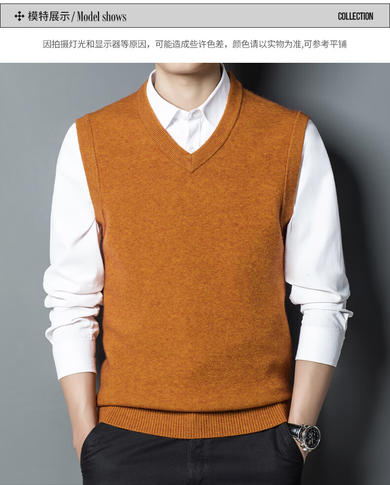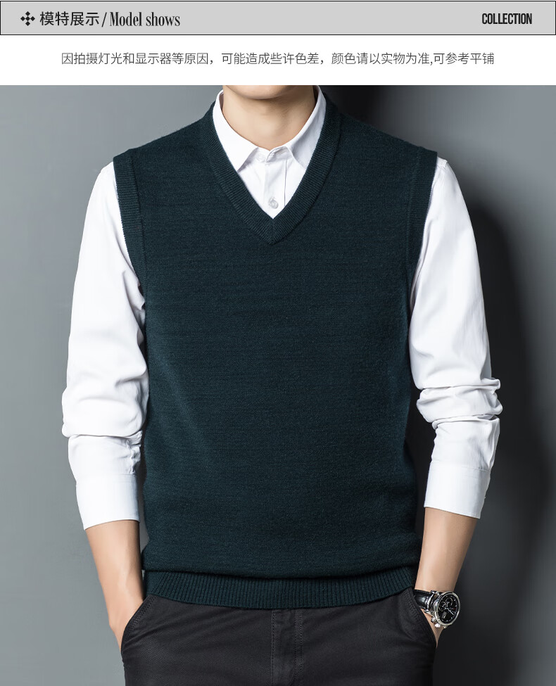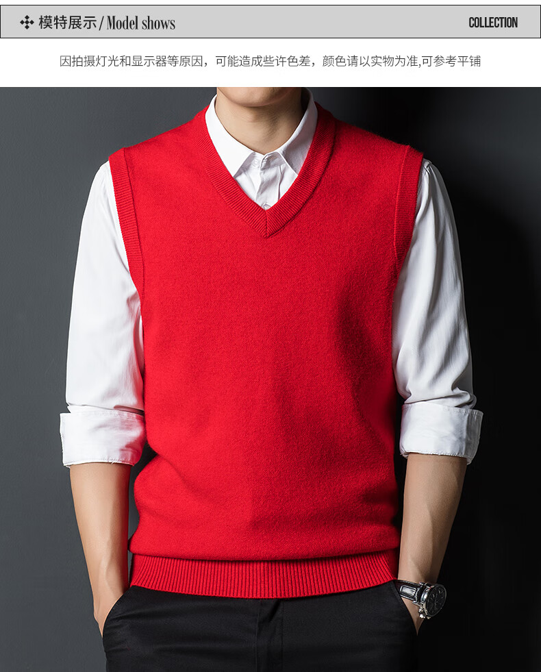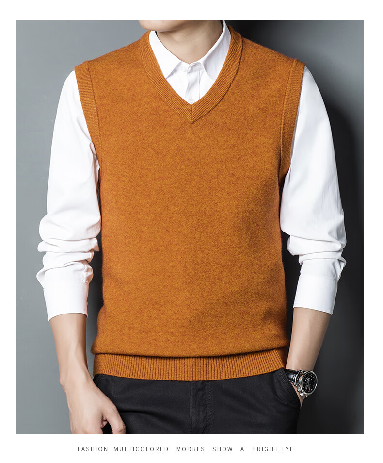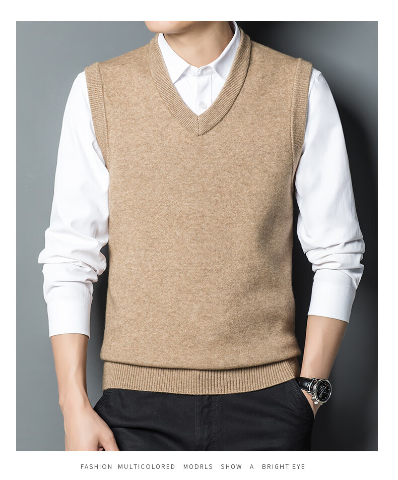 Hengyuan Xiangshi Cashmere Sweater Men's Middle-aged Thickened Sweater Vest Wool Waistcoat V-neck Vest New Style Gray L (170)