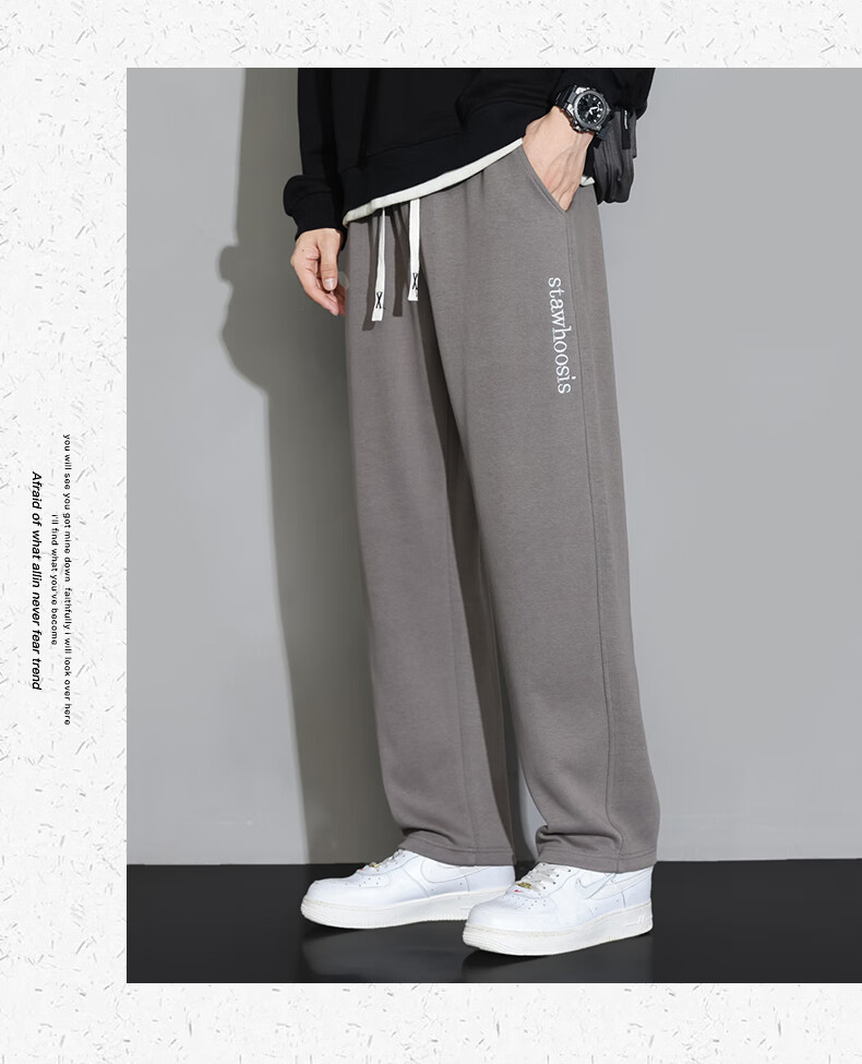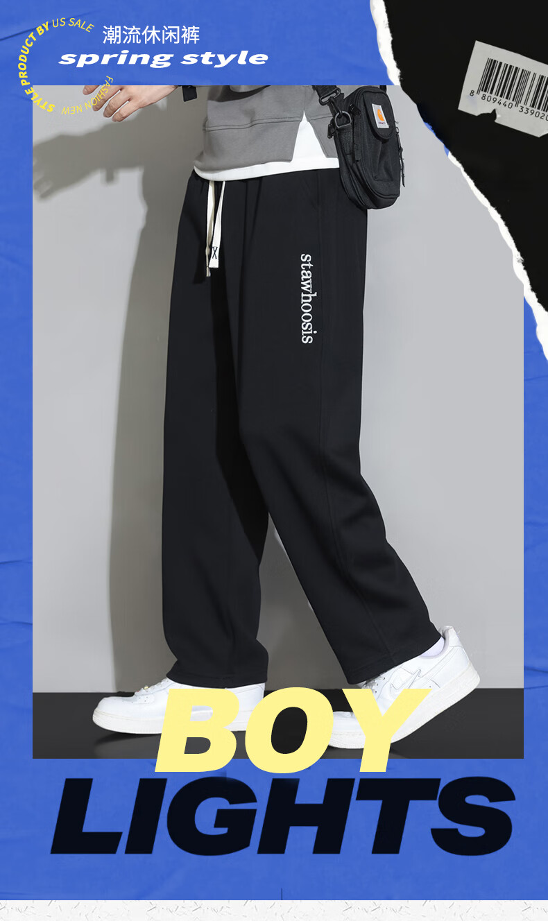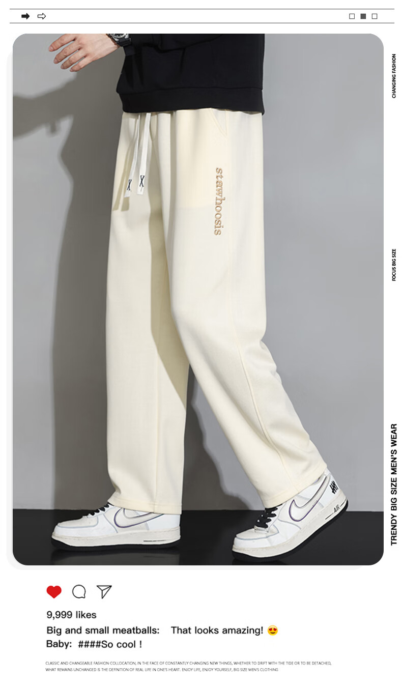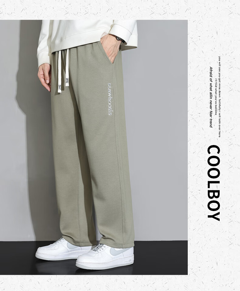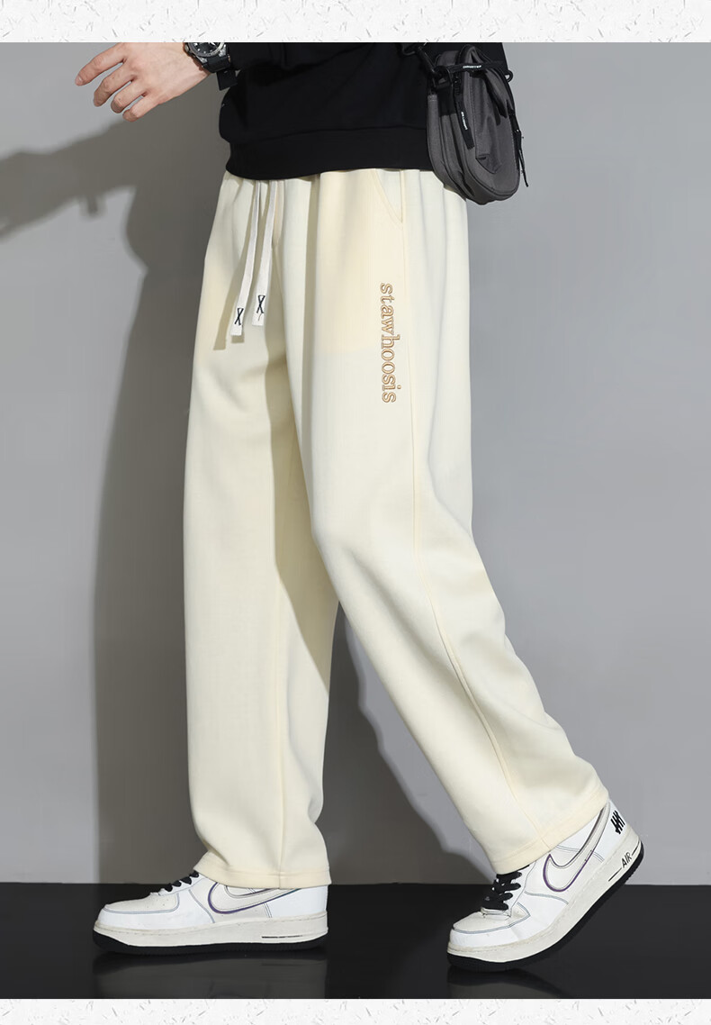 ROMON American casual trousers for men spring and autumn 2024 new loose and versatile sports straight boys' trendy brand trousers 88 beige XL 120-140Jin Jin equals 0.5 kg