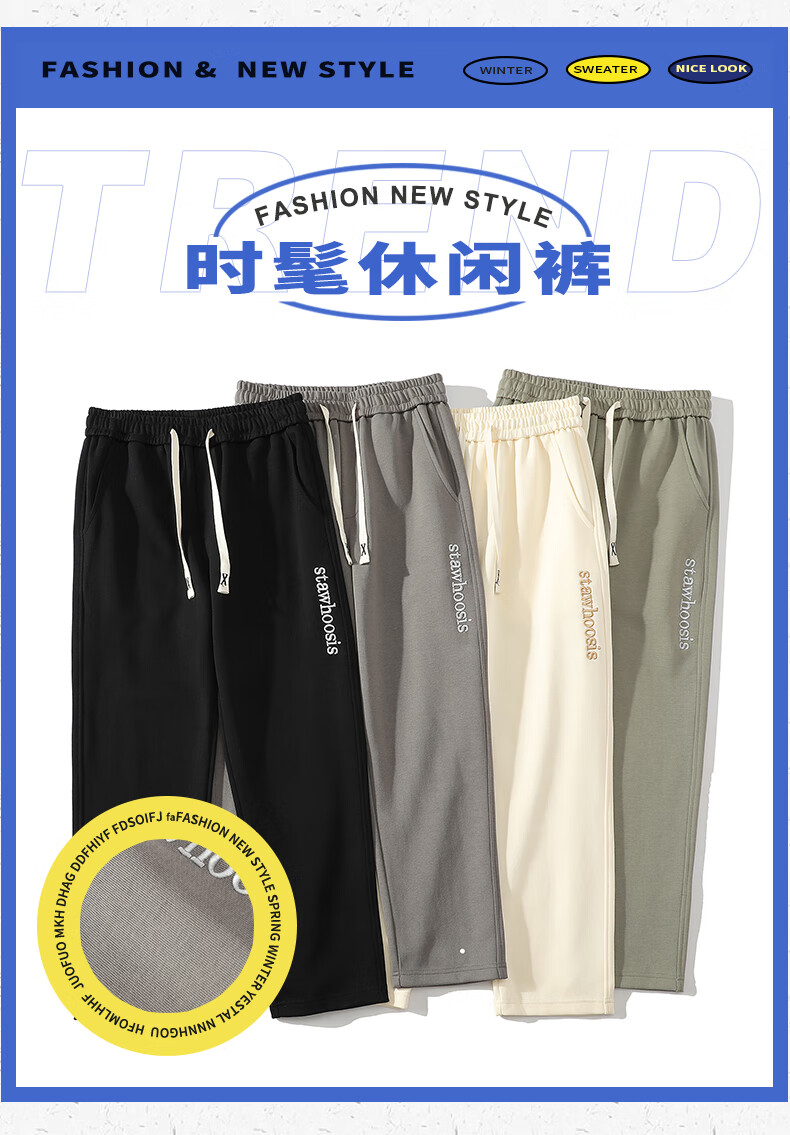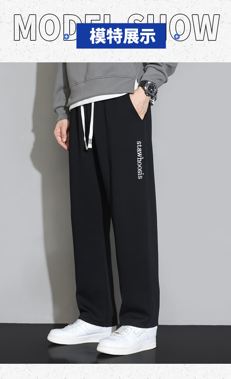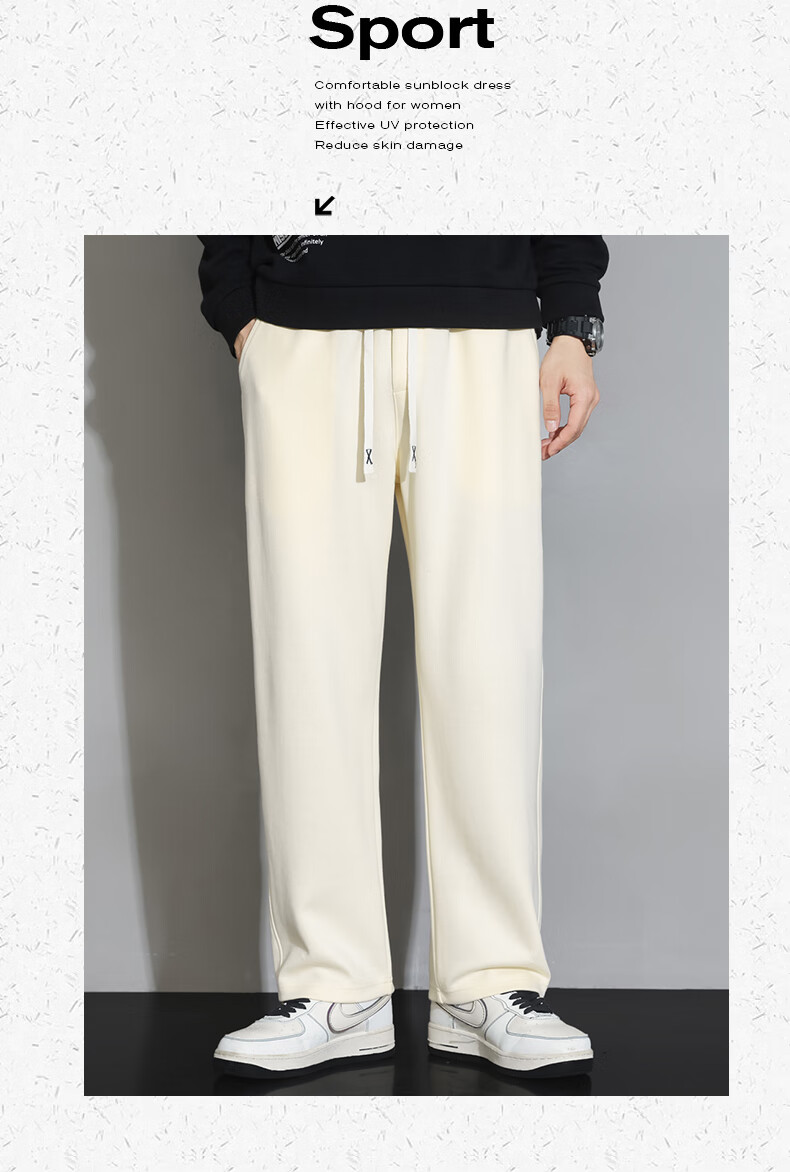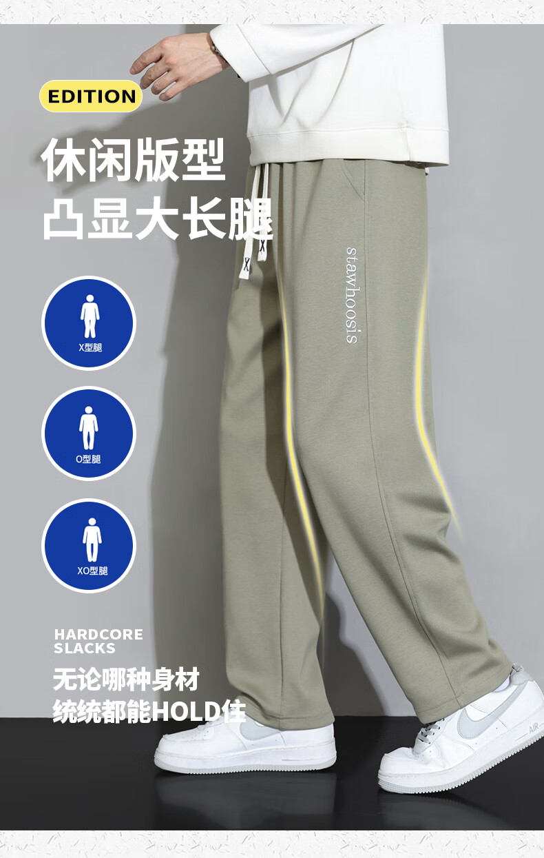ROMON American casual trousers for men spring and autumn 2024 new loose and versatile sports straight boys' trendy brand trousers 88 beige XL 120-140Jin Jin equals 0.5 kg