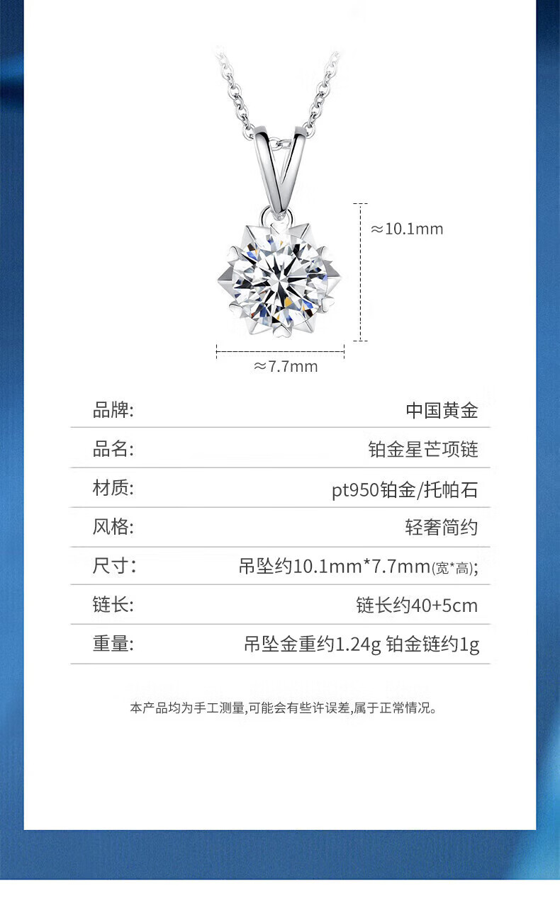 China Gold (CHINA GOLD) Starburst Platinum Necklace for Women Platinum Pendant Clavicle Chain Practical Birthday Gift for Girlfriend and Wife Wedding Anniversary Jingsuda Platinum Starburst Pendant + Platinum Chain