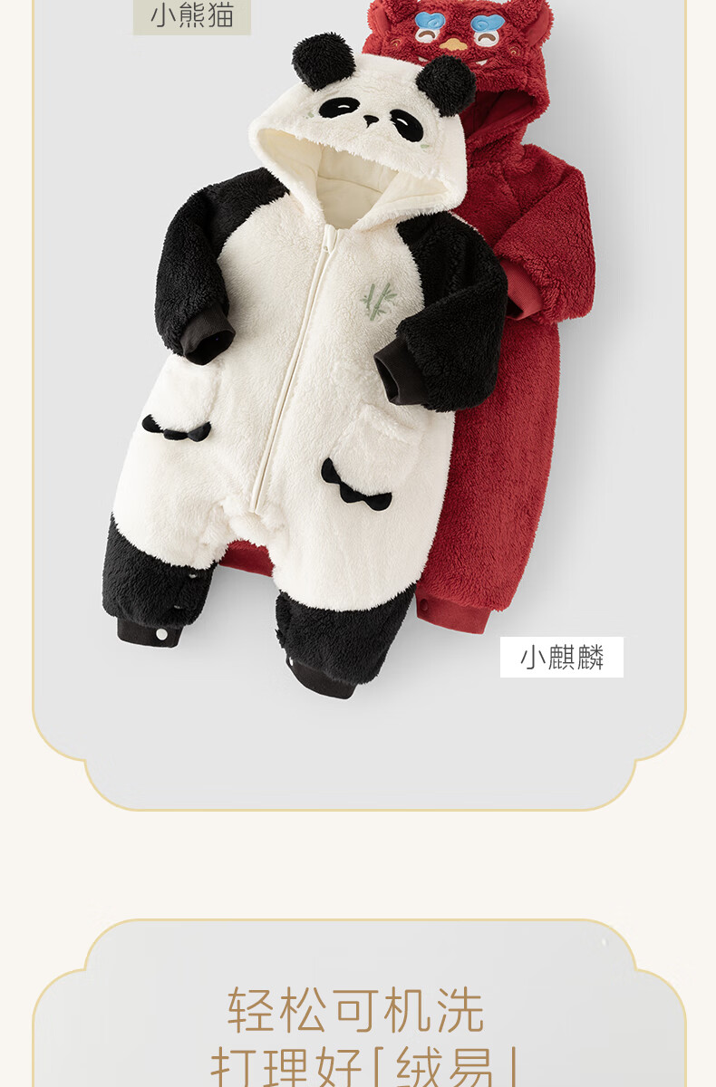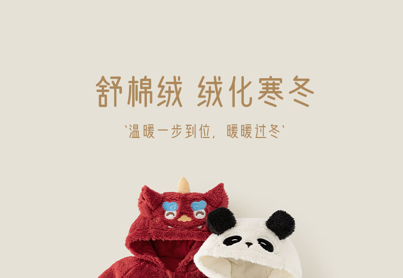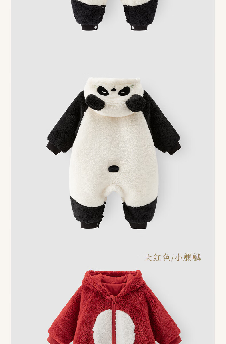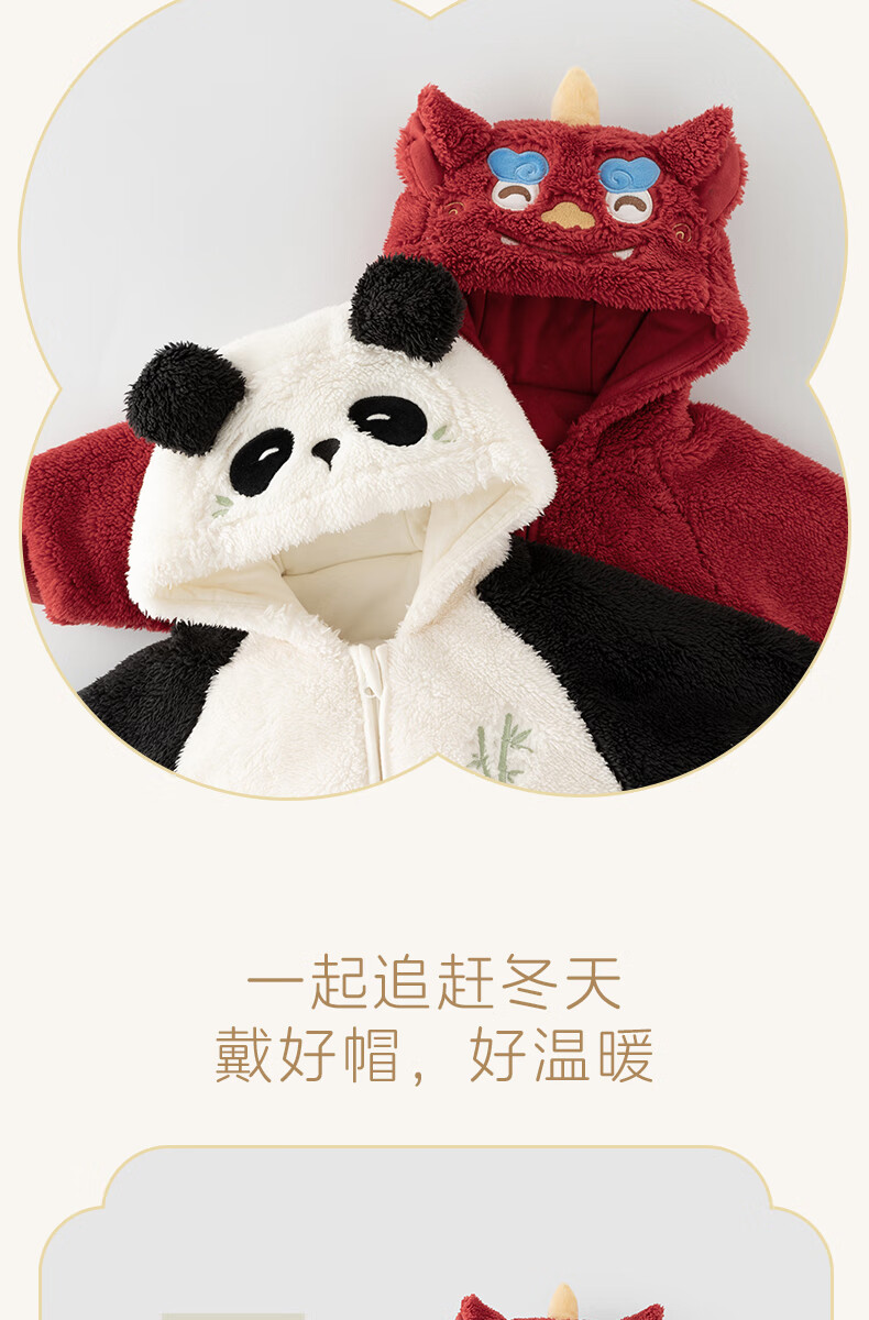 Wooden cotton plush hooded coat for boys and girls in winter baby thickened quilted warm outing red New Year's greetings clothes Red Panda 90 cm