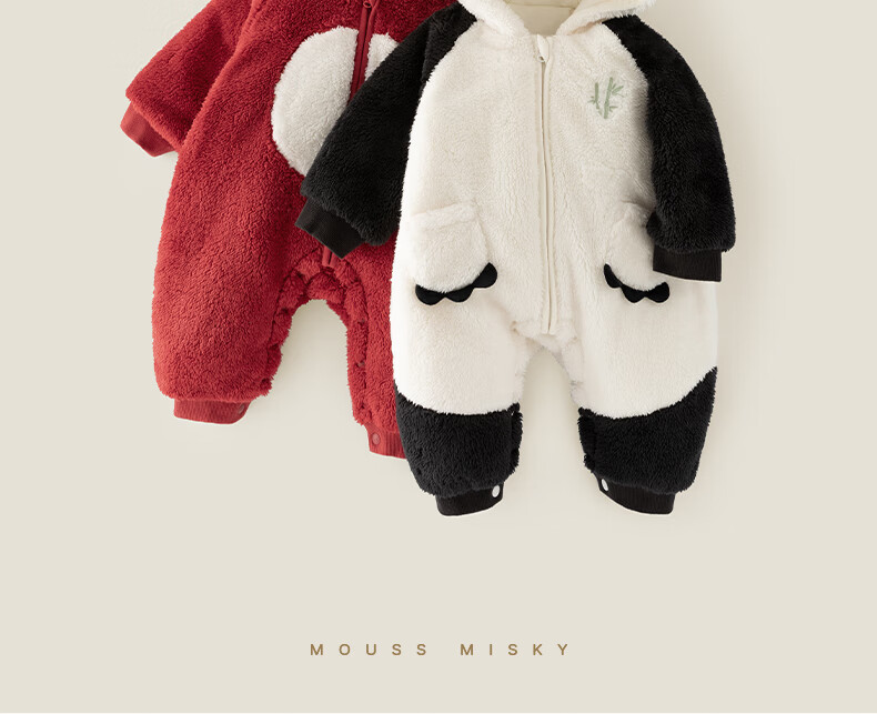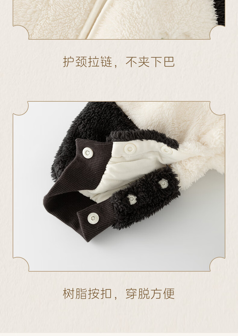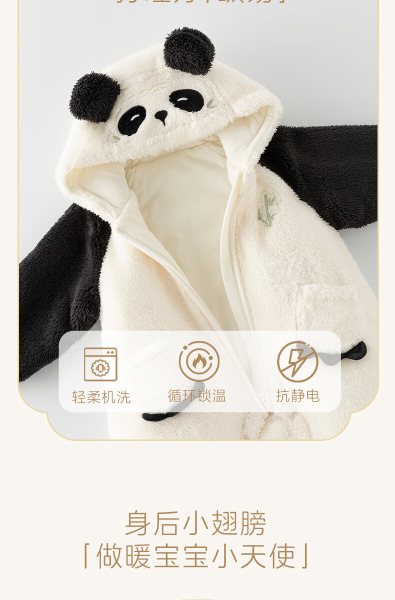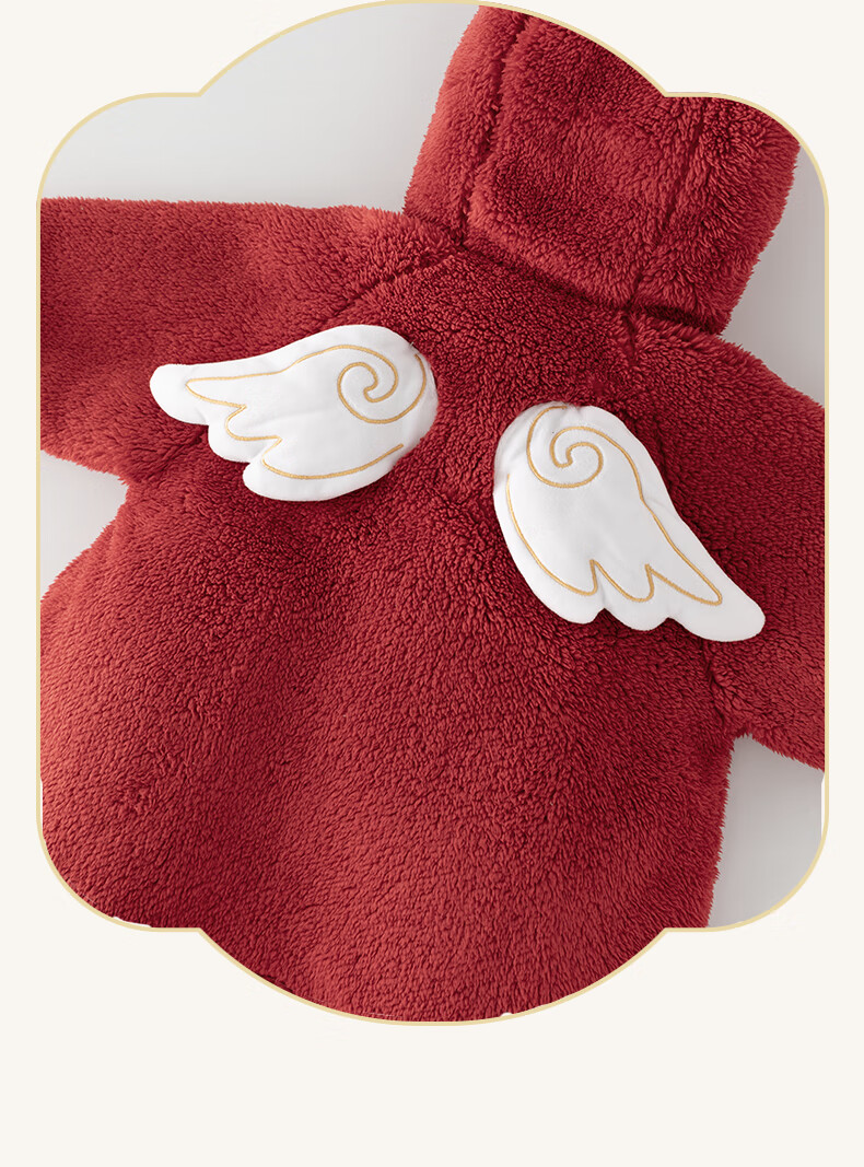 Wooden cotton plush hooded coat for boys and girls in winter baby thickened quilted warm outing red New Year's greetings clothes Red Panda 90 cm