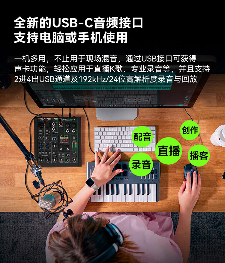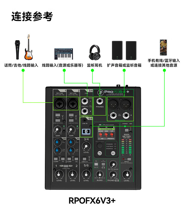 RUNNINGMAN Meiqi ProFX6V3 outdoor live broadcast karaoke sound card mobile phone computer karaoke singing recording equipment network conference polar white suit (headphones + mixer + speaker)