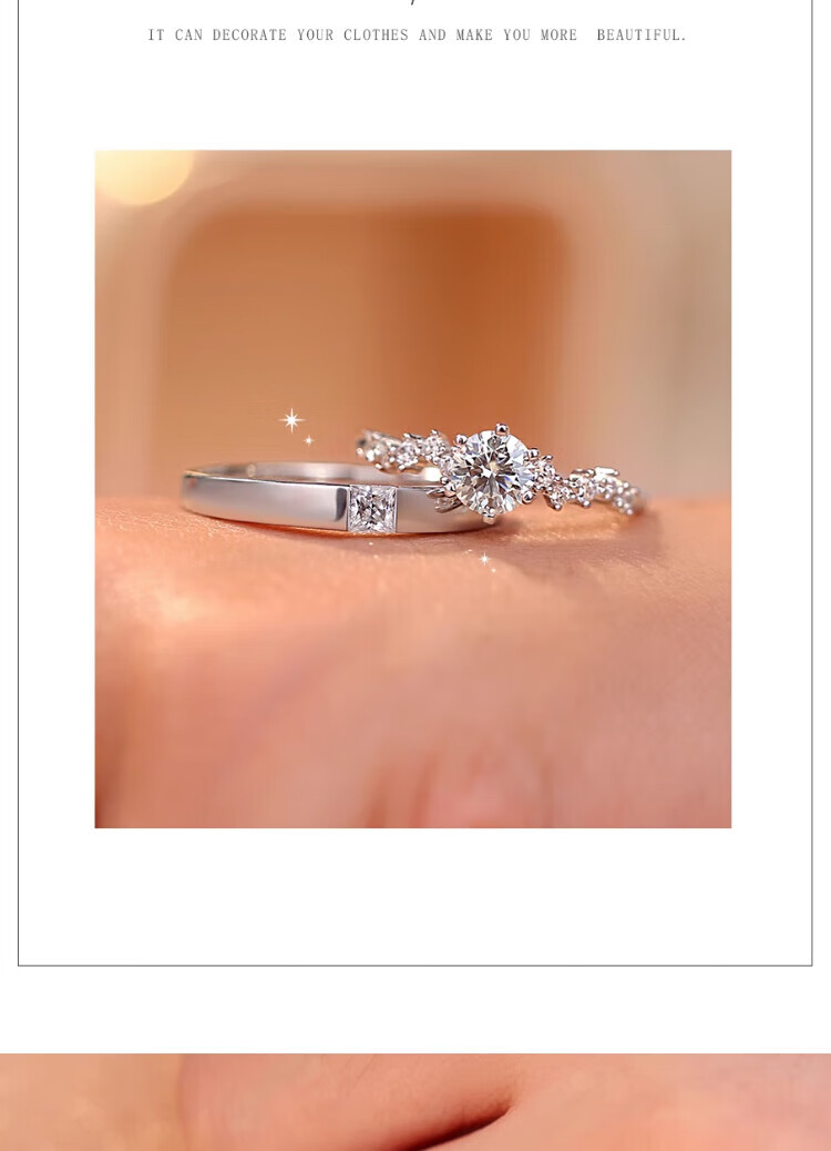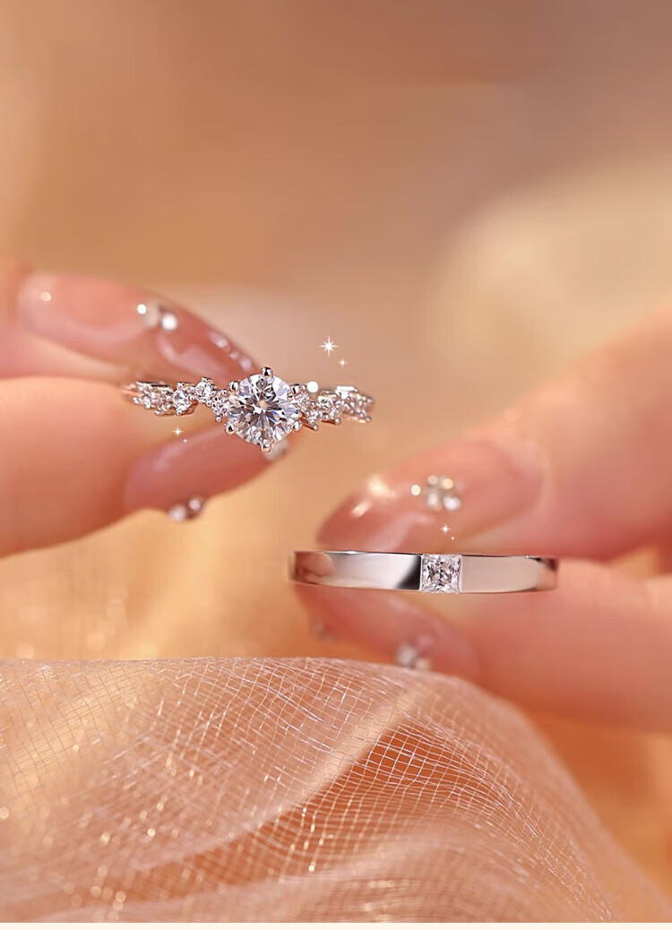 MZMZ Platinum Ring Starry Sky Starry Couple Ring Set with Diamond Proposal Engagement Anniversary Birthday Valentine's Day Gift Light Luxury Style - Starry Sky Pairing Ring