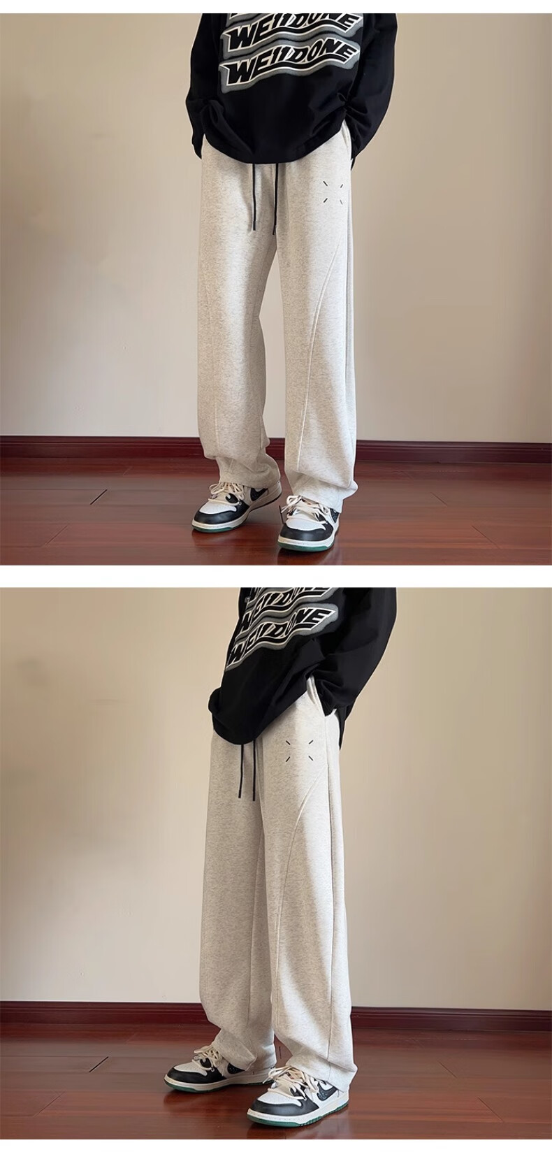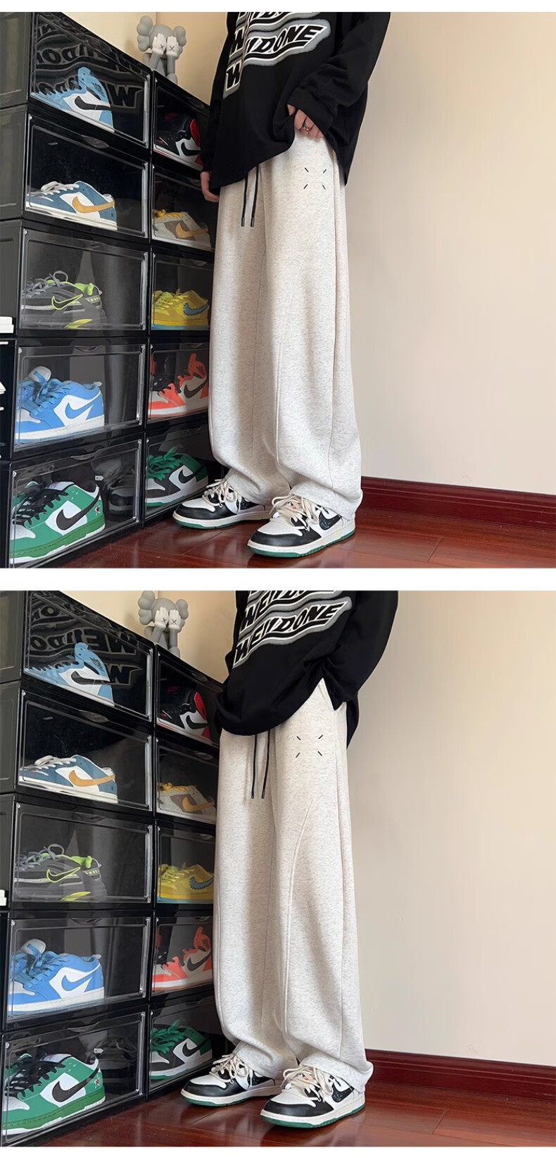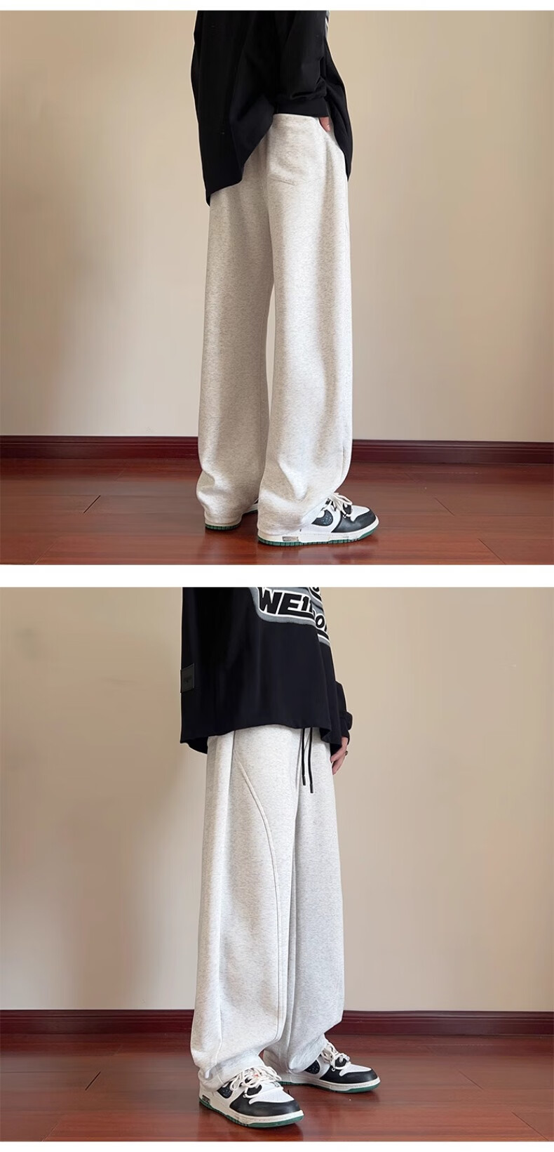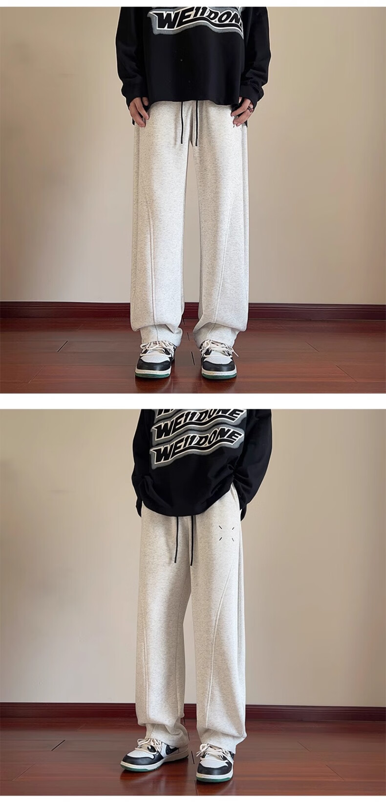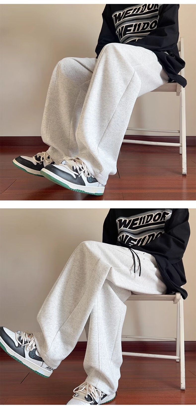 Cebrodz France casual pants men's design scimitar pants autumn new sweatpants loose straight sports pants plus velvet pants white gray plus velvet 2XL