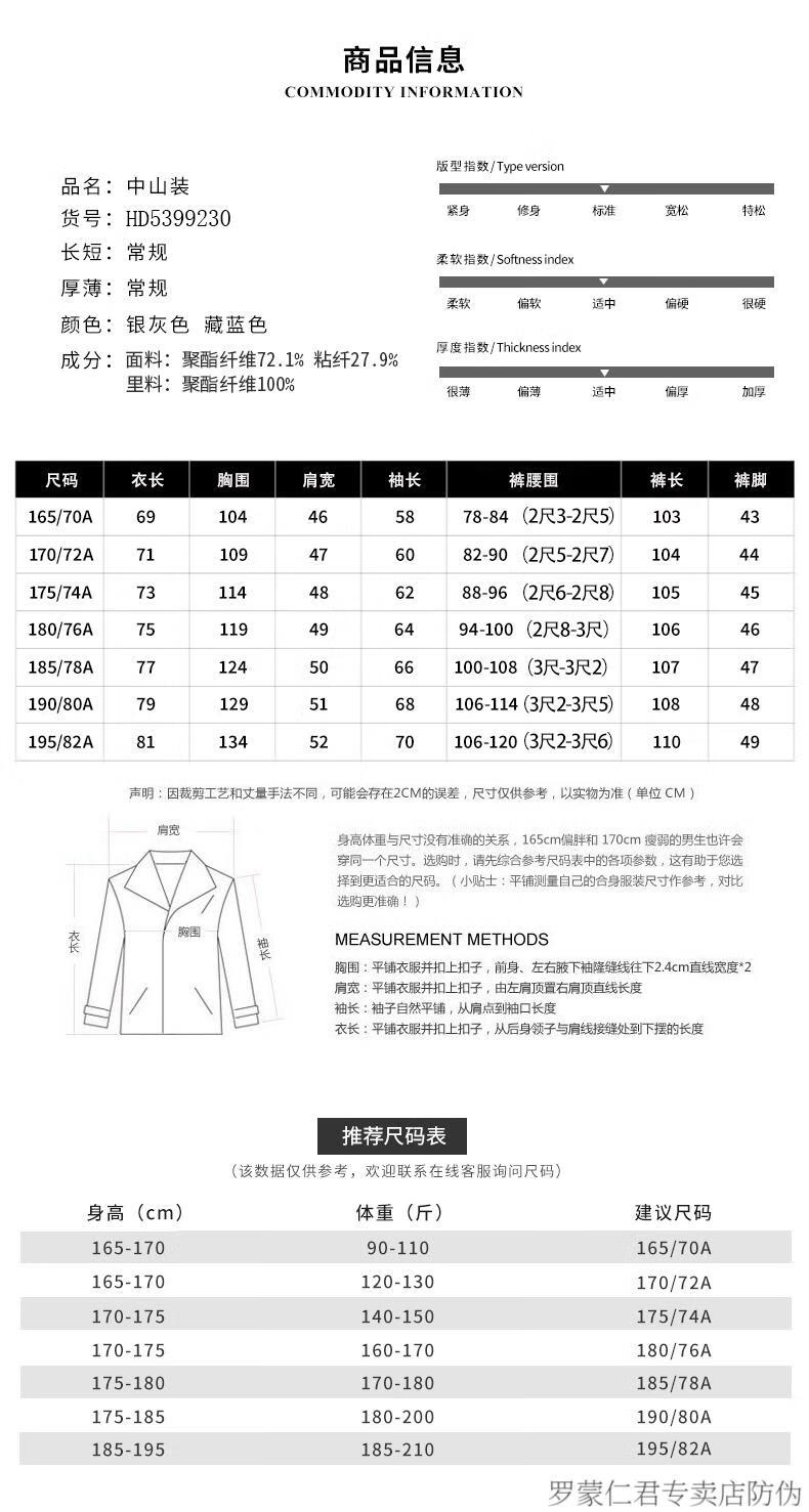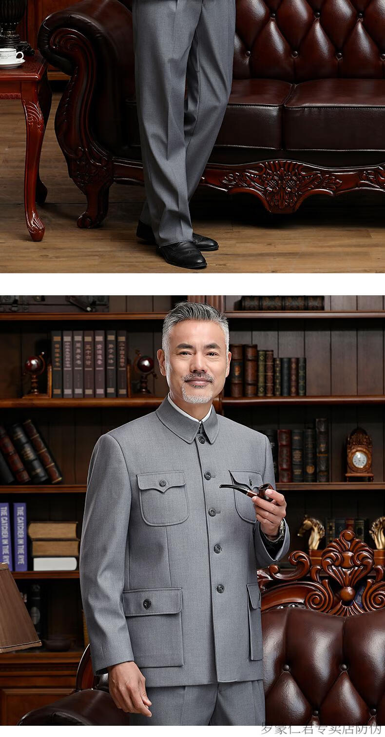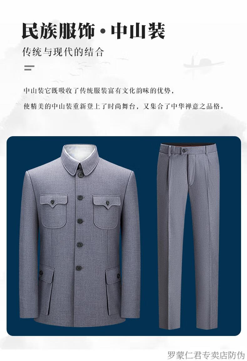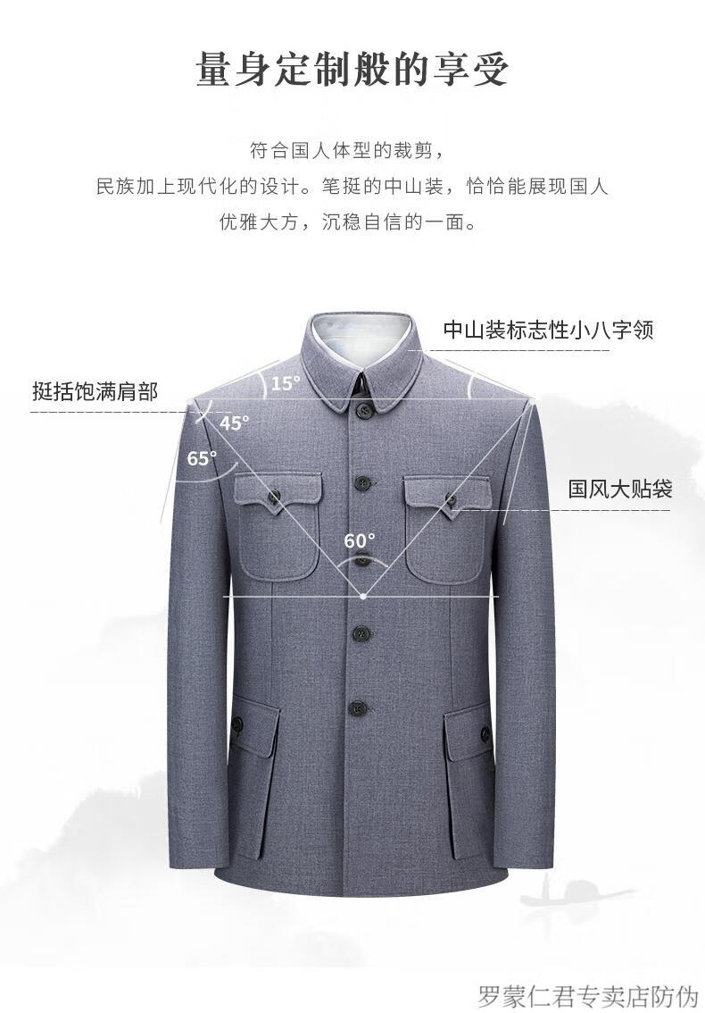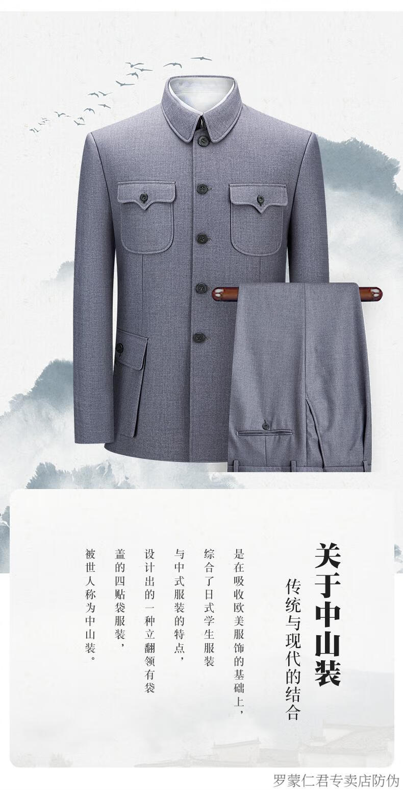 ROMON middle-aged and elderly autumn and winter Chinese tunic suit daily business banquet father's suit Chinese style suit Mao's tunic suit dark gray 170/72A