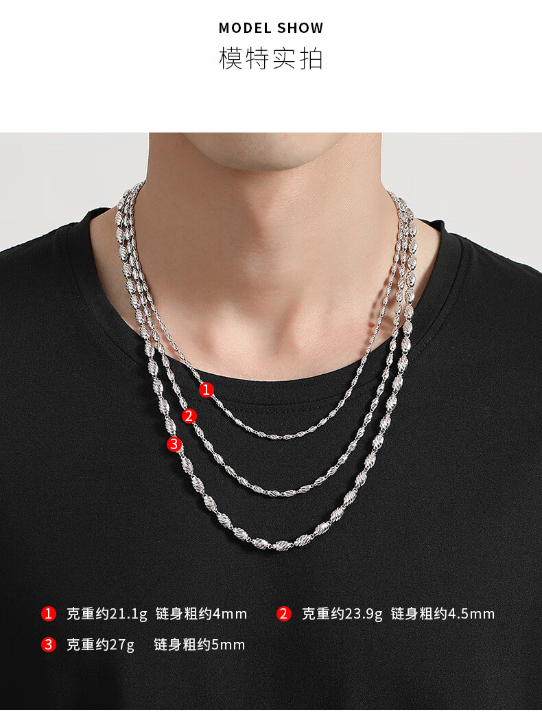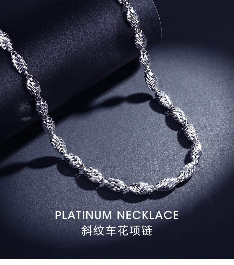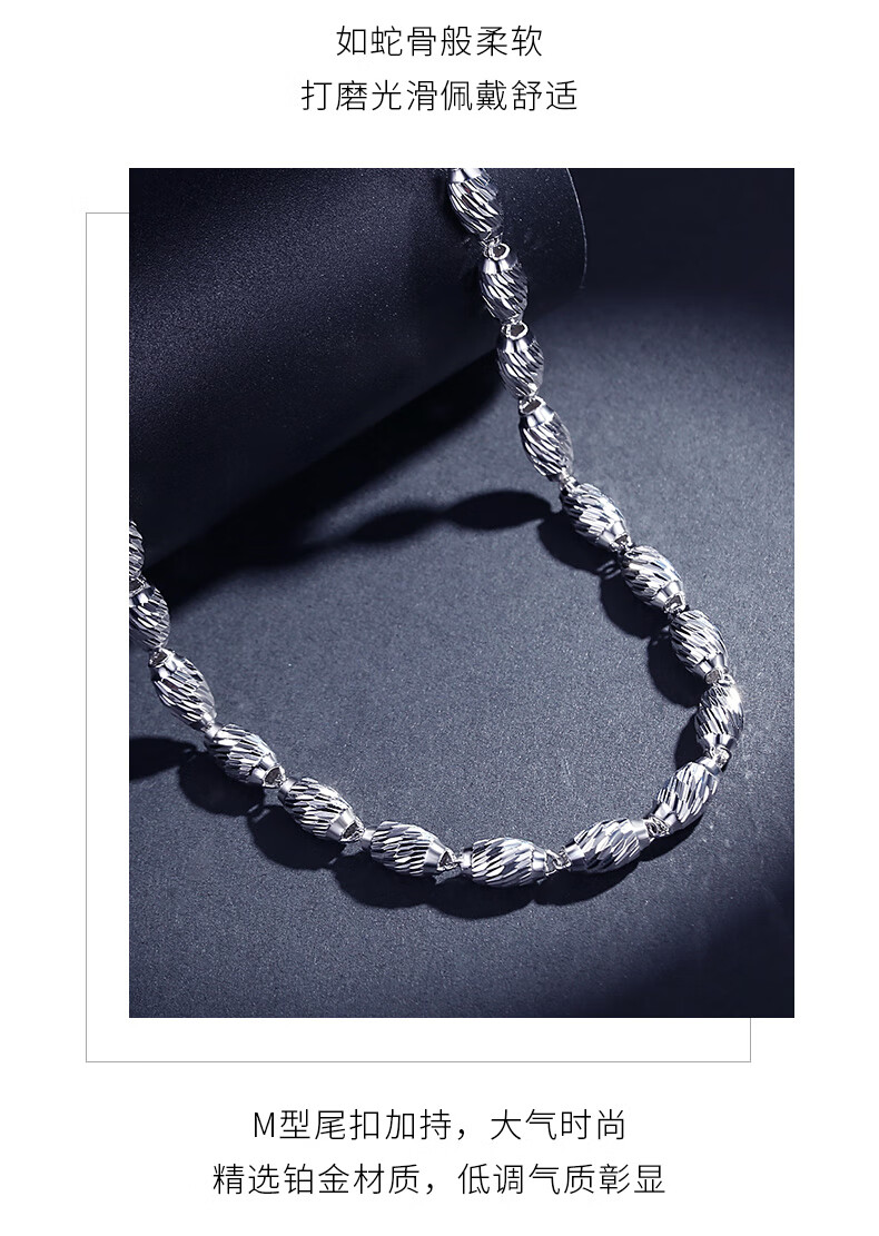 Miss JuJu platinum necklace men's pt950 real white gold olive bead chain fashionable and elegant chain weight 21.34g length 55cm thick about 4.0mm