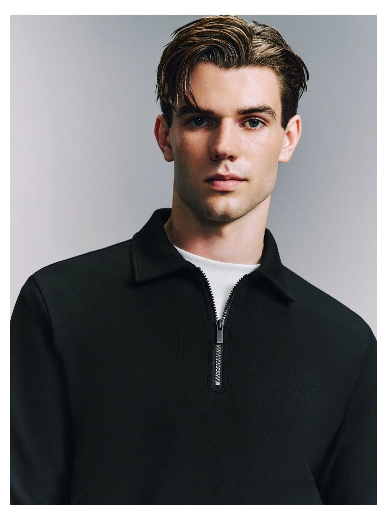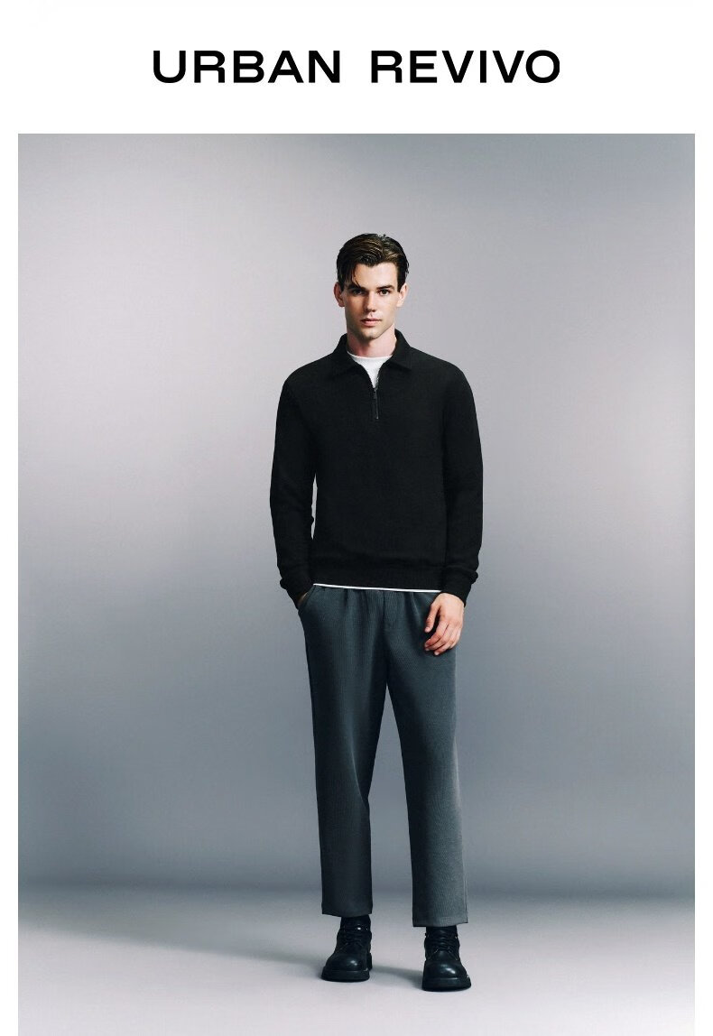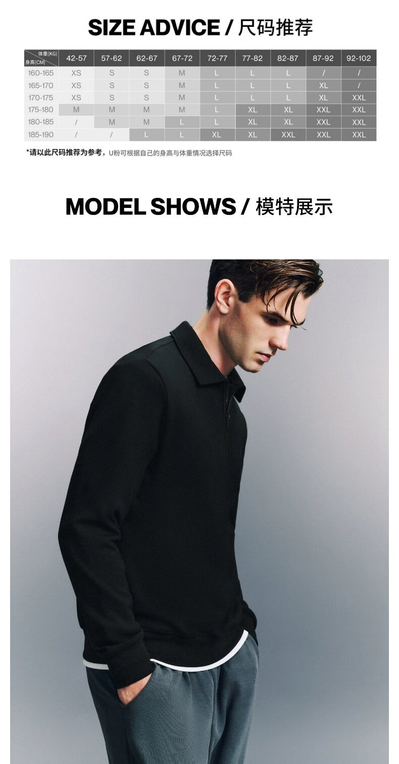 UR2025 Spring New Men's Fashion Casual Commuting Half-Zip Lapel Long-Sleeved T-Shirt UMU440096 Black S