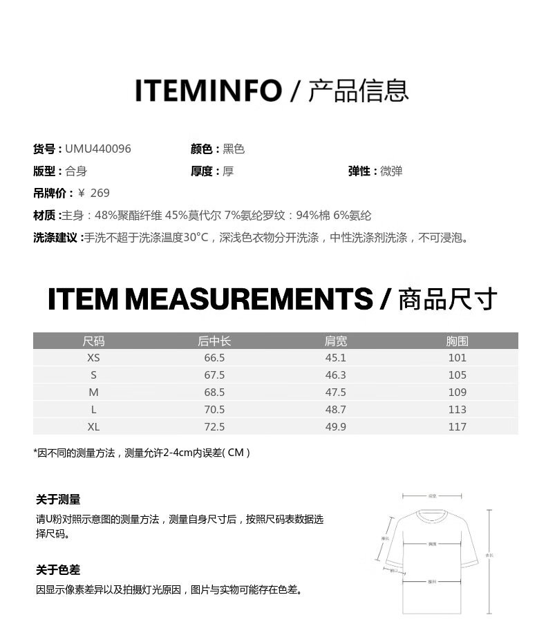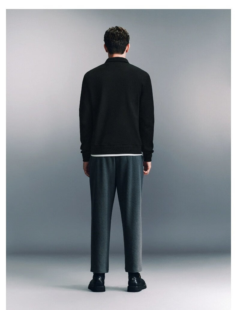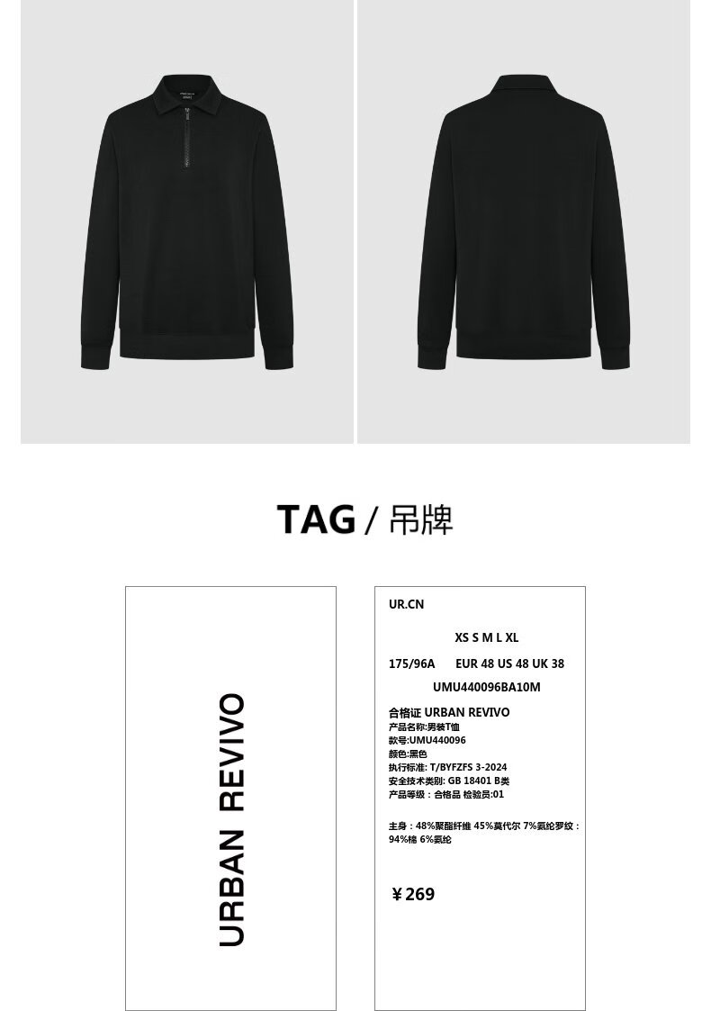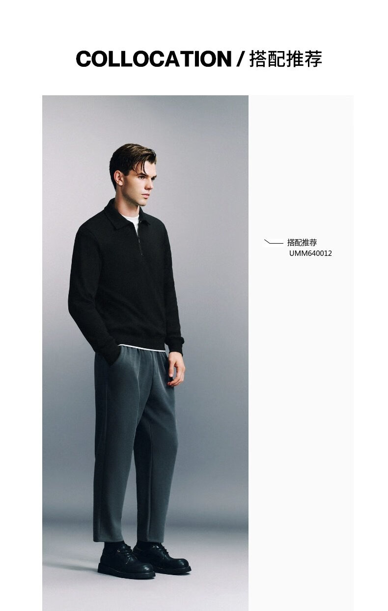 UR2025 Spring New Men's Fashion Casual Commuting Half-Zip Lapel Long-Sleeved T-Shirt UMU440096 Black S
