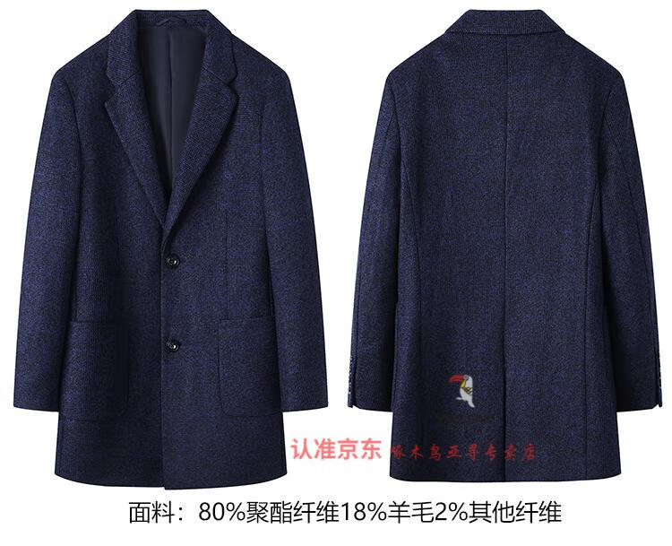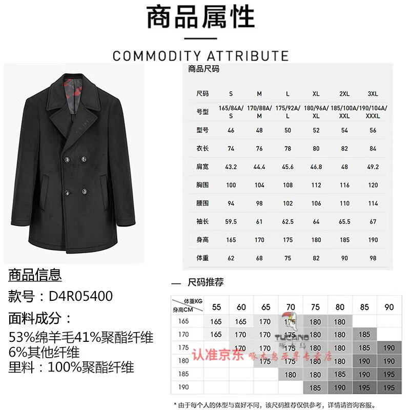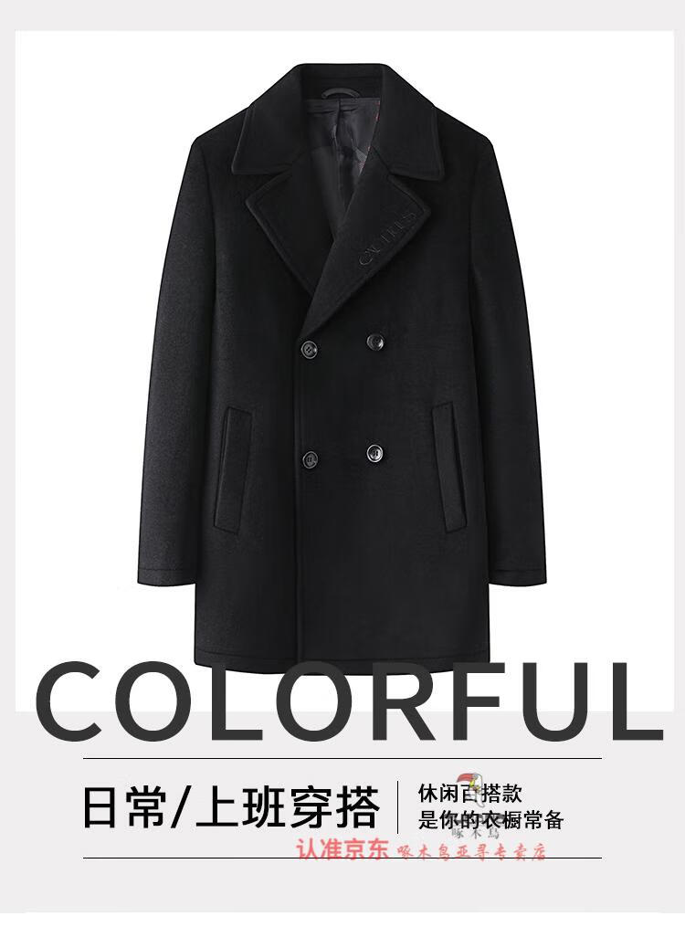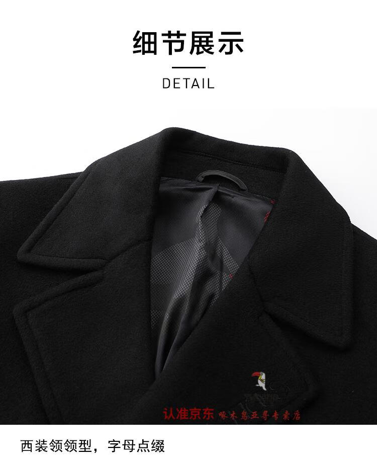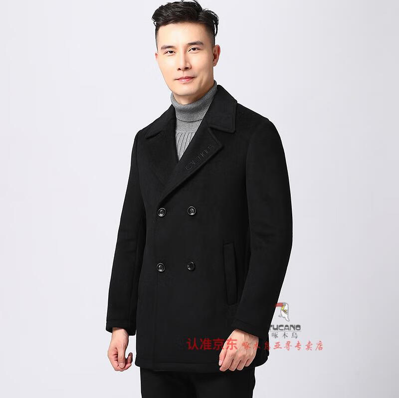 Woodpecker (TUCANO) double-sided woolen coat woolen men's shear label men's windbreaker winter men's double-breasted wool thick woolen coat D4R05400 black 165/84A -116Jin Jin equals 0.5 kg