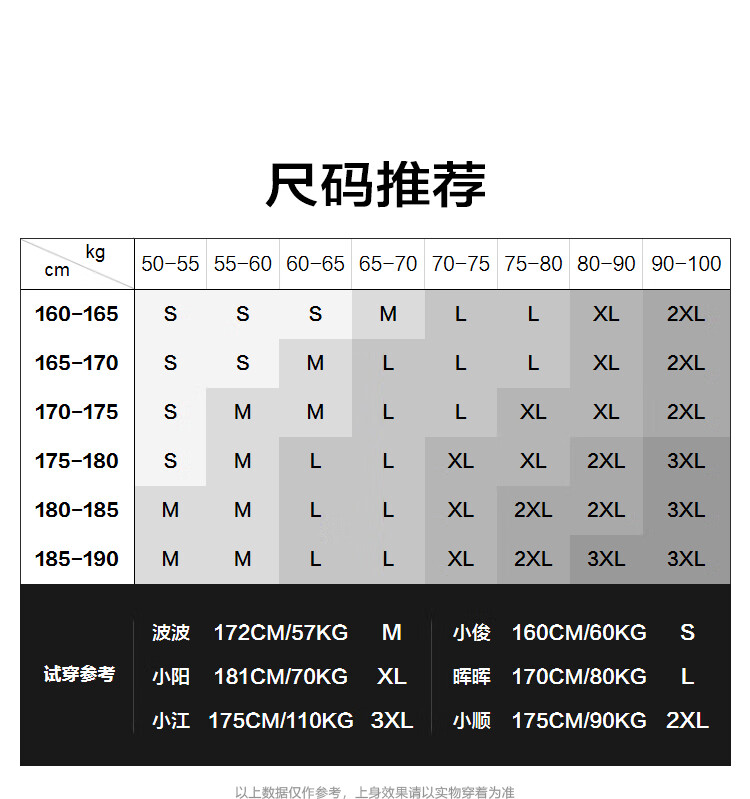 China (cm) 165 / 88-90 170 / 96-98 175 / 108-110 180 / 118-122 185 / 126-130