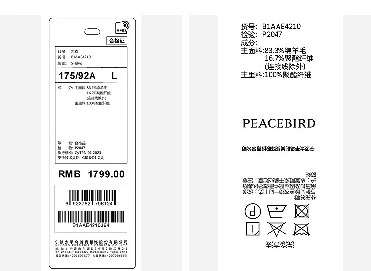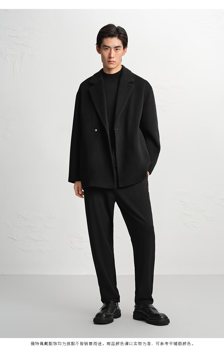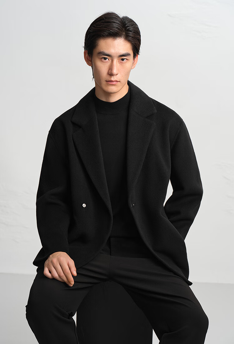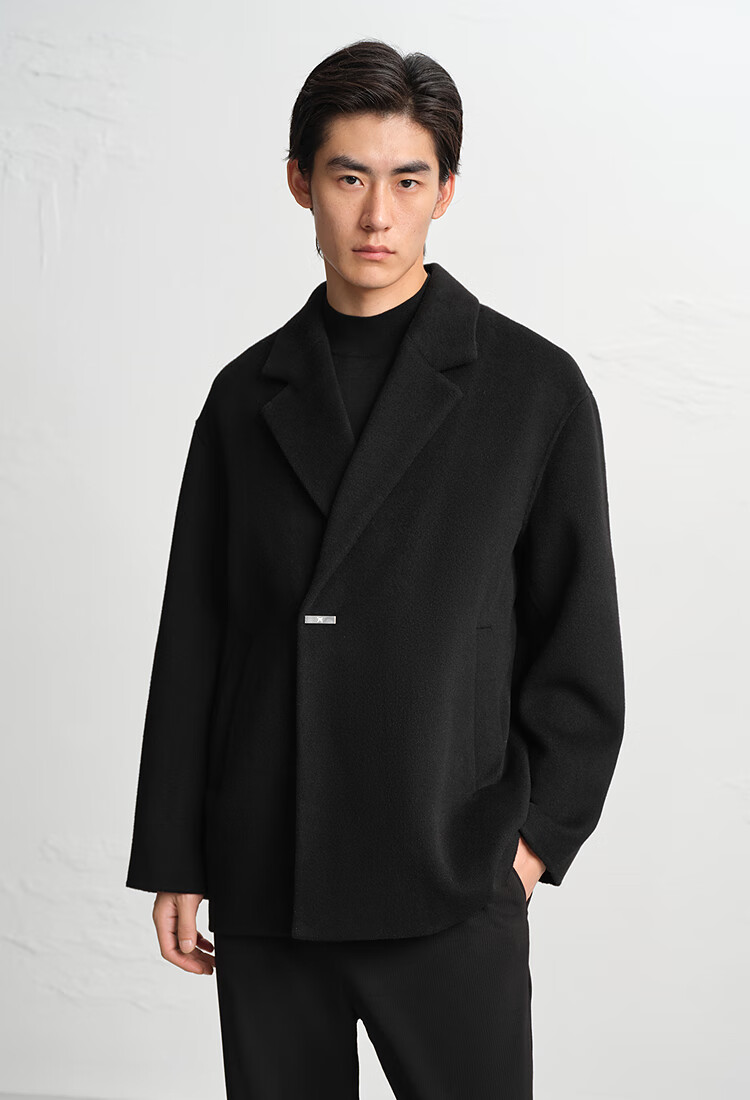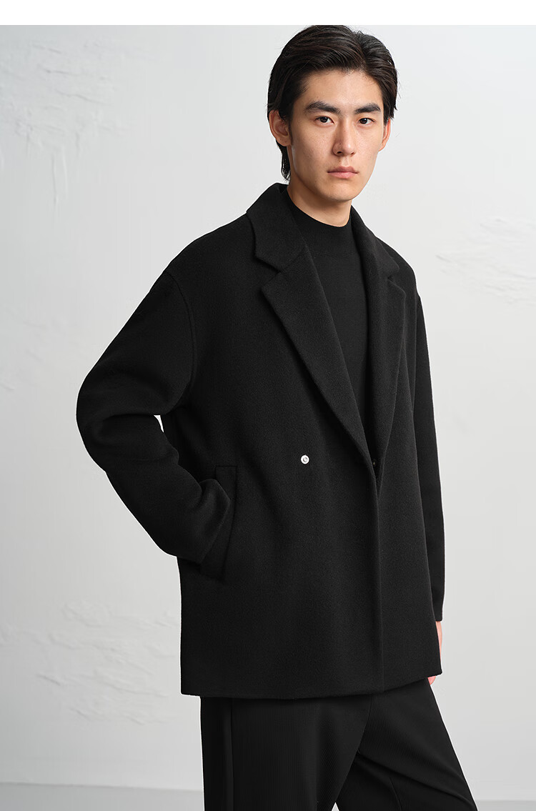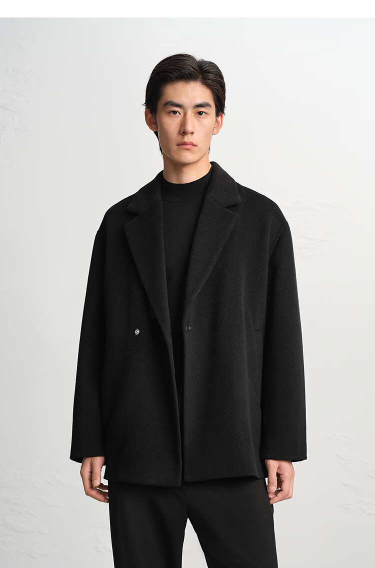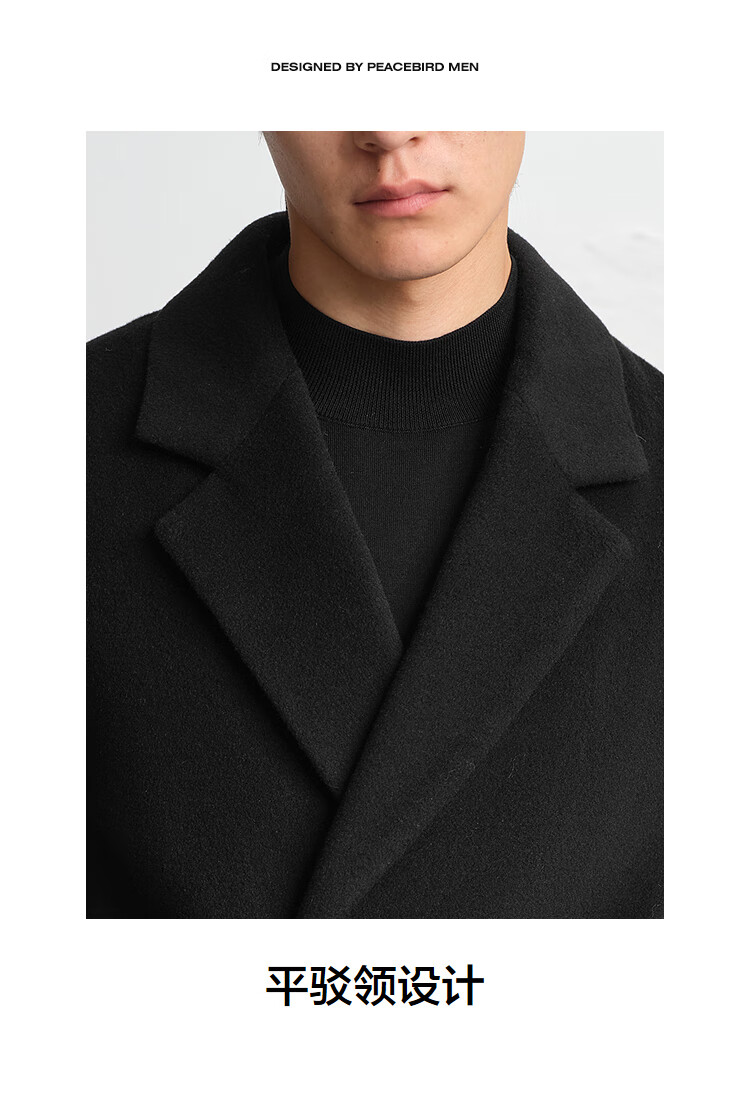 PEACEBIRD Men's Coat Winter Double-sided Wool Coat B1AAE4210 Black 1 XL