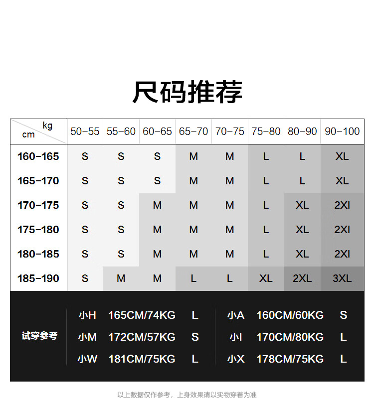 China (cm) 165 / 88-90 170 / 96-98 175 / 108-110 180 / 118-122 185 / 126-130