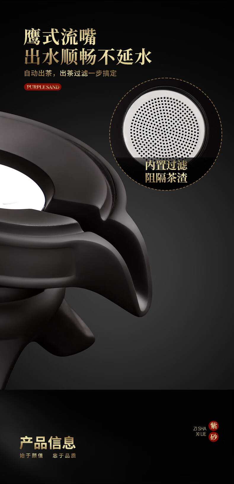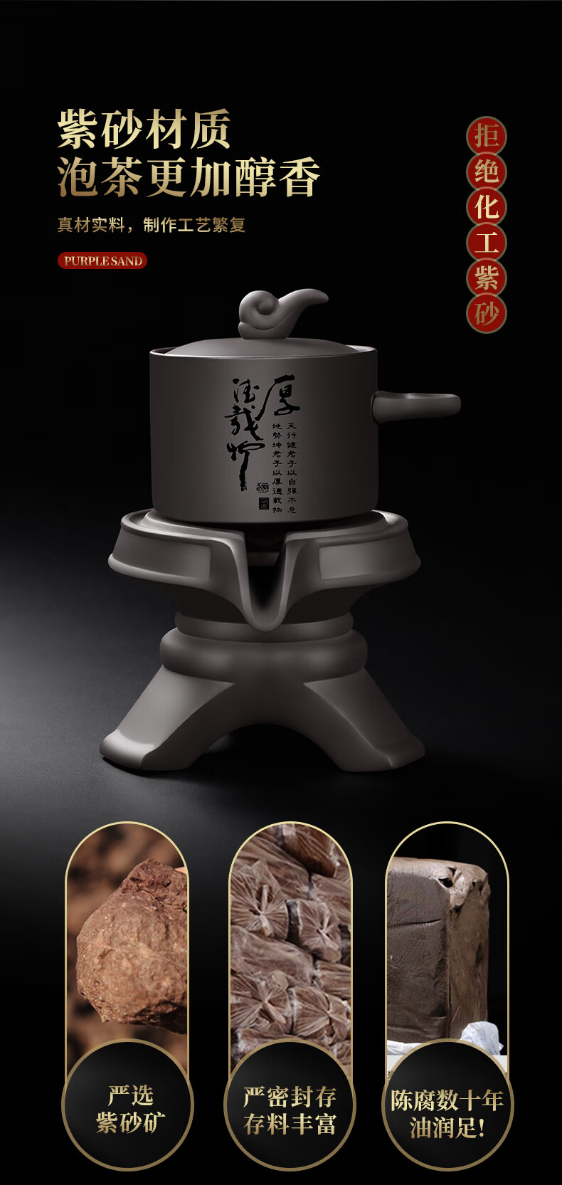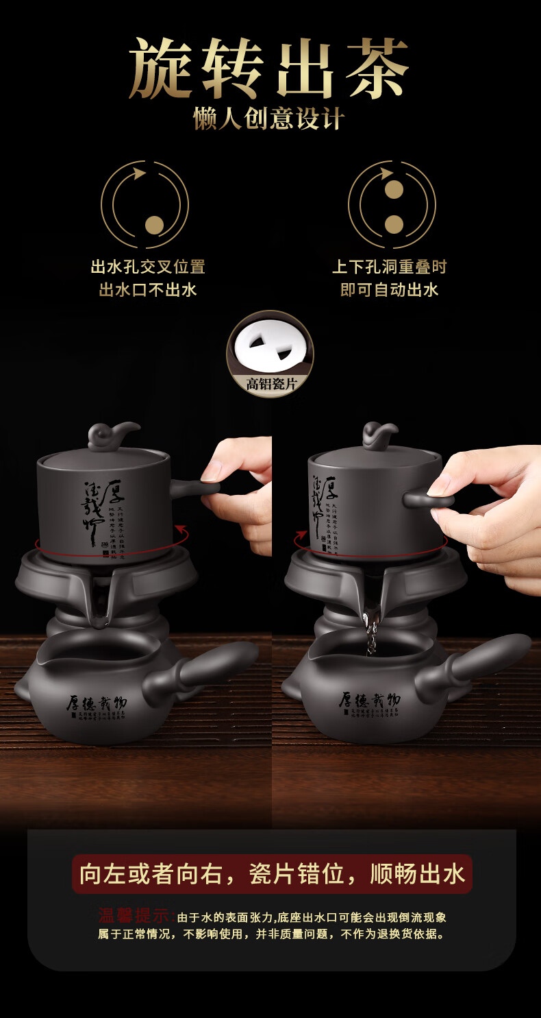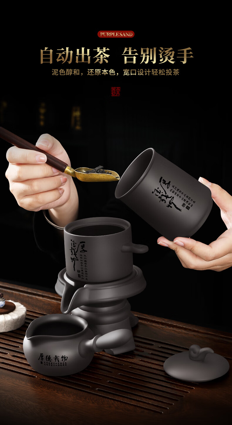 Tao Fuqi Purple Clay Automatic Tea Set Home High-end Gift Lazy Stone Mill Tea Maker Teacup Teapot Complete Set Engraved Customized Black-Houde Loading Purple Clay Automatic Tea Maker + Male Cup