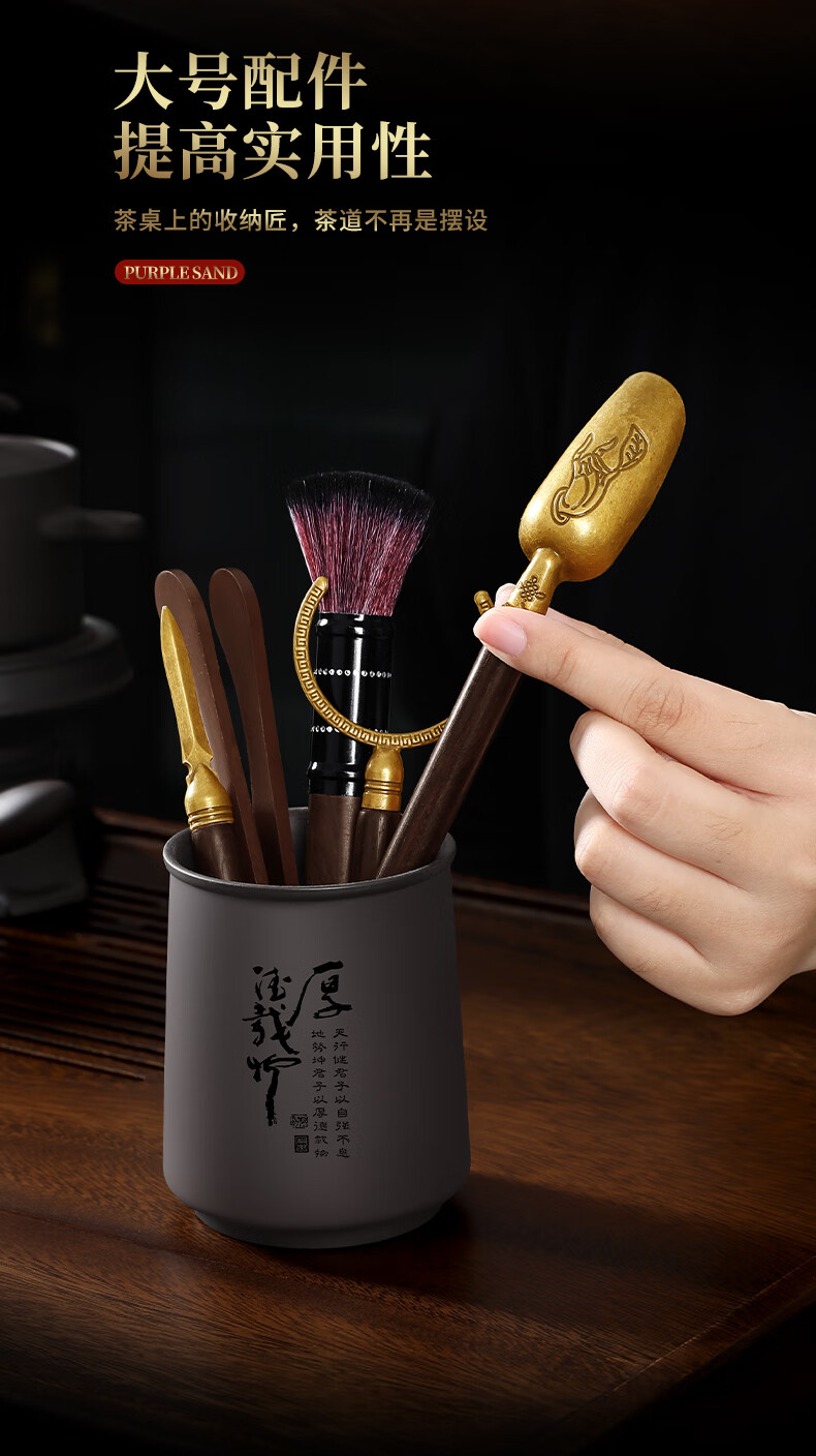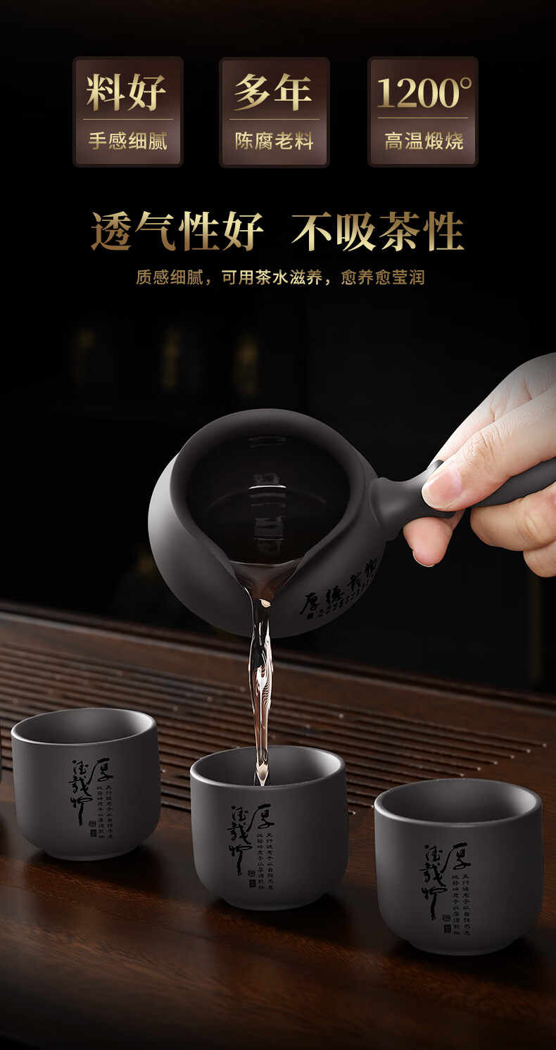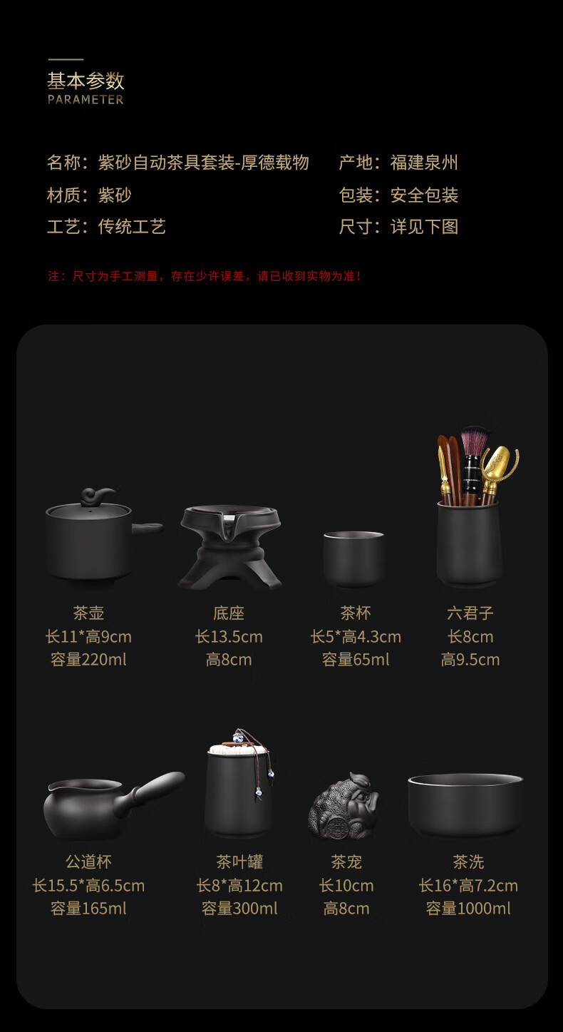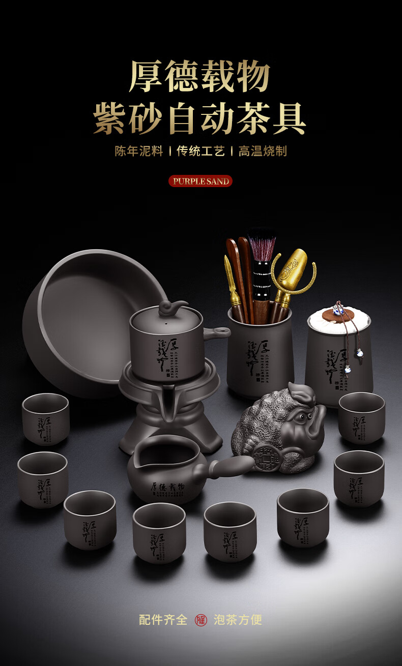 Tao Fuqi Purple Clay Automatic Tea Set Home High-end Gift Lazy Stone Mill Tea Maker Teacup Teapot Complete Set Engraved Customized Black-Houde Loading Purple Clay Automatic Tea Maker + Male Cup