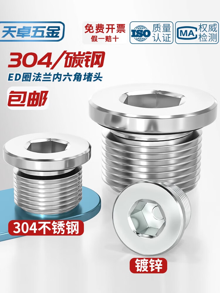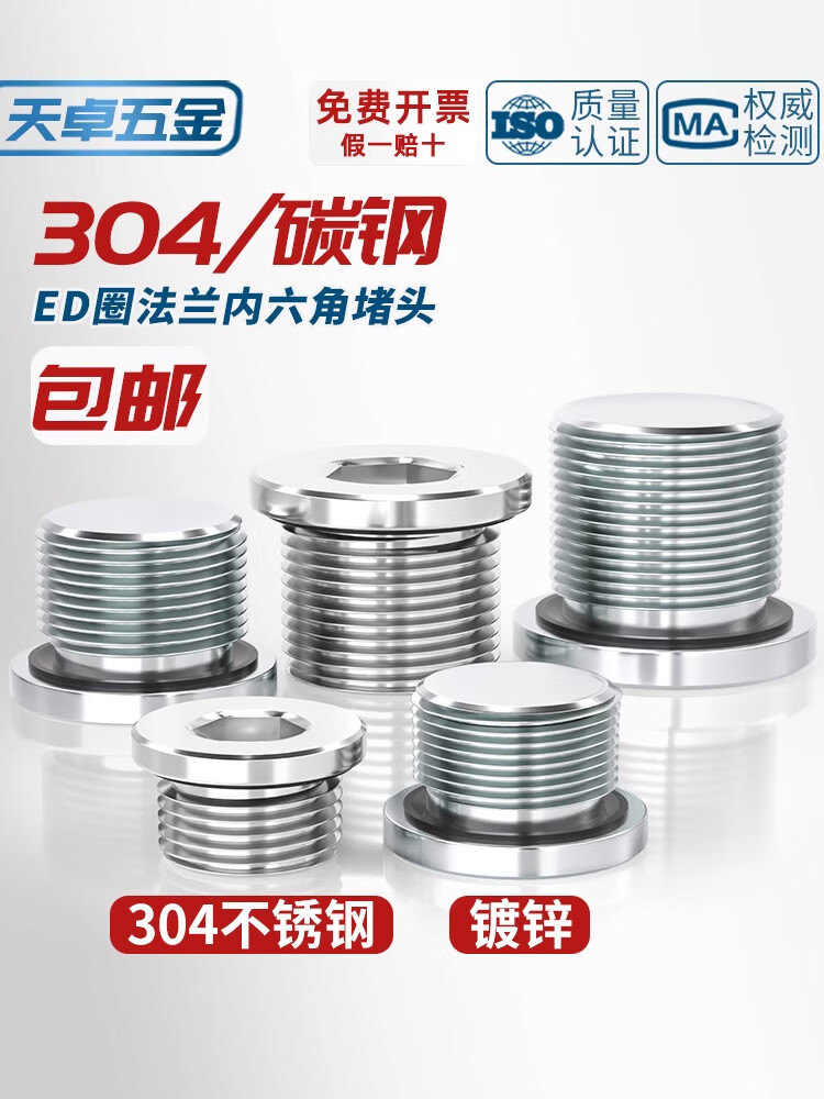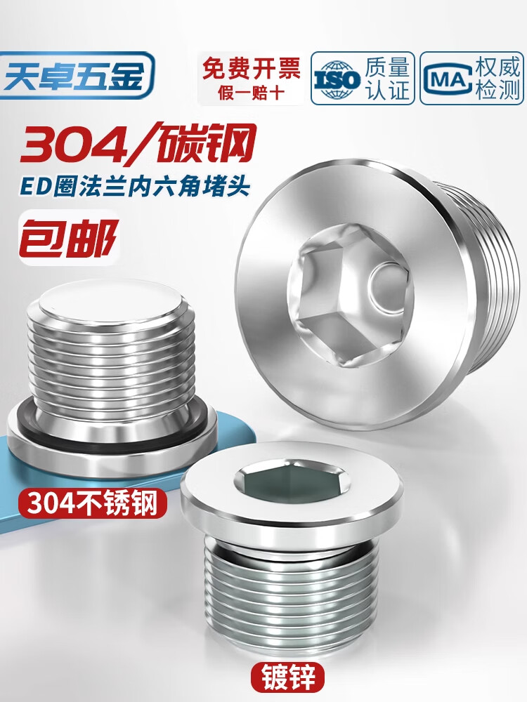 Tianzhuo Hardware SAE series galvanized/304/316 stainless steel American hexagonal flange plug with 0 ring seal 40N5/16 304 black ring 4ON-10 7/8*14 1 piece
