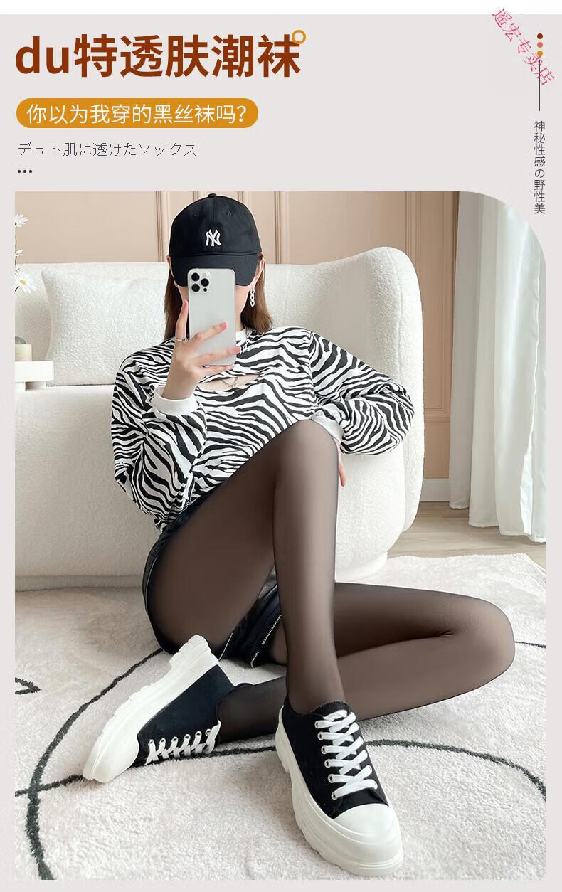 LangSha Black Translucent Pantyhose Leggings Women's 2025 Winter Light Leg Artifact Plus Velvet Thickening Warmth Large Size Water Glow Stockings Black Translucent Pantyhose with Feet 1 Pair 230g