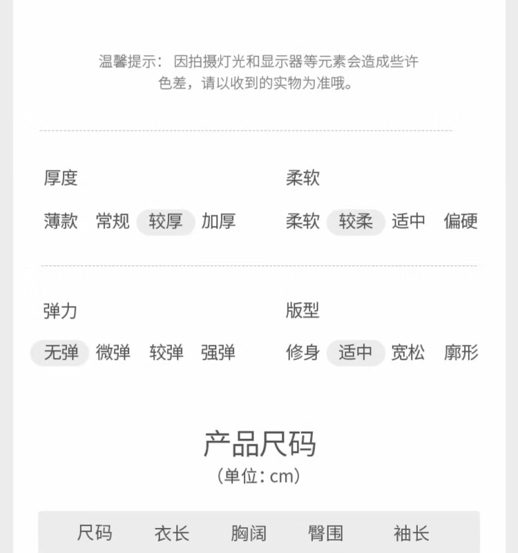 Size (cm) 42 44 46 48 50