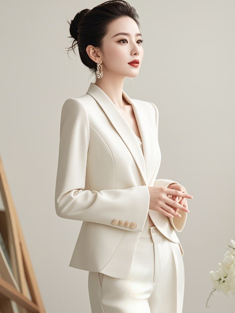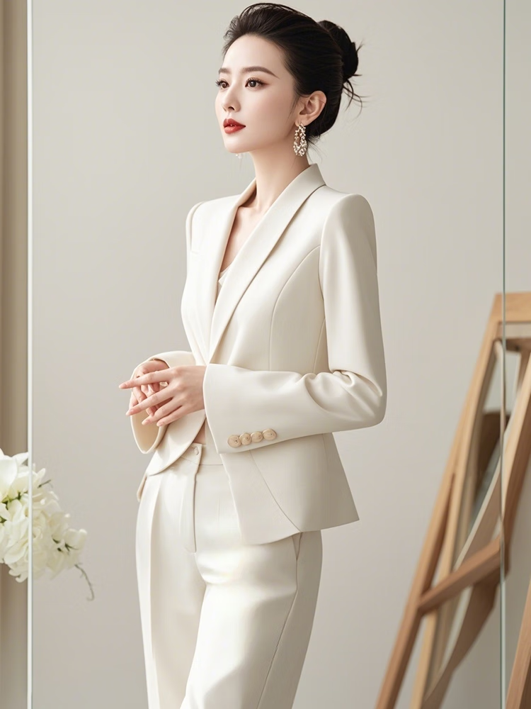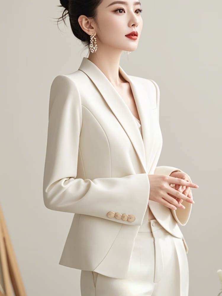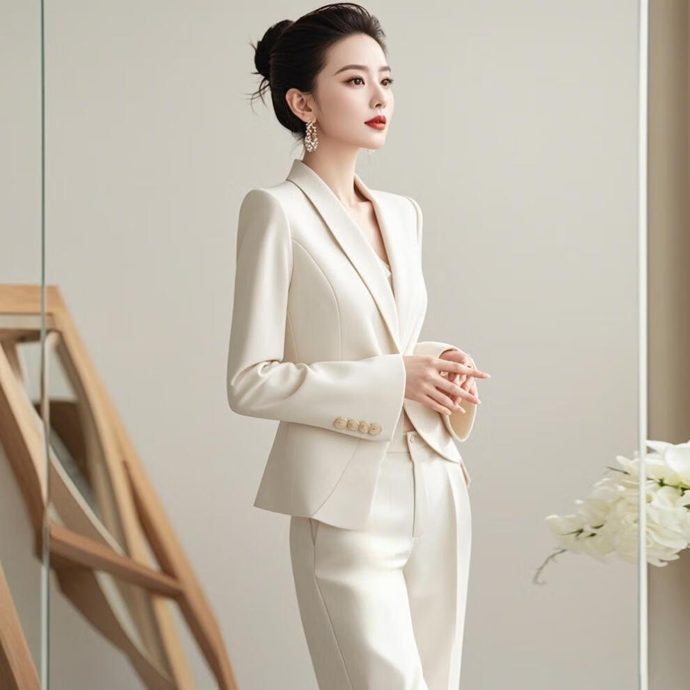 Autumn moonlight Yiren's autumn clothes are matched with a complete set of capable and elegant women's clothing with a small fragrant and goddess-like white suit suit. Off-white M