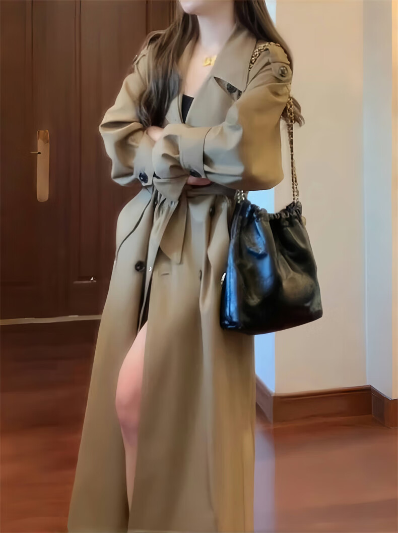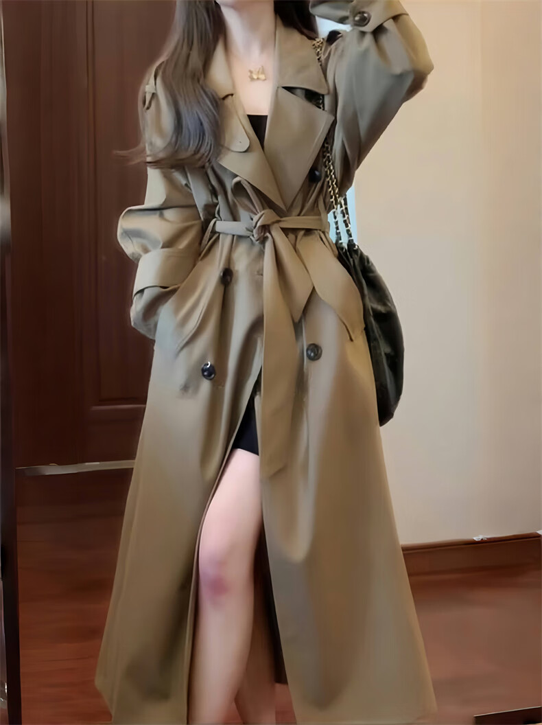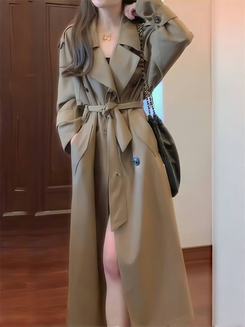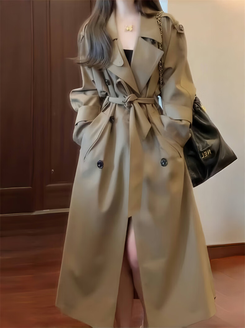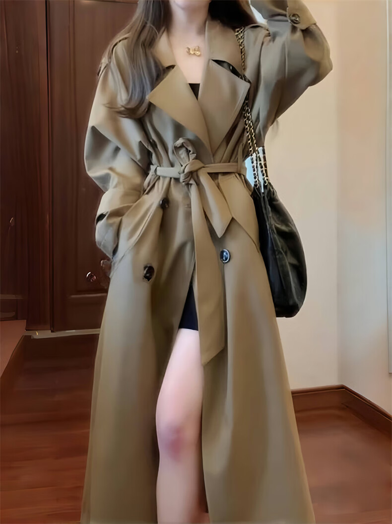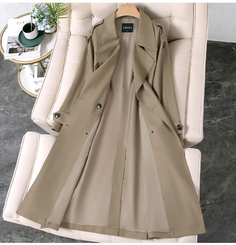 GARNUO Khaki trench coat women's mid-length 2025 early spring and autumn new Korean style small high-end casual coat Khaki M 111-130Jin Jin is equal to 0.5 kg