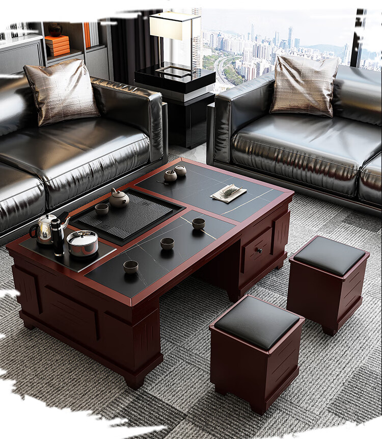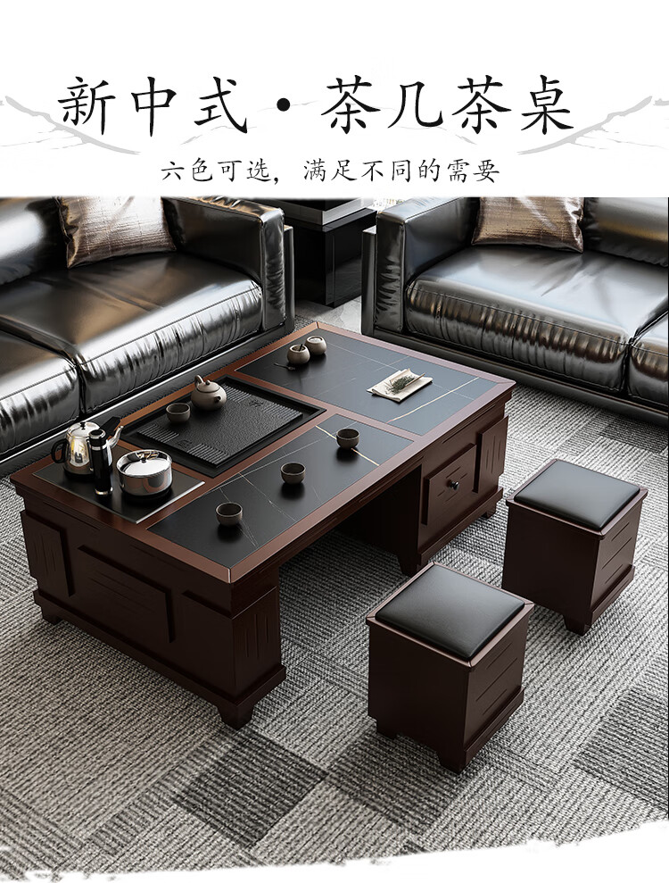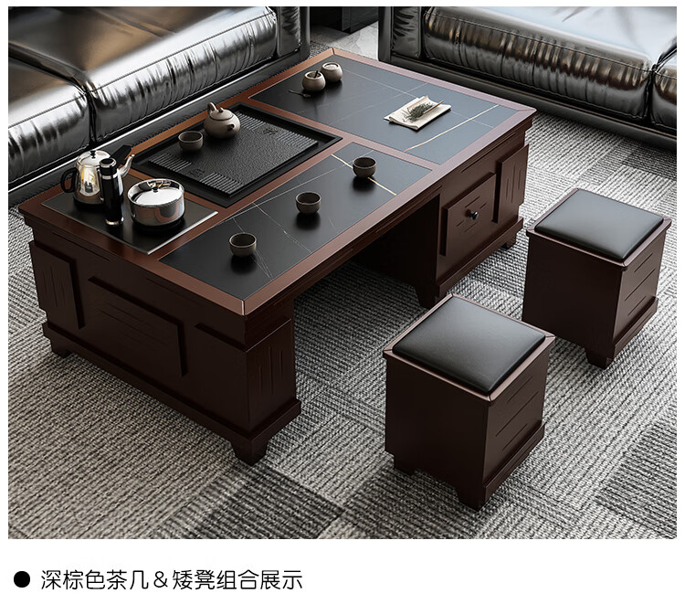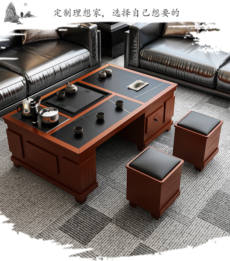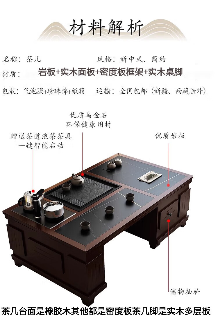 Slate Kung Fu coffee table with water boiling function, tea table, chair and tea set all-in-one set, modern home office tea table, walnut color 120*65*56cm
