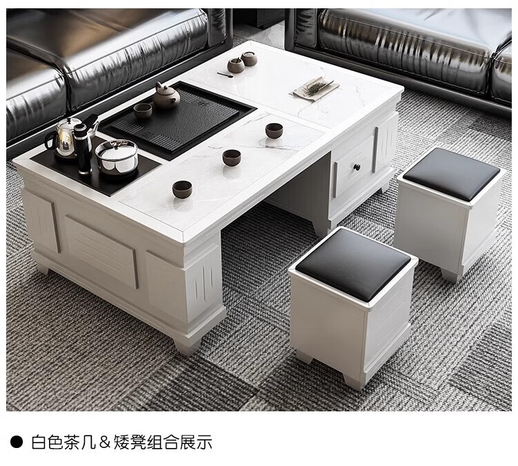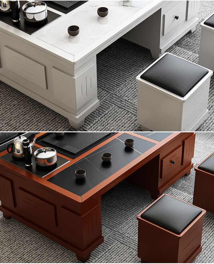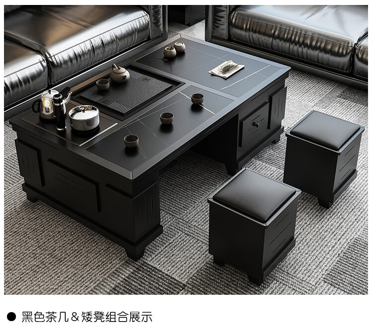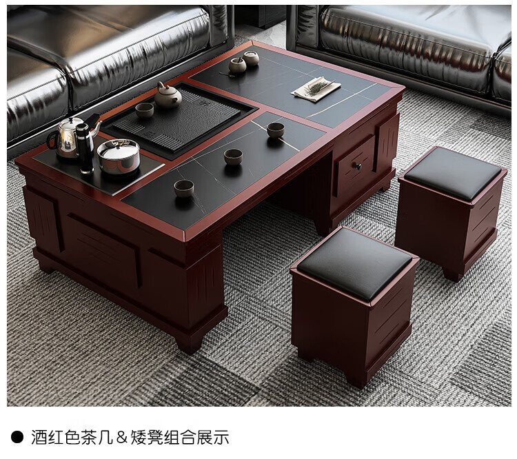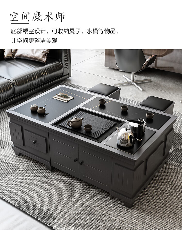 Slate Kung Fu coffee table with water boiling function, tea table, chair and tea set all-in-one set, modern home office tea table, walnut color 120*65*56cm