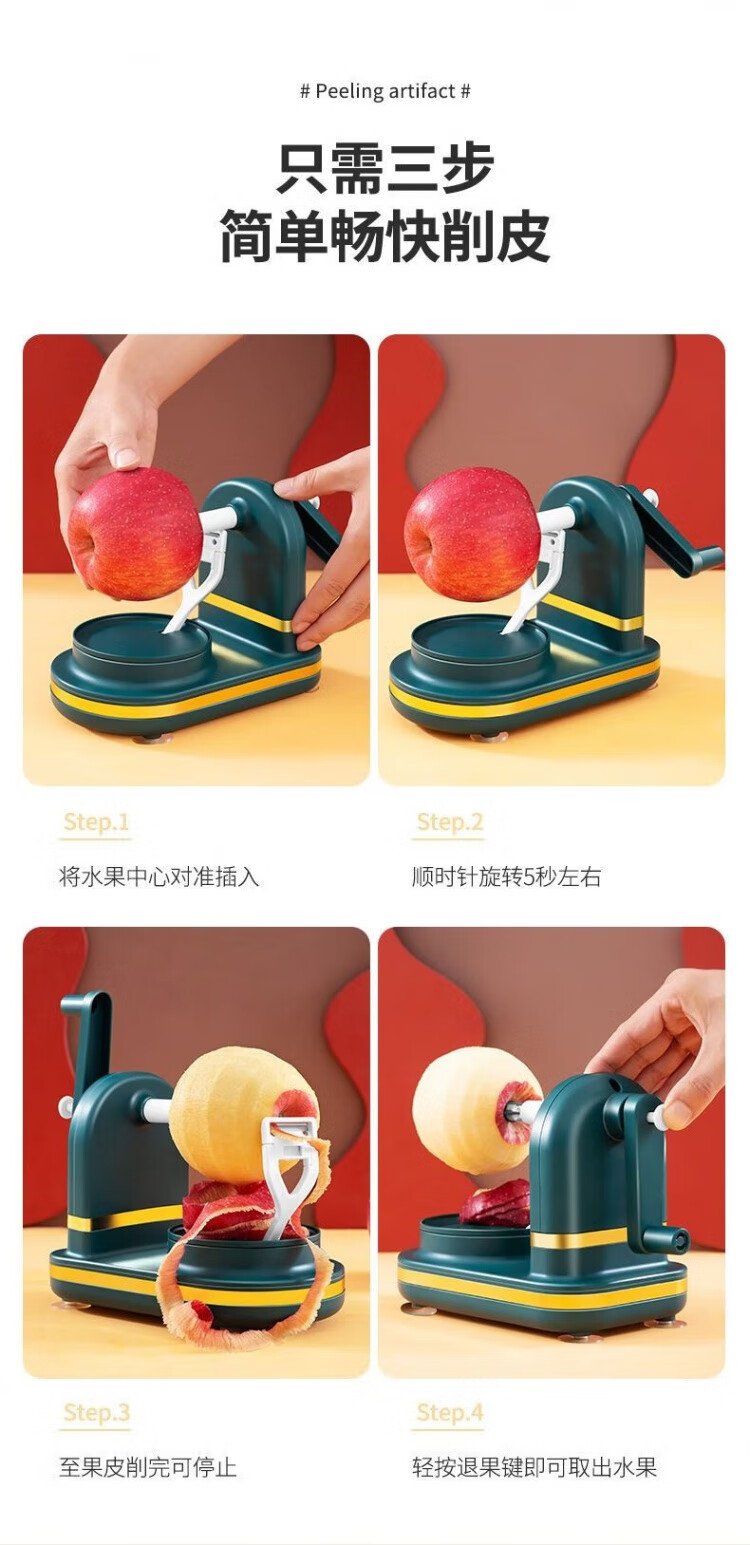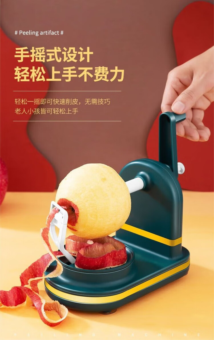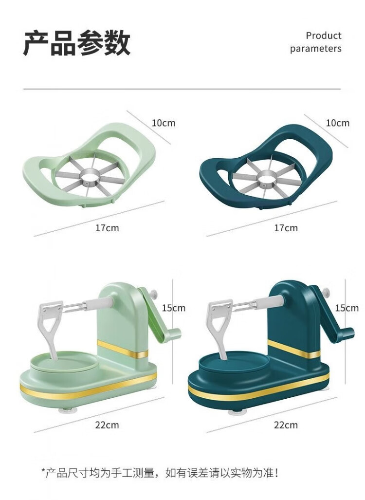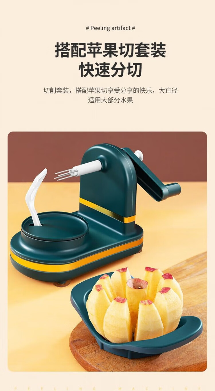 Mi Ling Apple Cutting Artifact, Fruit Peeling, Household Coring and Slicing Machine, Cutting, Slicing and Peeling, Automatic Divider, Hand-cranked Peeling Machine + Fruit Cutter (Elegant Green)