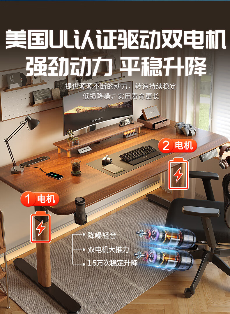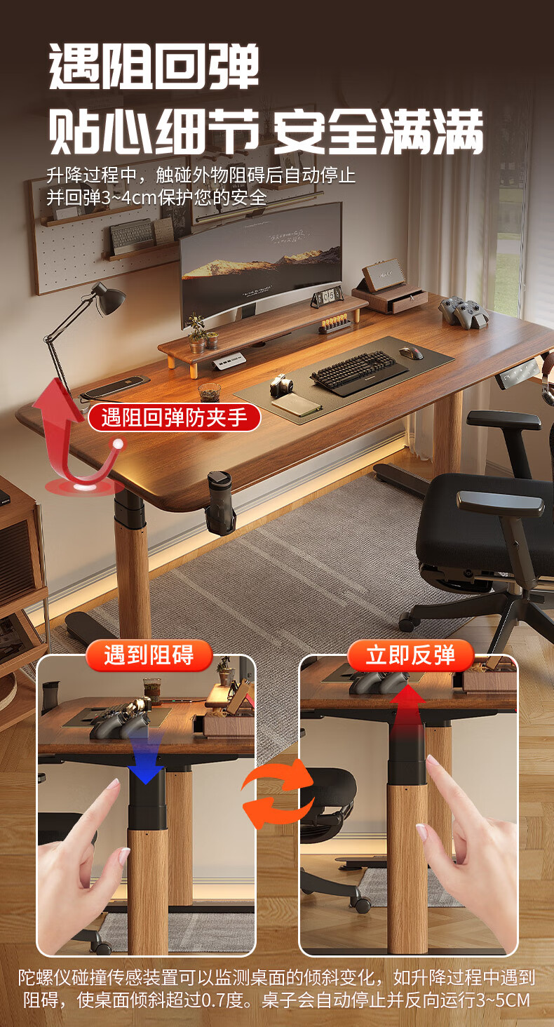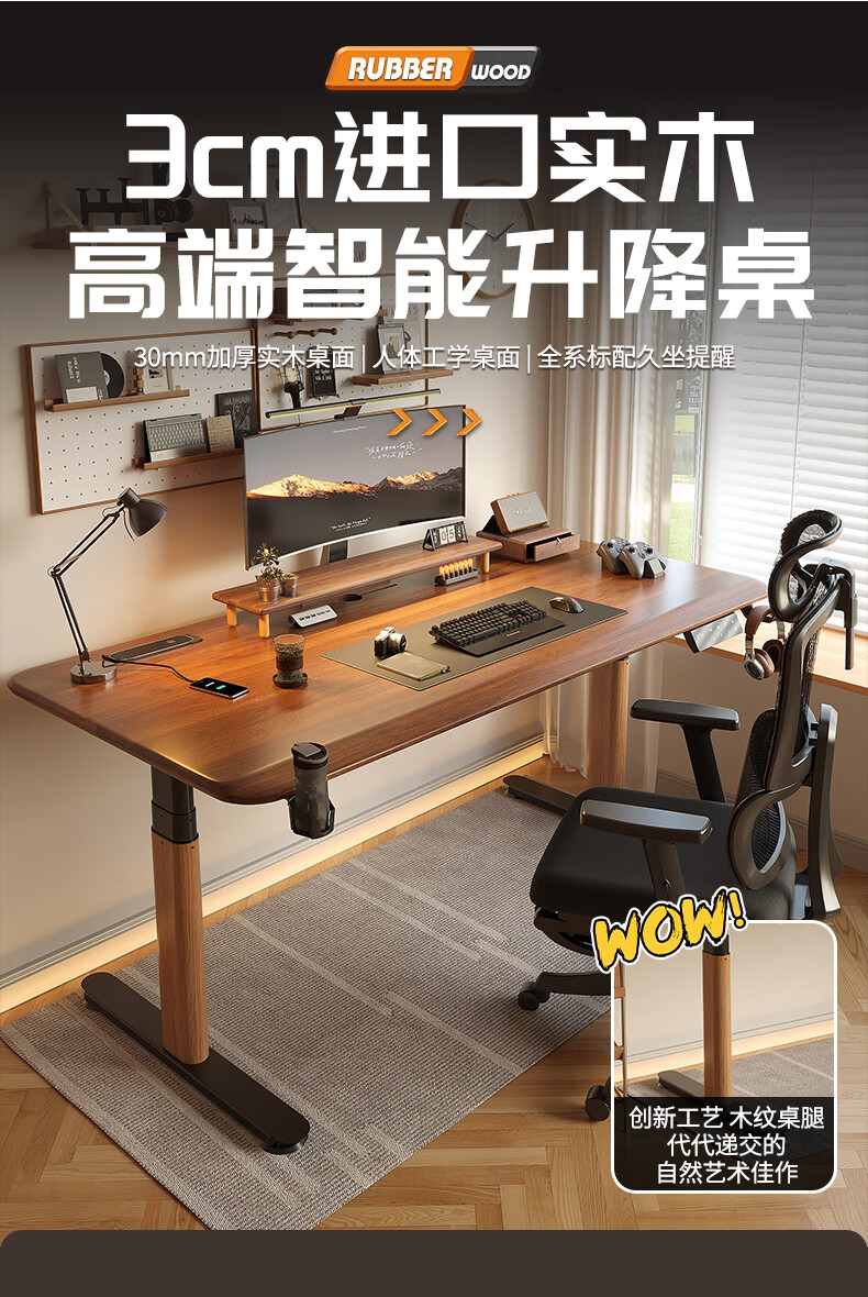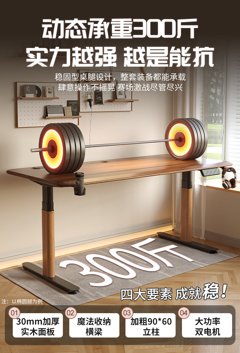 Mu Yisheng 3cm high-end solid wood electric lift table computer desk desktop gaming table office desk liftable workbench hidden plug strip - dual motor 3cm solid wood walnut color 120*70 free delivery