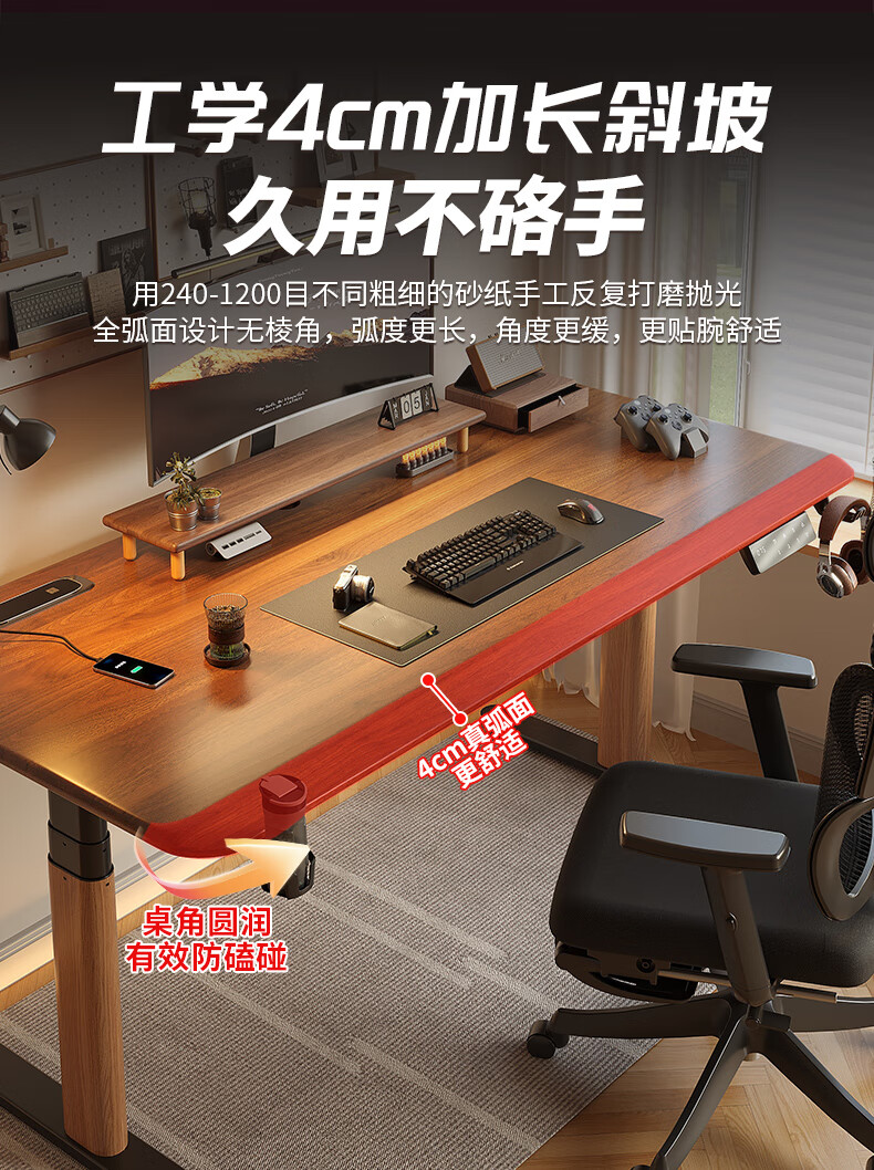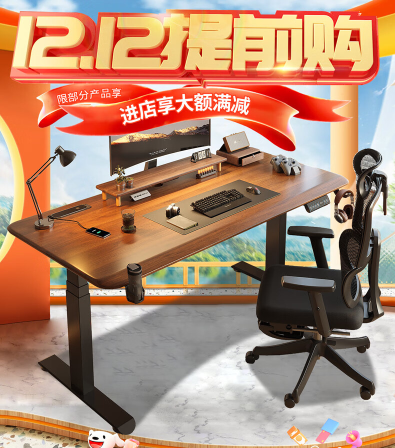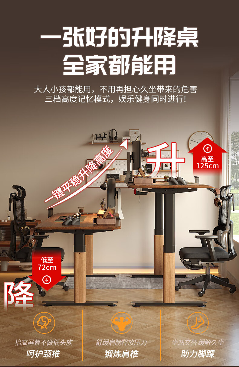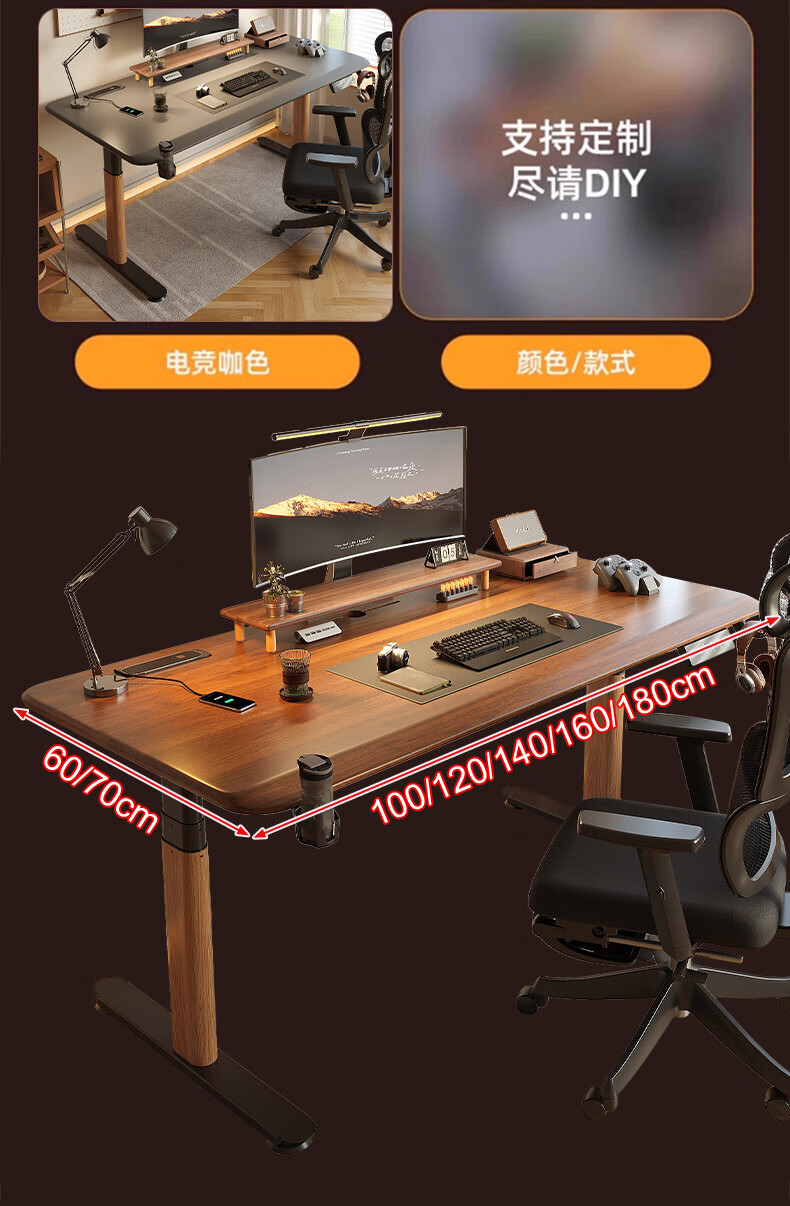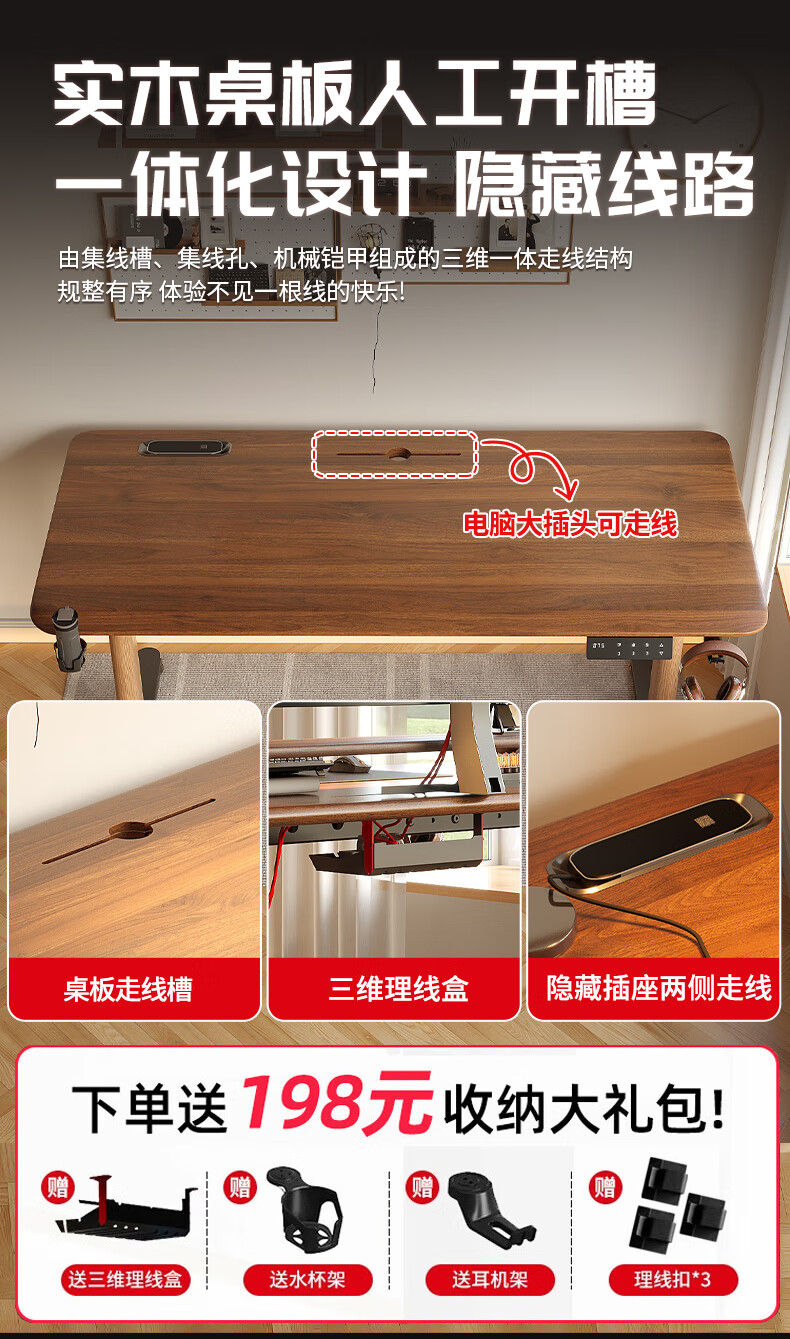 Mu Yisheng 3cm high-end solid wood electric lift table computer desk desktop gaming table office desk liftable workbench hidden plug strip - dual motor 3cm solid wood walnut color 120*70 free delivery