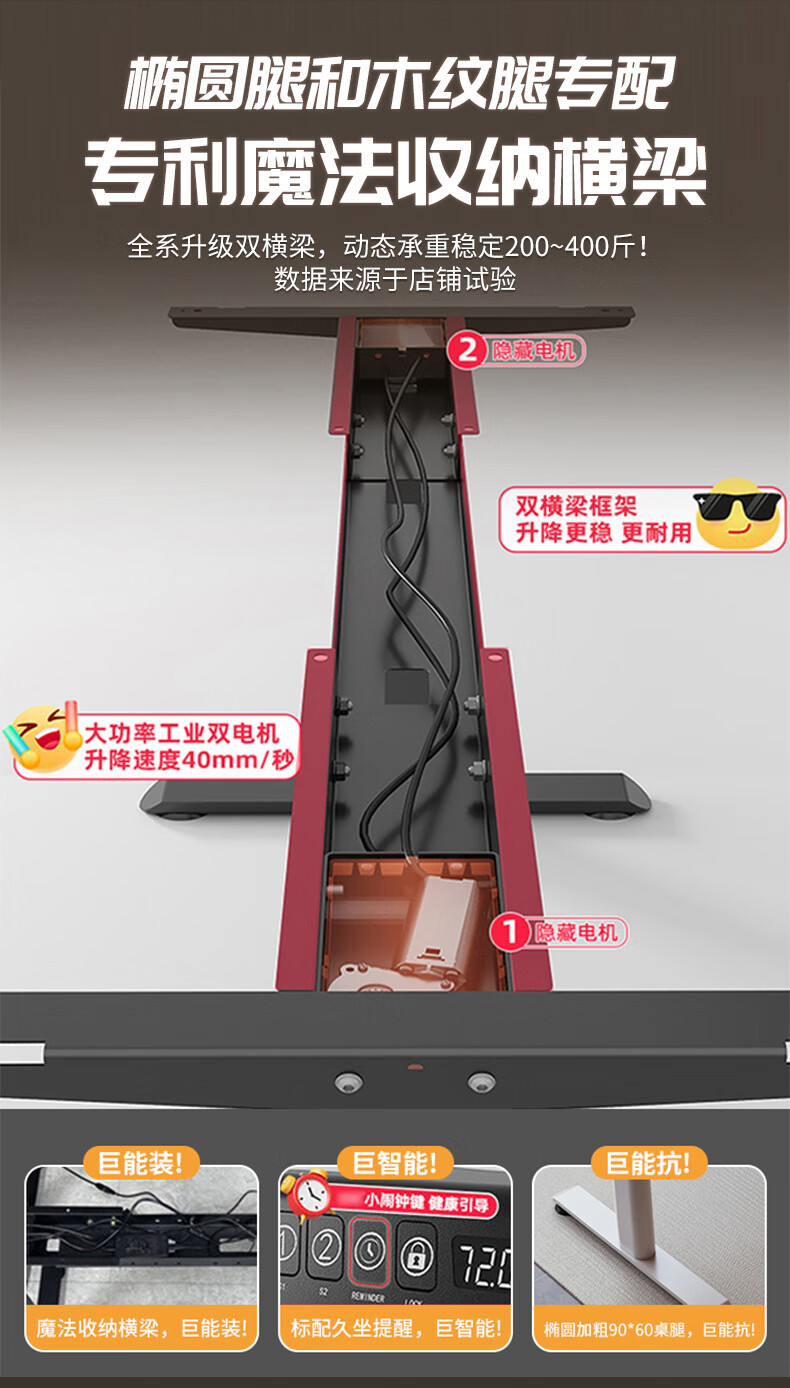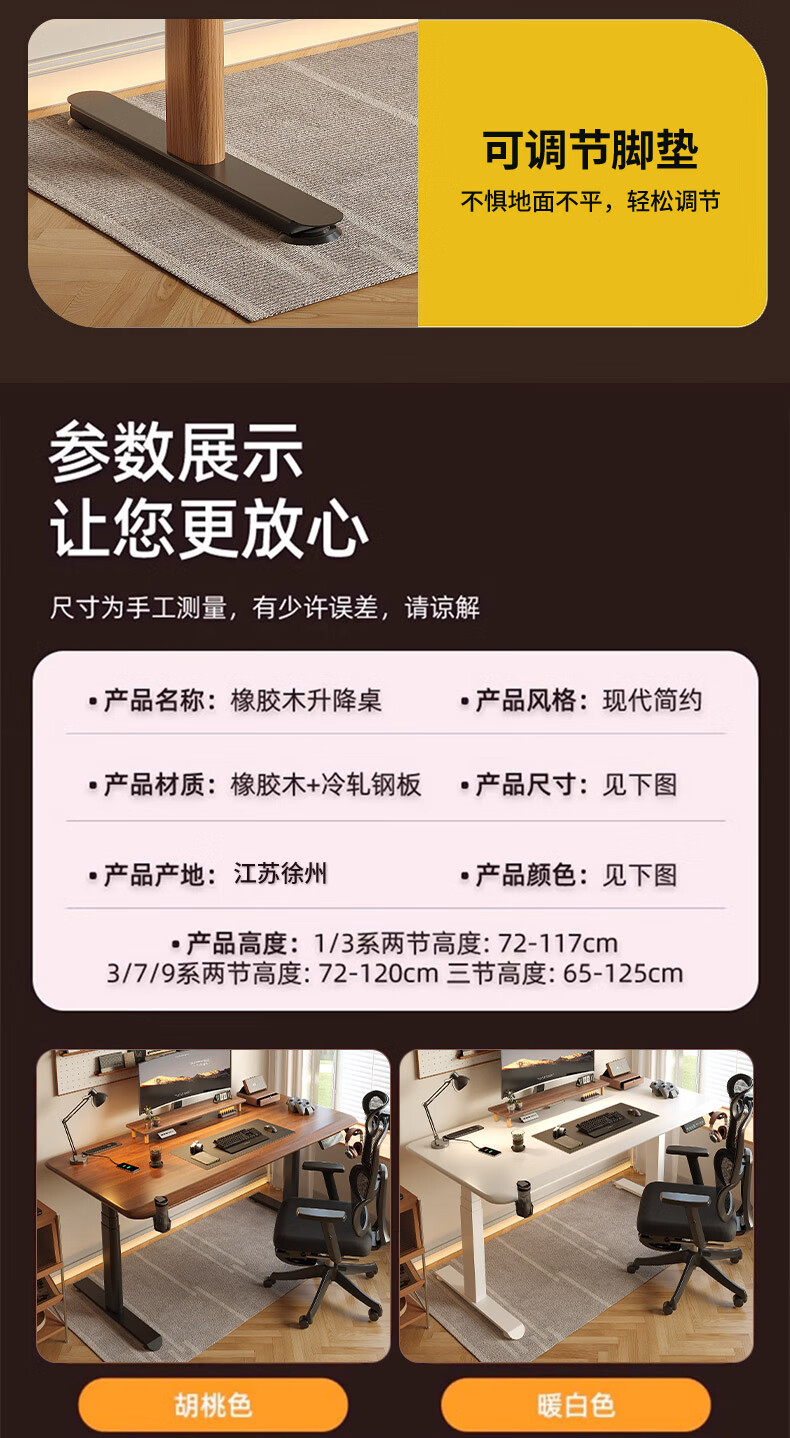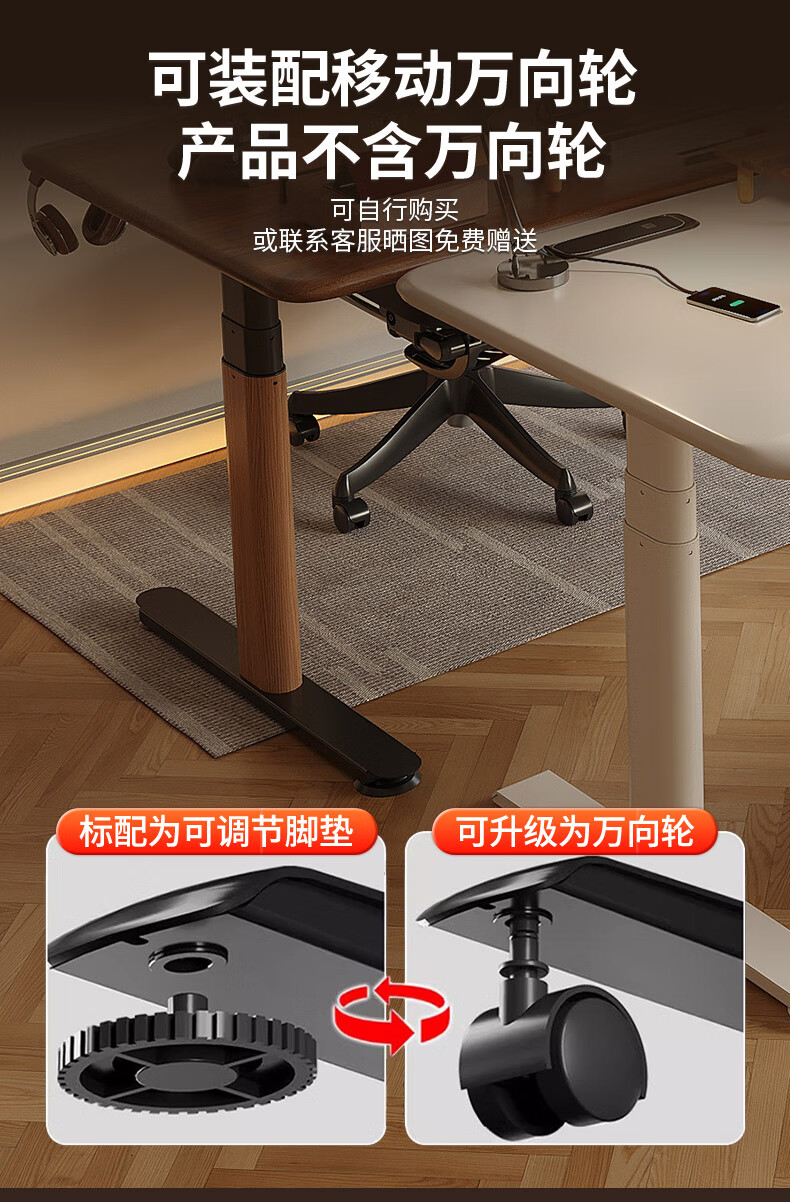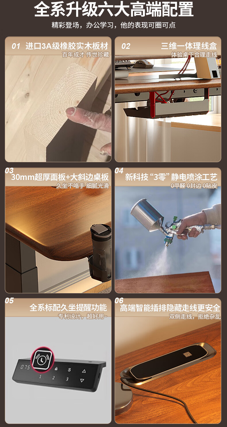 Mu Yisheng 3cm high-end solid wood electric lift table computer desk desktop gaming table office desk liftable workbench hidden plug strip - dual motor 3cm solid wood walnut color 120*70 free delivery