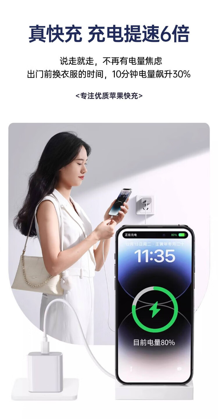 Apple suitable for Apple charger fast charging cable set iPhone14Pro 15 13 12 11 charging head xr Apple 5~14 PD interface fast charging head + 1.5 meter fast charging cable