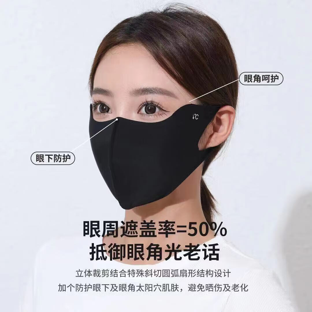 Three-dimensional sun protection mask for women with good looks, versatile sun protection, face display, thin, breathable, summer ice silk sun protection sun protection mask - black, one pack, 1 piece