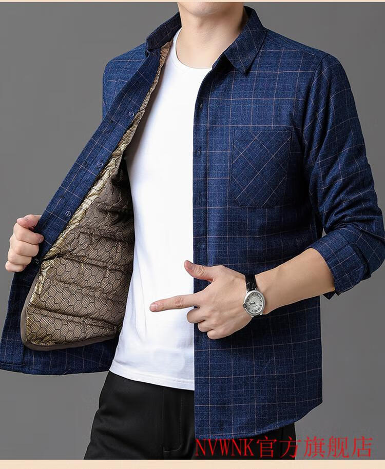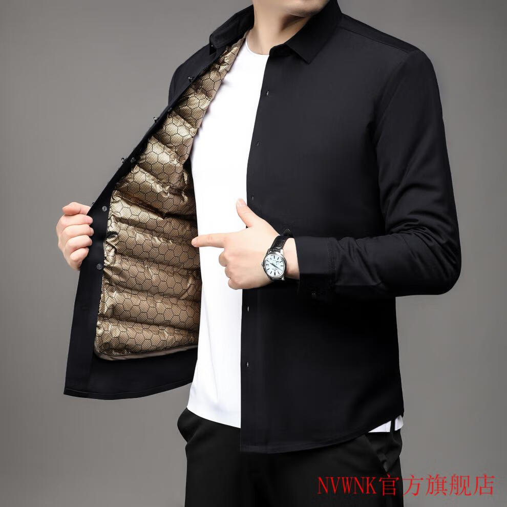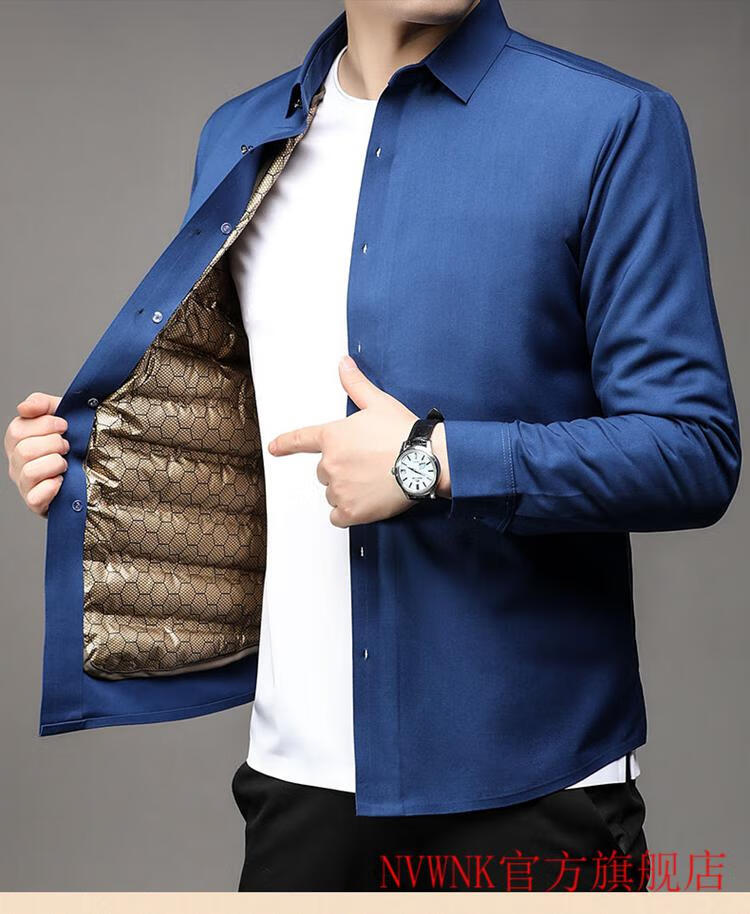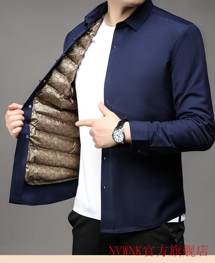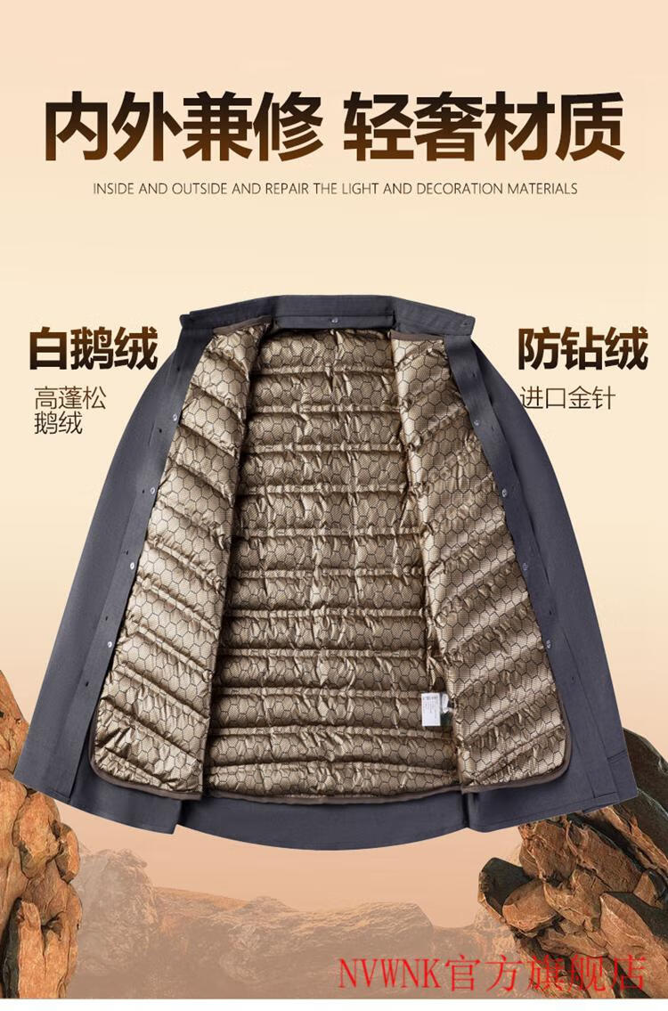 NVWNK high-end brand goose down shirt men's plus velvet thickened warm removable down liner middle-aged and elderly dad winter clothing Navy goose down 1789 165/M/3990-110Jin Jin equals 0.5 kg