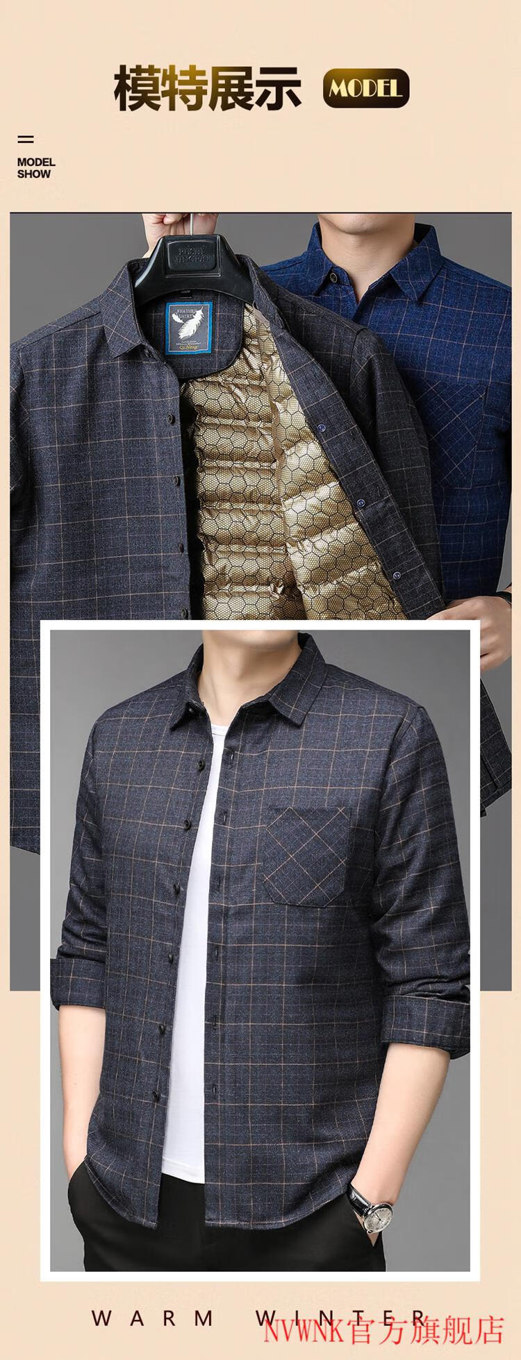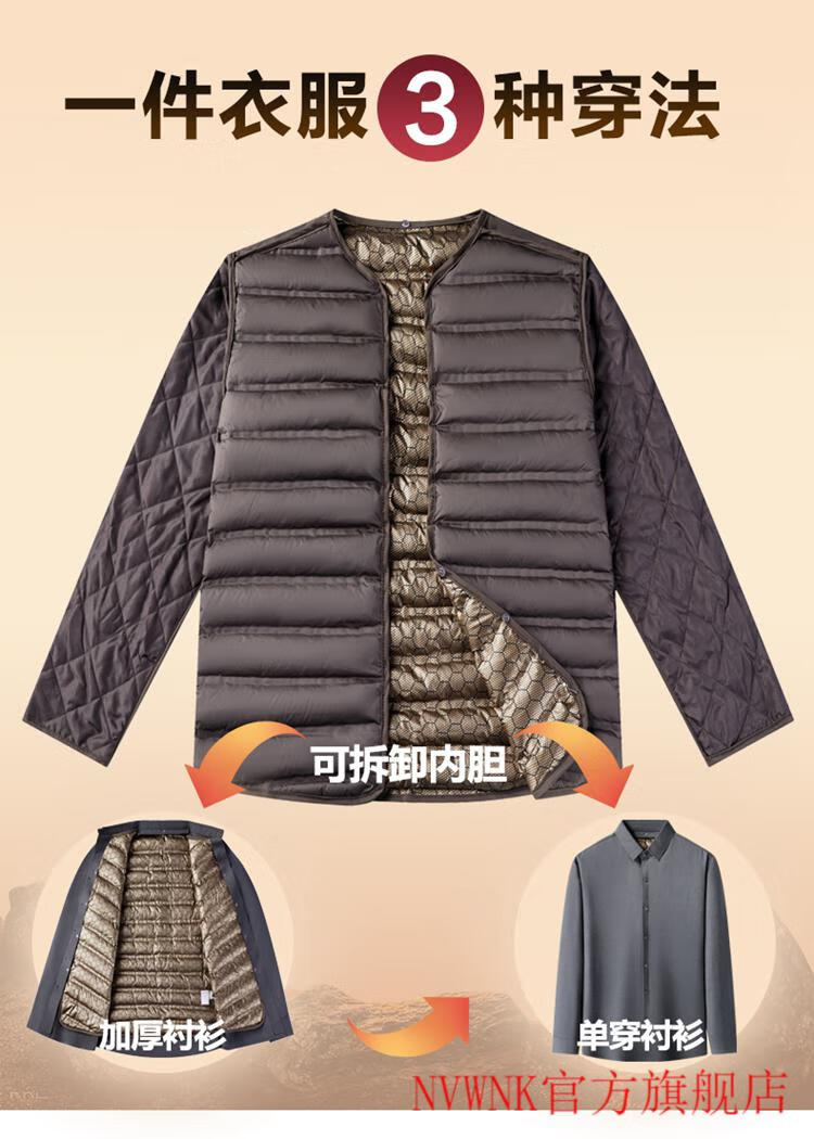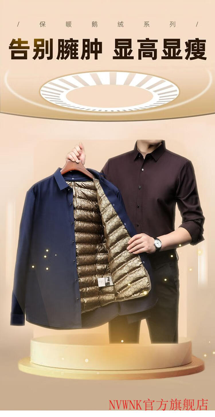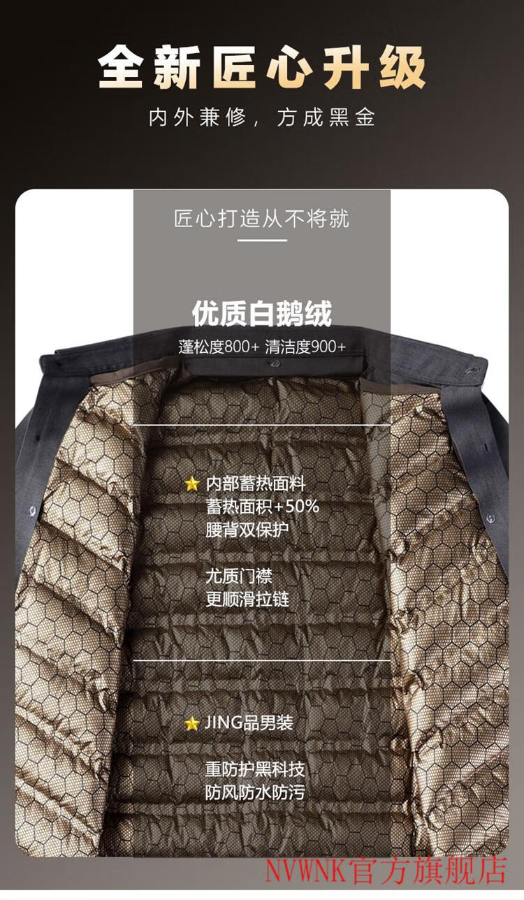 NVWNK high-end brand goose down shirt men's plus velvet thickened warm removable down liner middle-aged and elderly dad winter clothing Navy goose down 1789 165/M/3990-110Jin Jin equals 0.5 kg