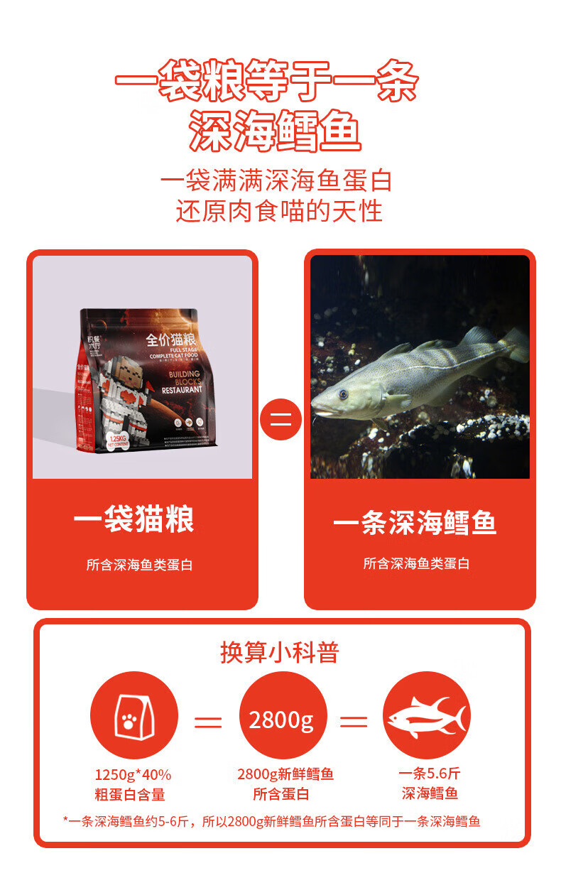 Building Blocks Restaurant's five deep-sea fish full-price freeze-dried cat food, adult cat food, kitten food, fattening cat food, and main food for gill cats. Building Blocks Restaurant's upgraded cat food 2.5 Jin Jin equals 0.5 kg