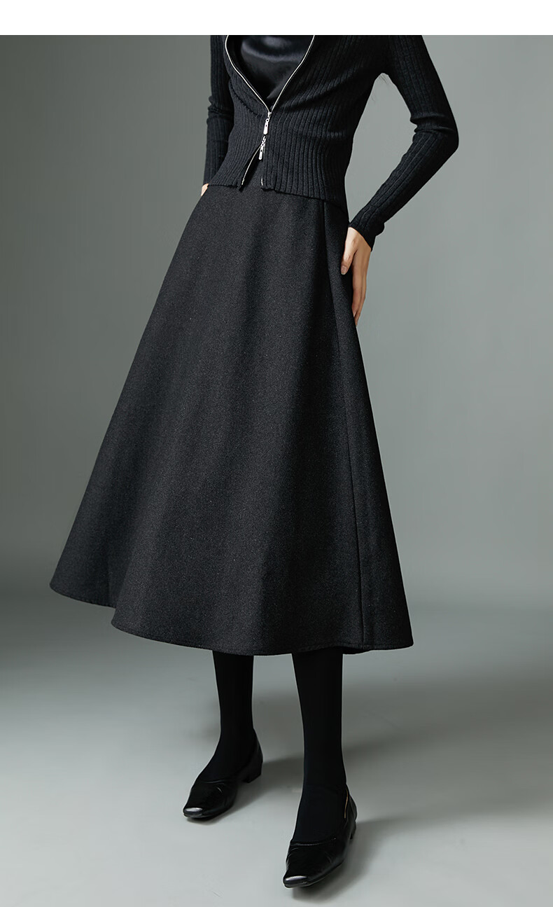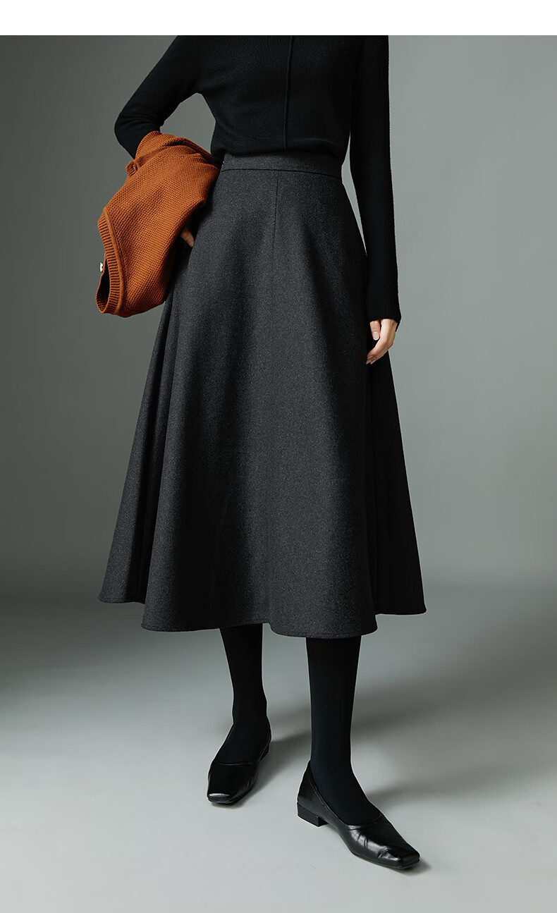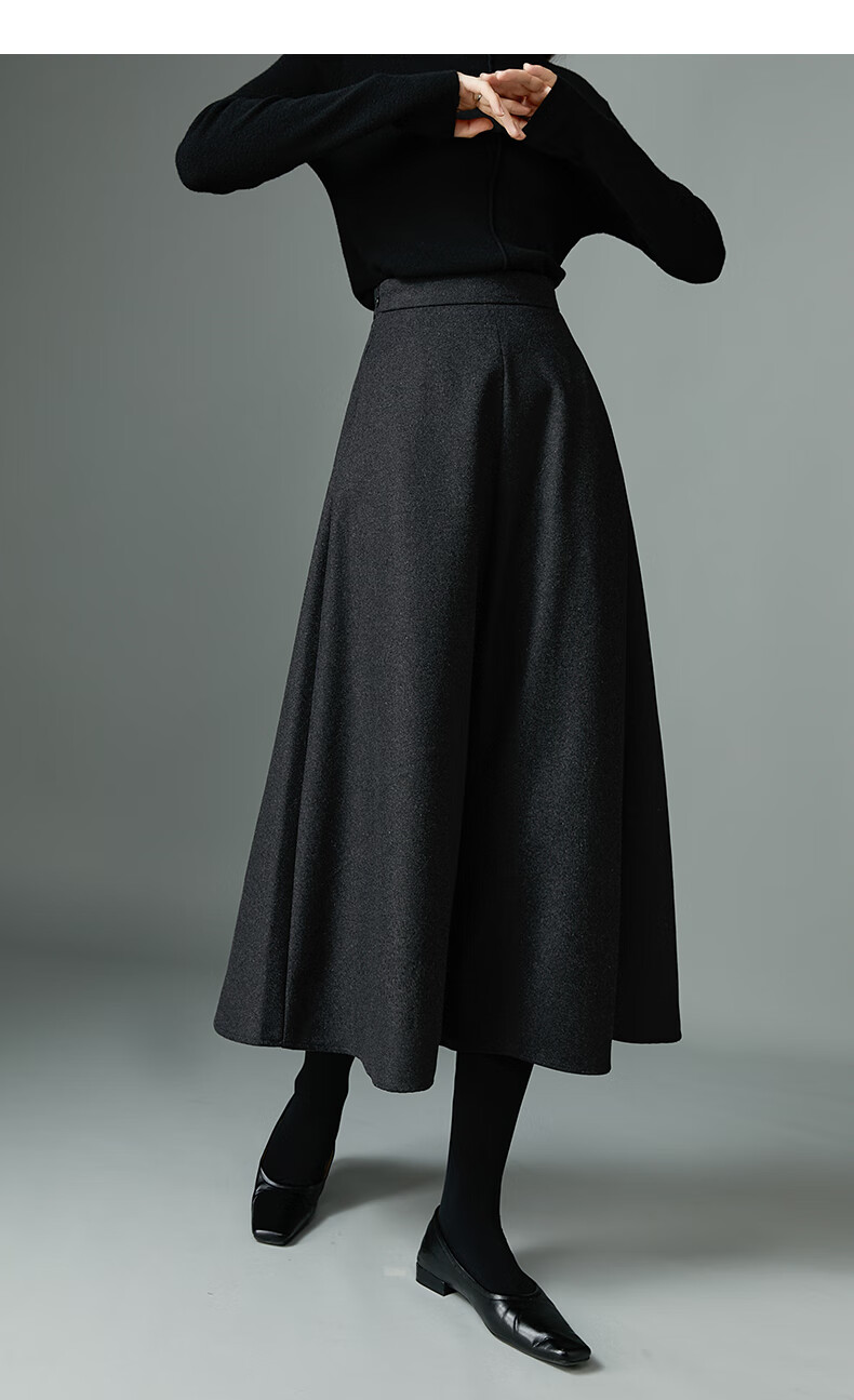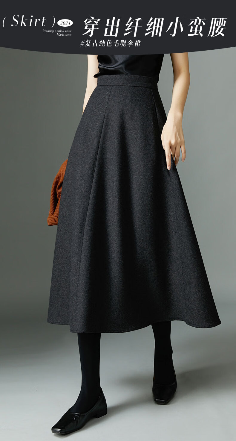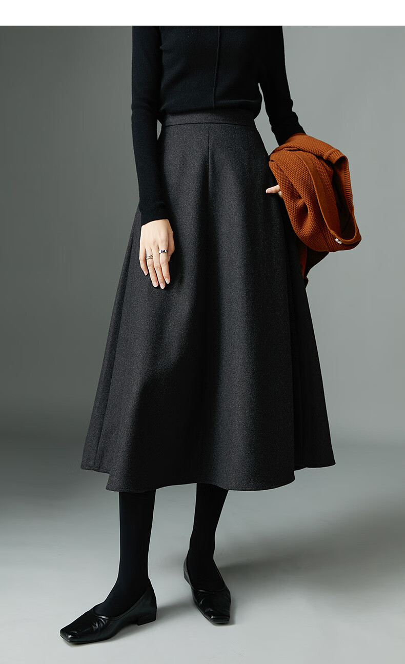 Late White Sheep Wool A-Line Skirt 2025 Winter Popular Style Western Fashion Temperament Versatile High Waist Slimming Wide Swing Umbrella Skirt Dark Gray M