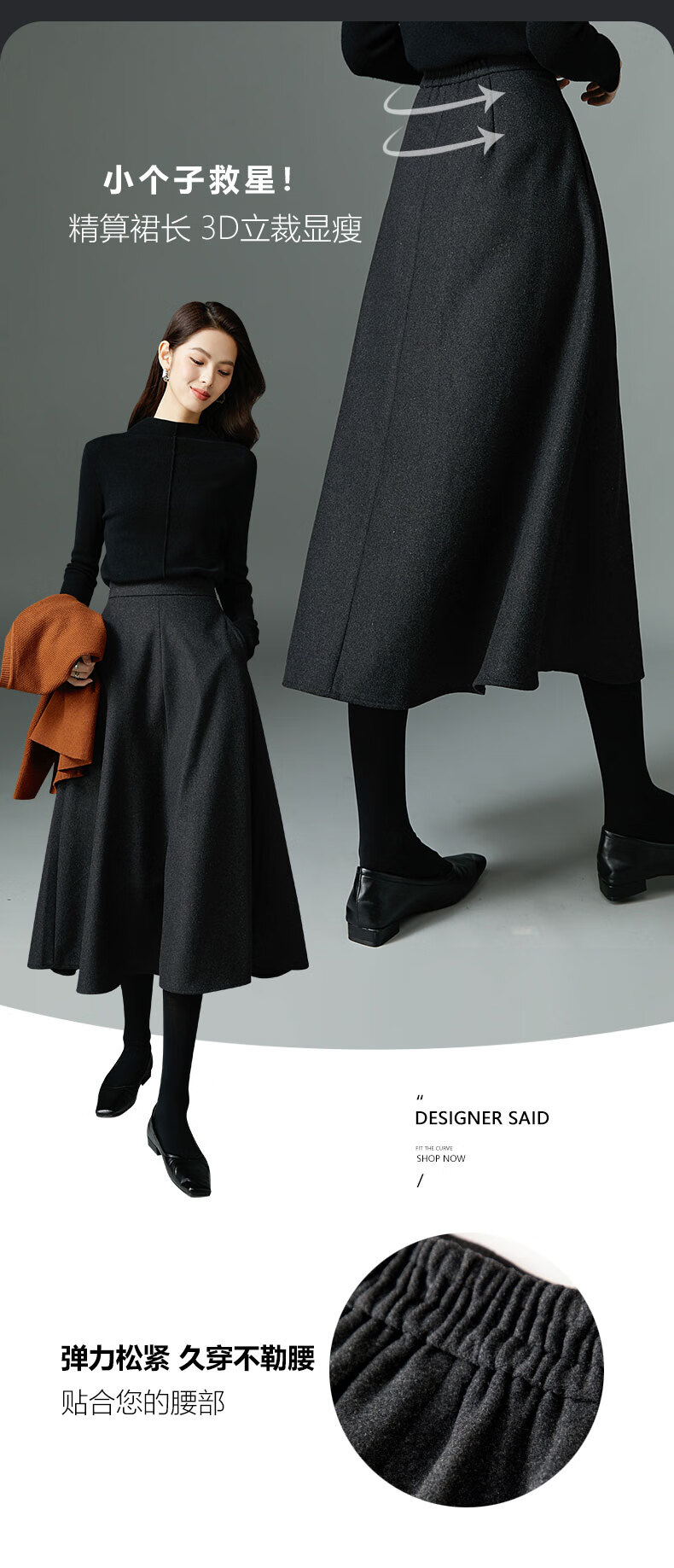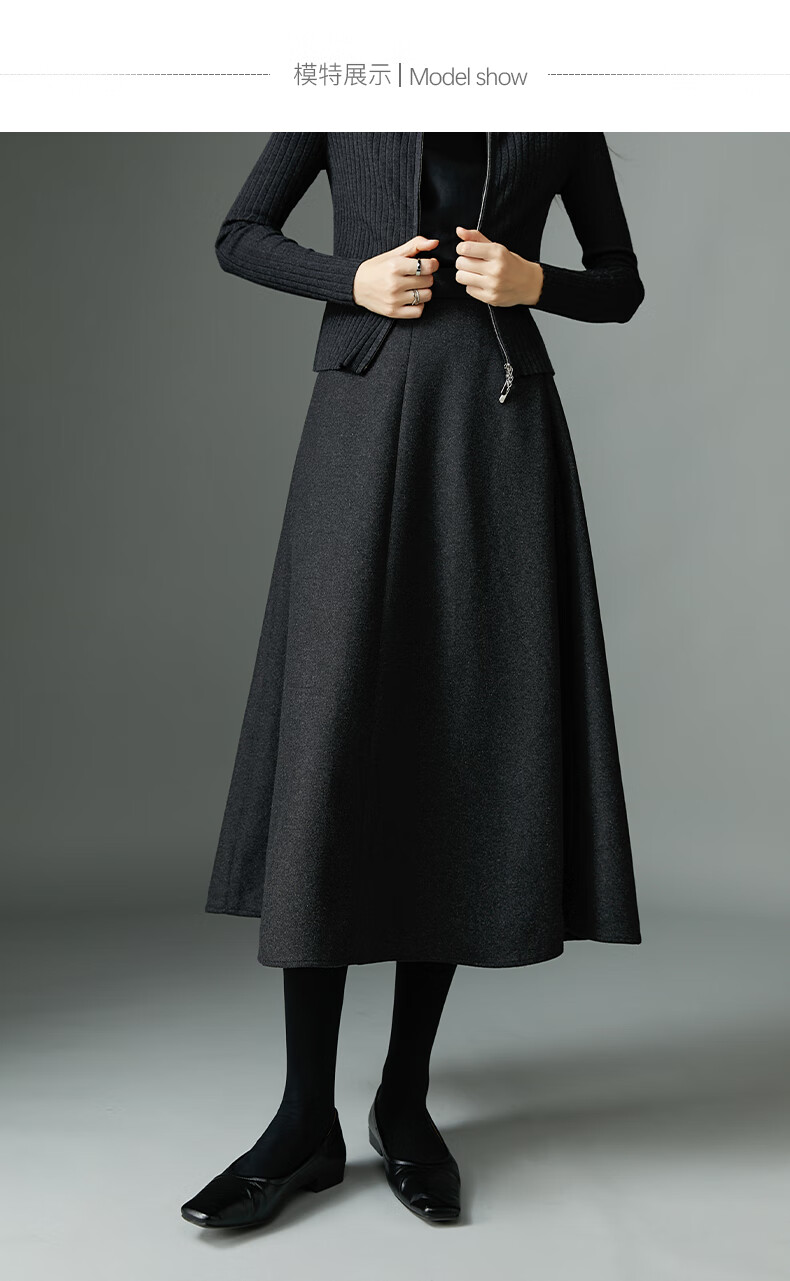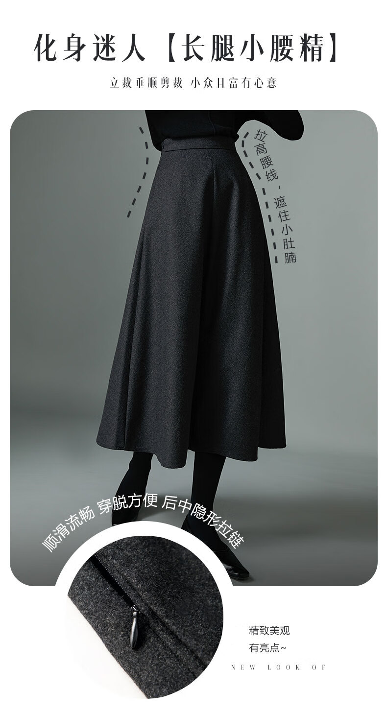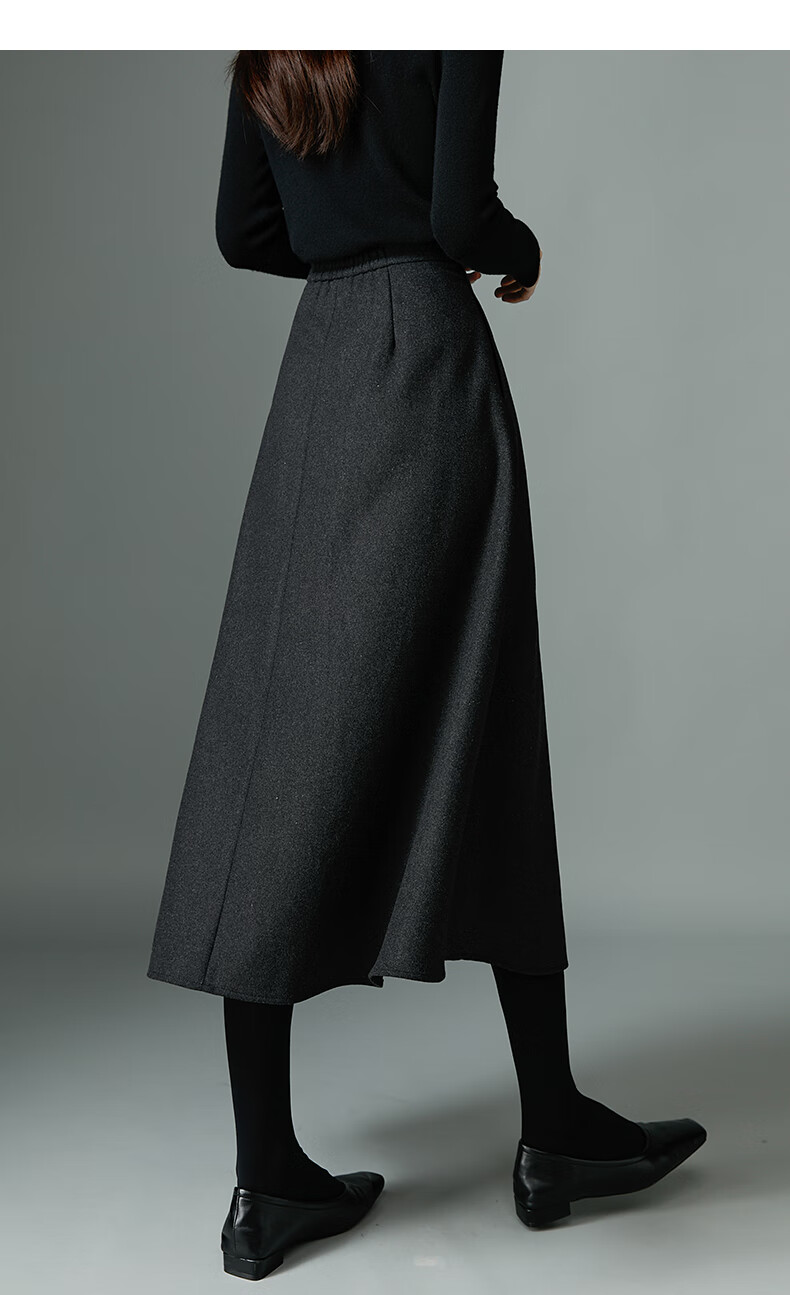 Late White Sheep Wool A-Line Skirt 2025 Winter Popular Style Western Fashion Temperament Versatile High Waist Slimming Wide Swing Umbrella Skirt Dark Gray M