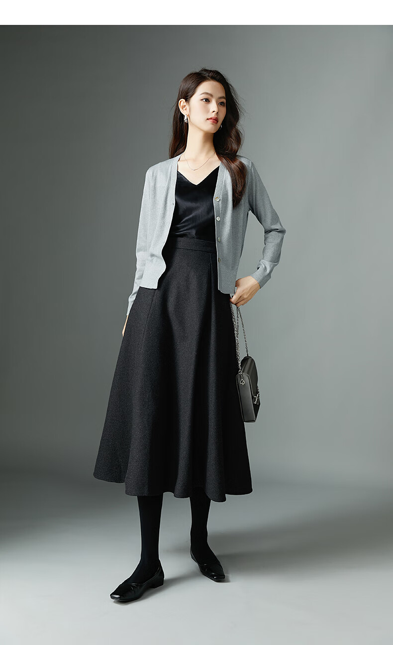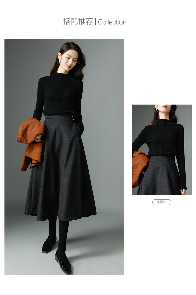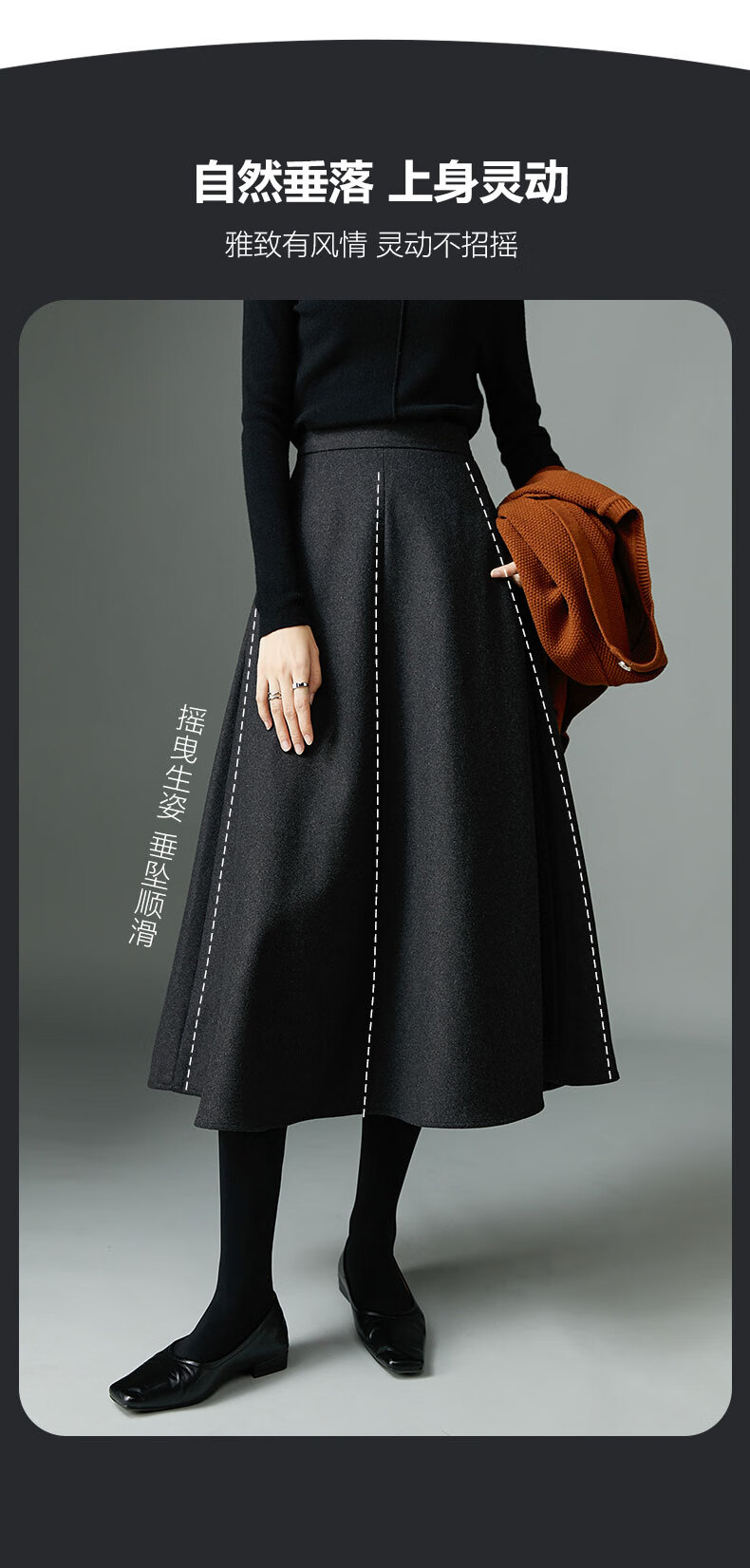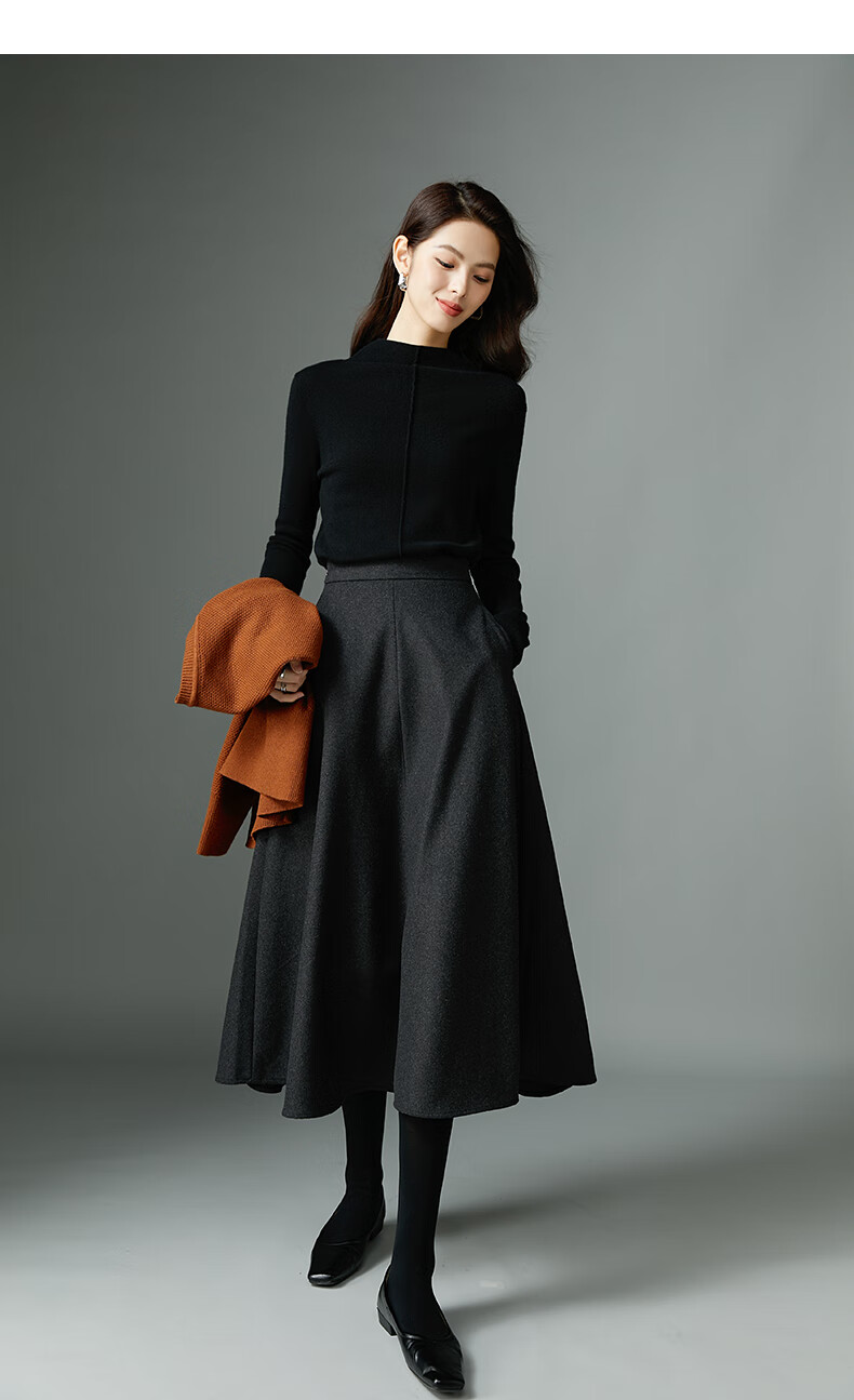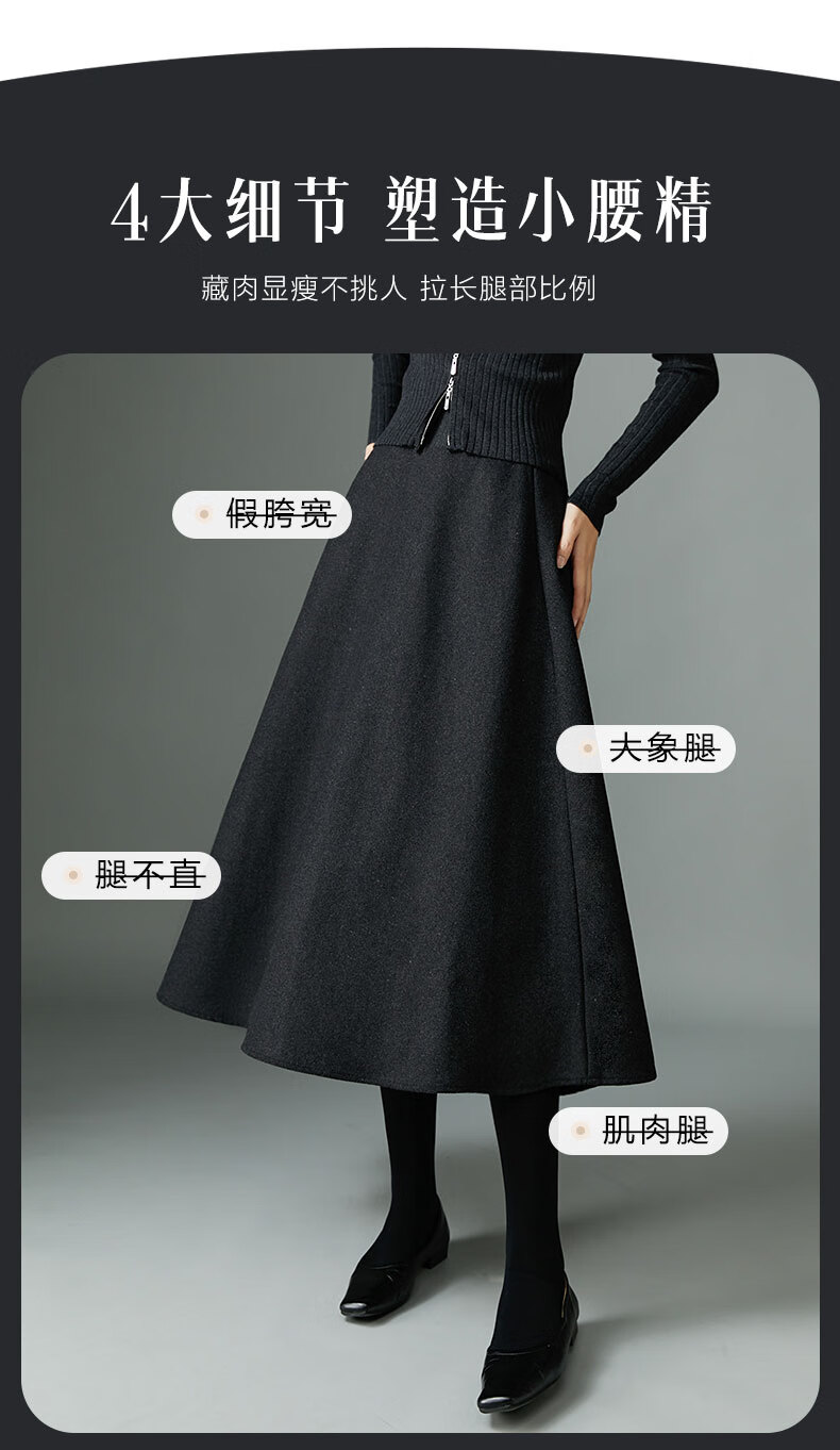 Late White Sheep Wool A-Line Skirt 2025 Winter Popular Style Western Fashion Temperament Versatile High Waist Slimming Wide Swing Umbrella Skirt Dark Gray M