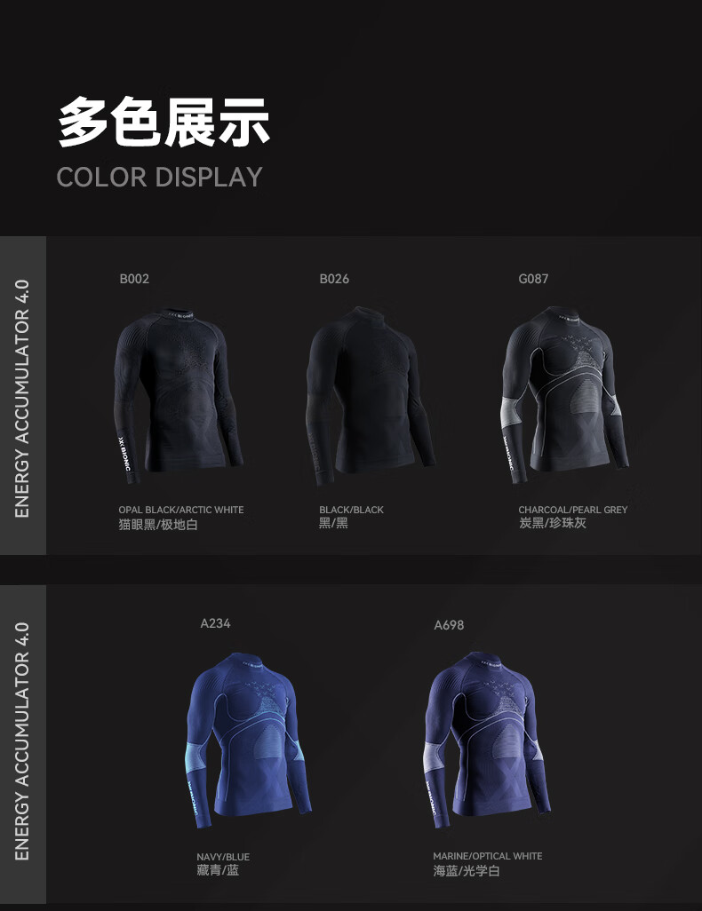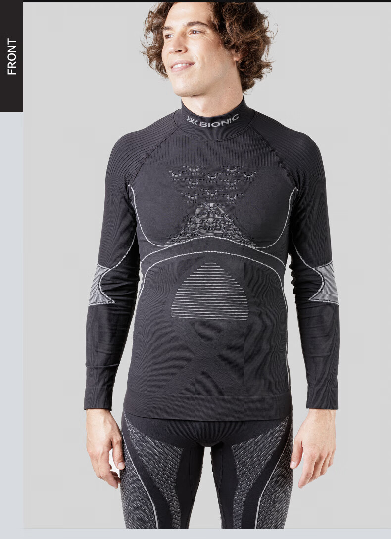XBIONIC Energy Strengthening 4.0 Men's Stand Collar Half Turtle Collar Sports Top Ski Sports Bra Hiking Mountaineering Warmth Cat's Eye Black/Arctic White L