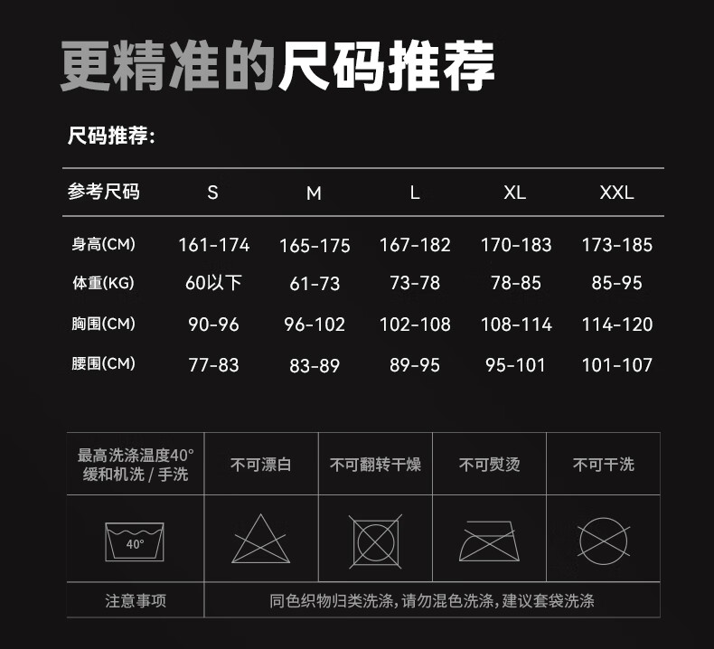 China (cm) 165 / 88-90 170 / 96-98 175 / 108-110 180 / 118-122 185 / 126-130