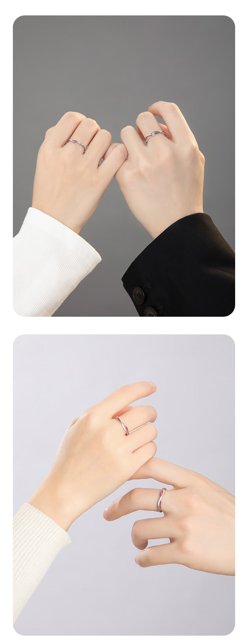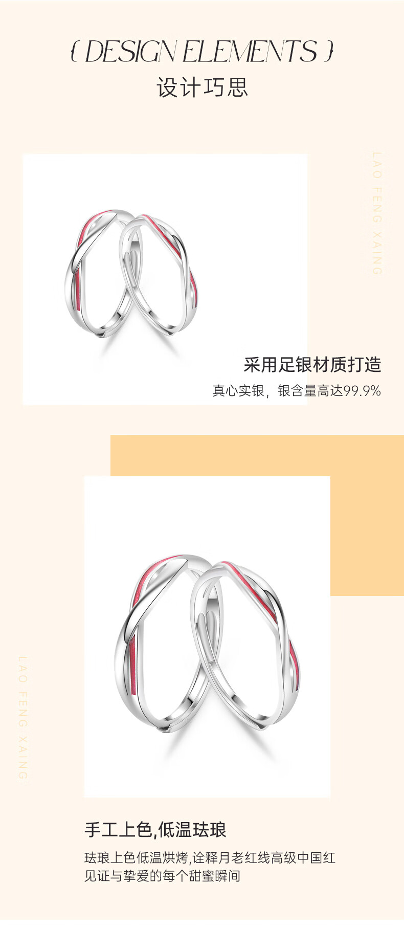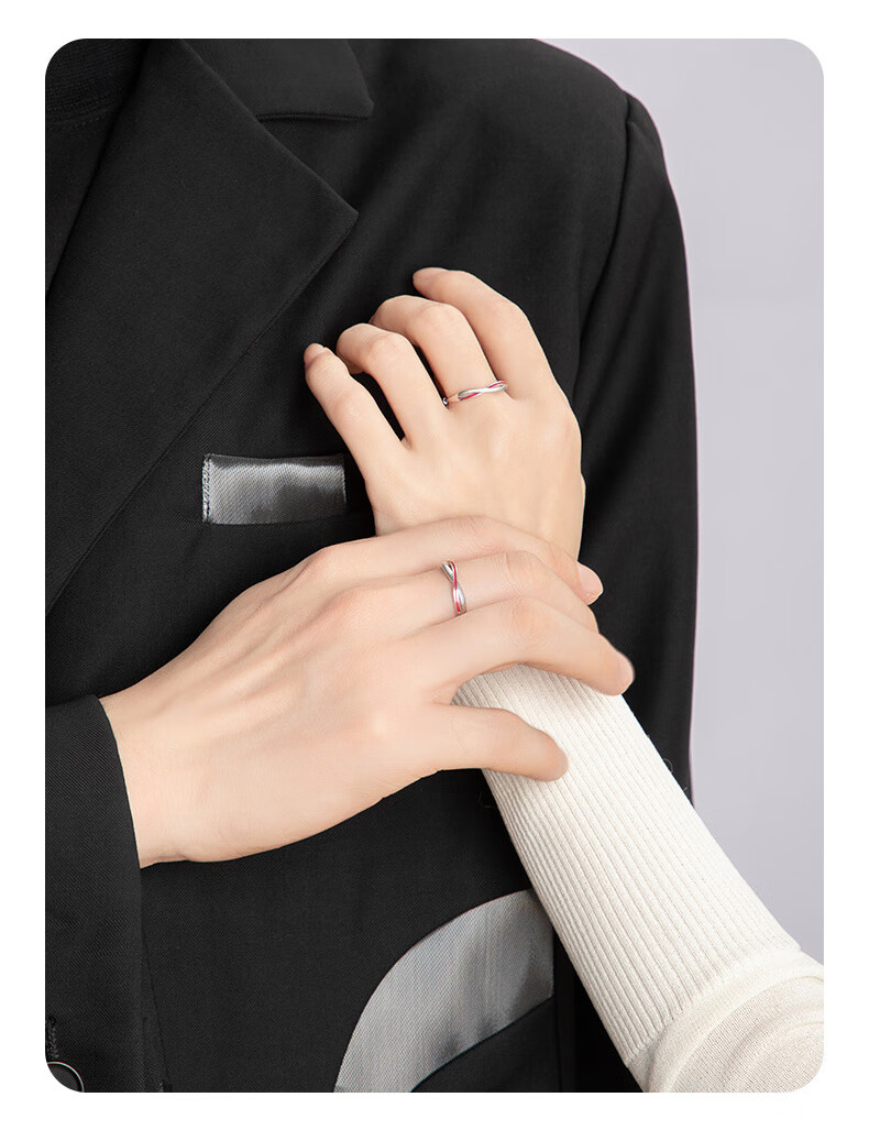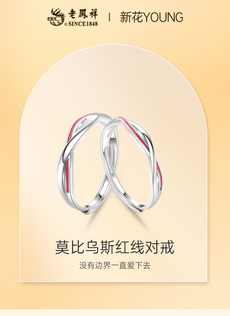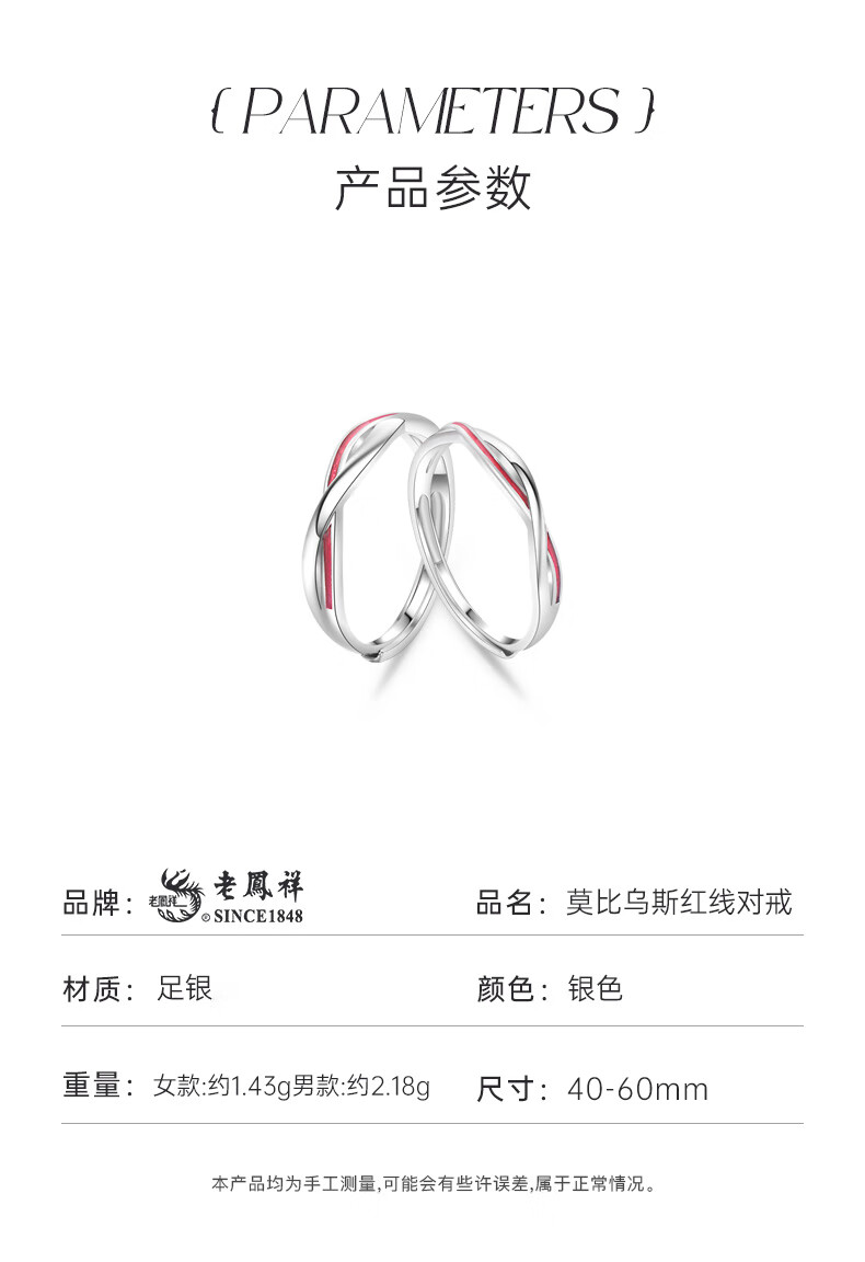 Lao Fengxiang 999 Pure Silver Couple Rings Pure Silver Ring Mobius Red Line Anniversary Birthday Gift for Girlfriend and Wife Local Warehouse/Nearest Delivery 999 Silver* Red Line Pair of Rings