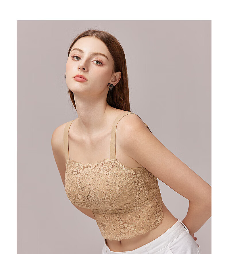 Qianami tube top bra for women with large breasts and small vest style without rims, thin section, breast-retracting and beautiful back bra, invisible skin M (75CDE)