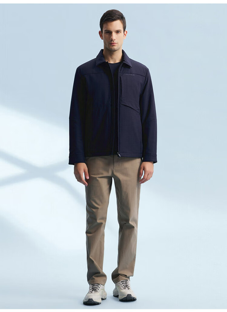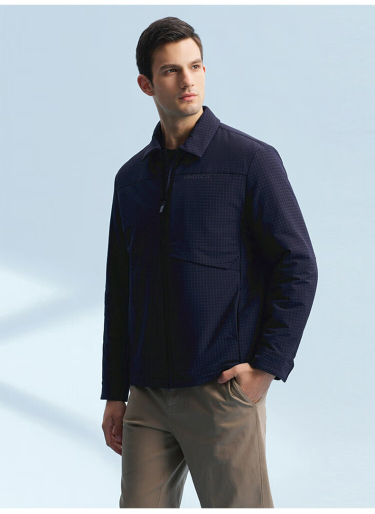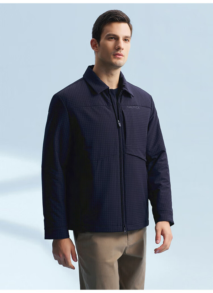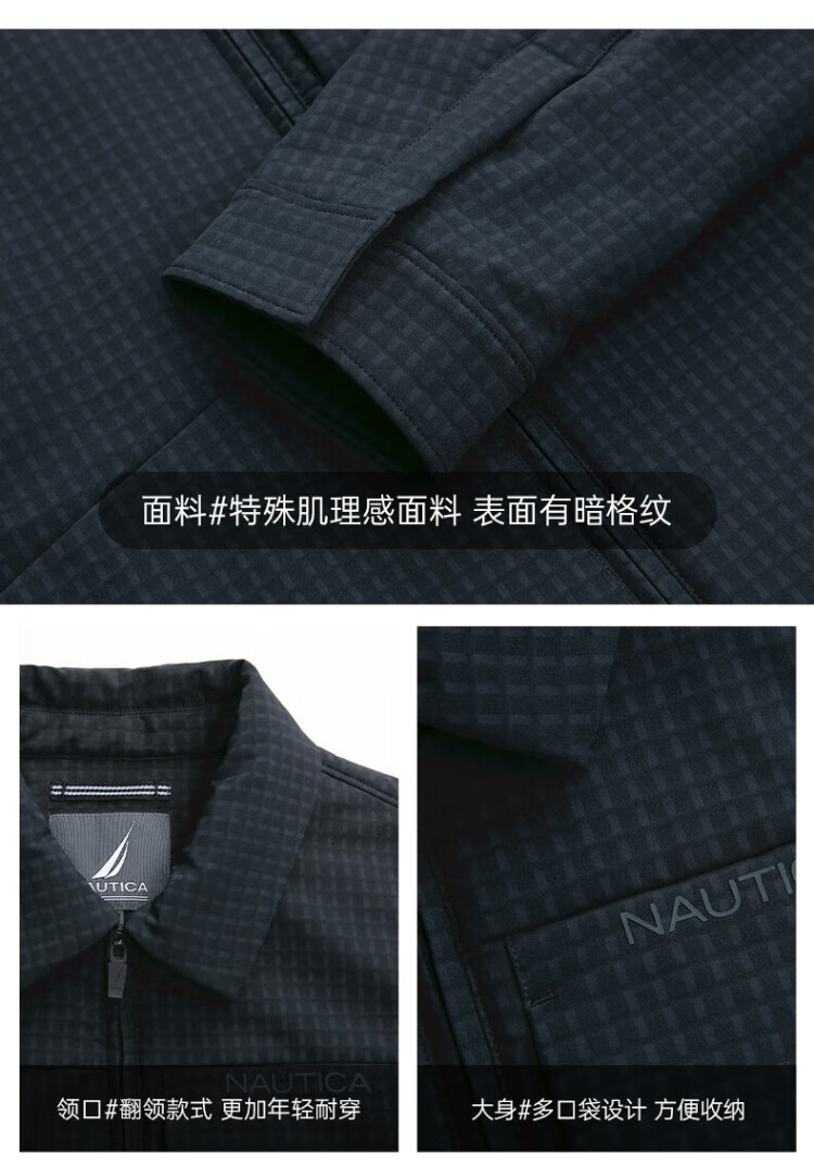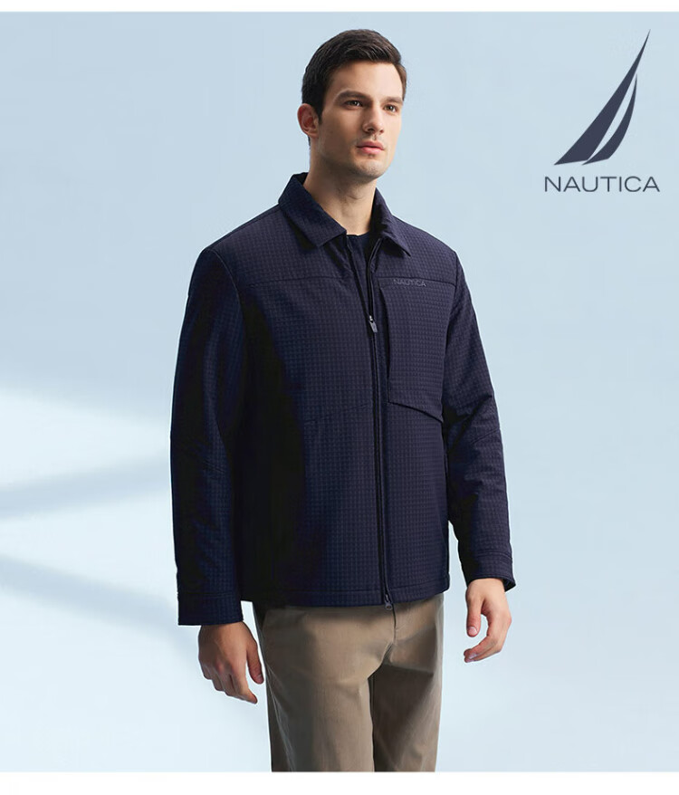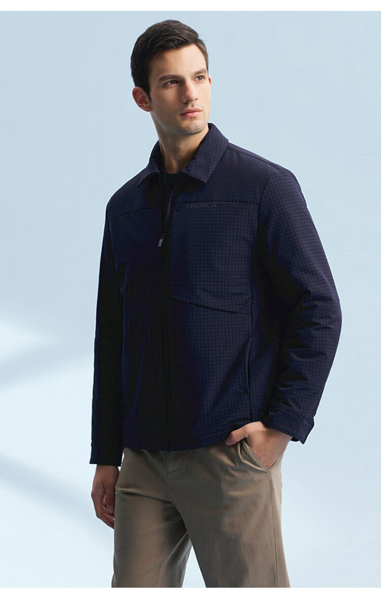 NAUTICA Shopping Mall Same Style Autumn and Winter New Dark Plaid Lapel Comfortable Warm Thick Jacket Cotton Jacket Men JM4402 Navy Blue 4NV M