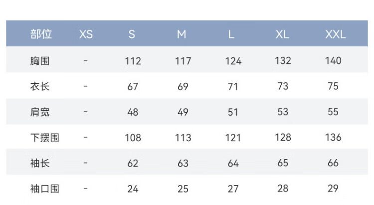 China(cm) 72-76 76-81 81-87 87-93 93-98