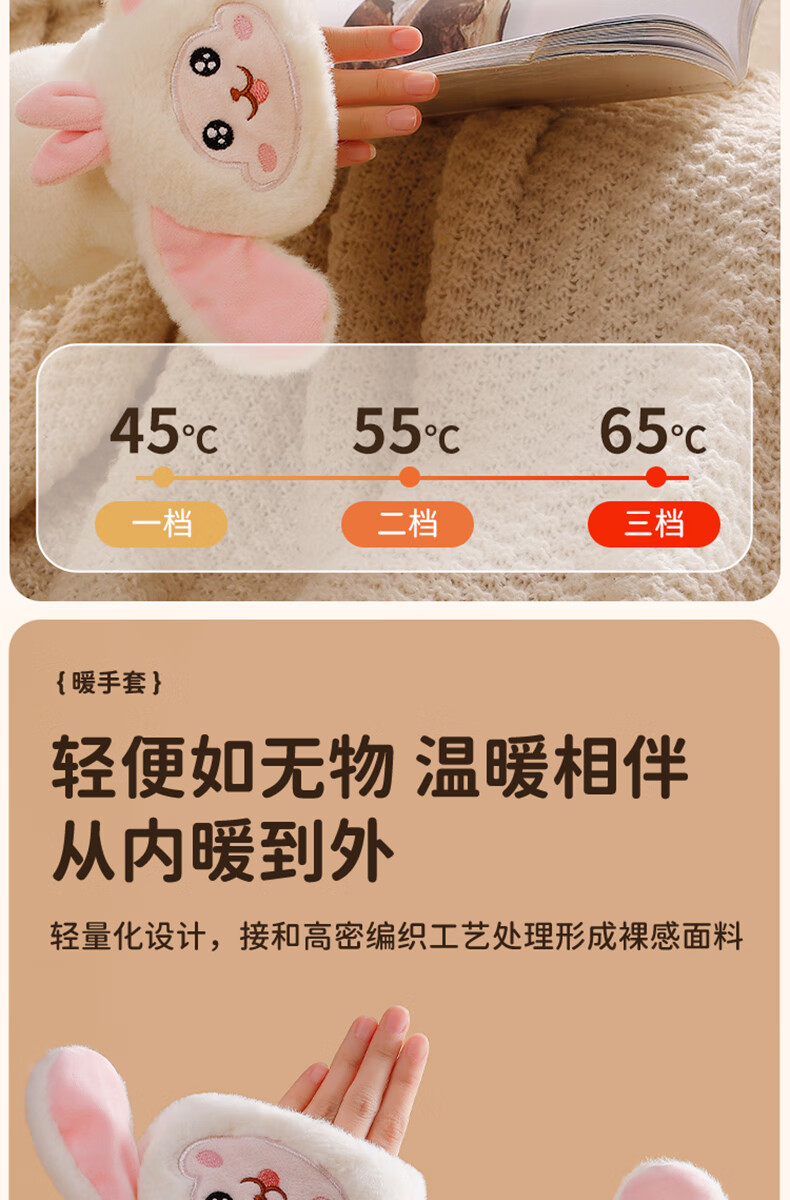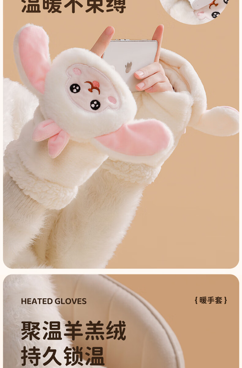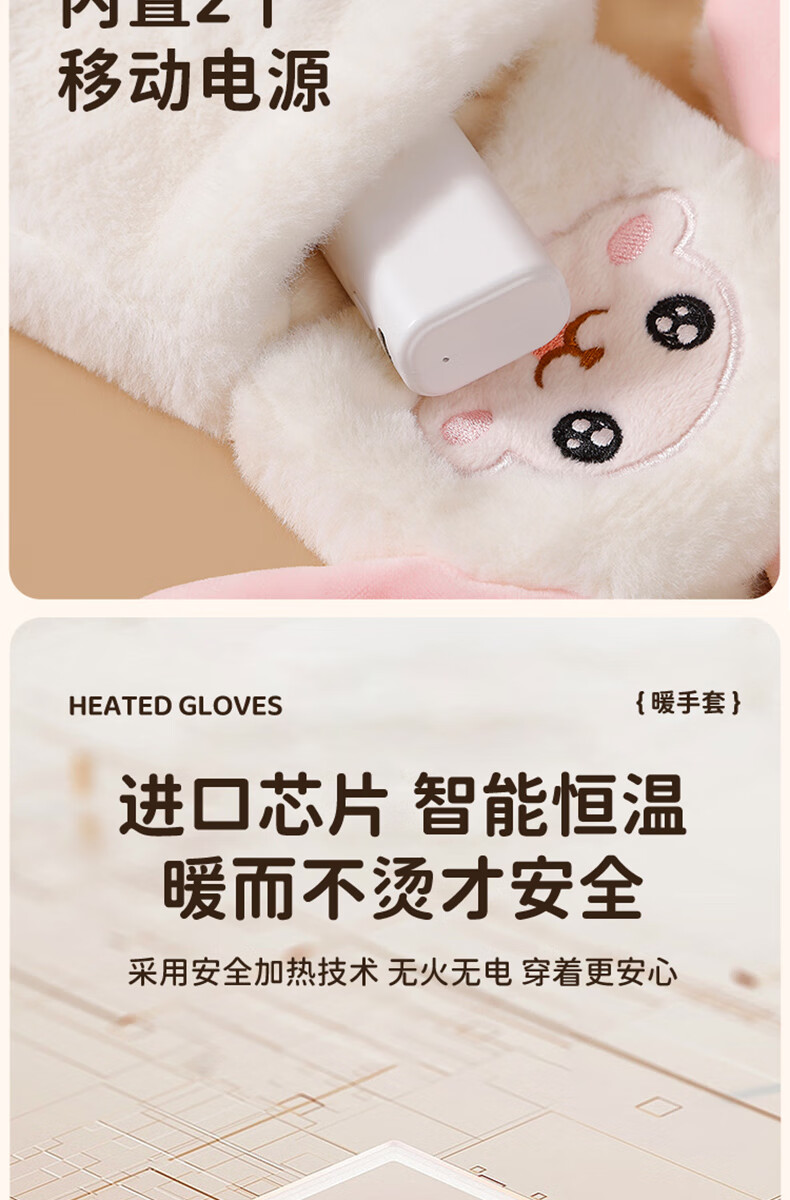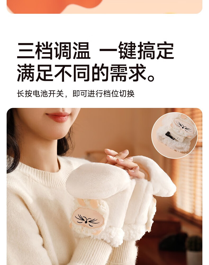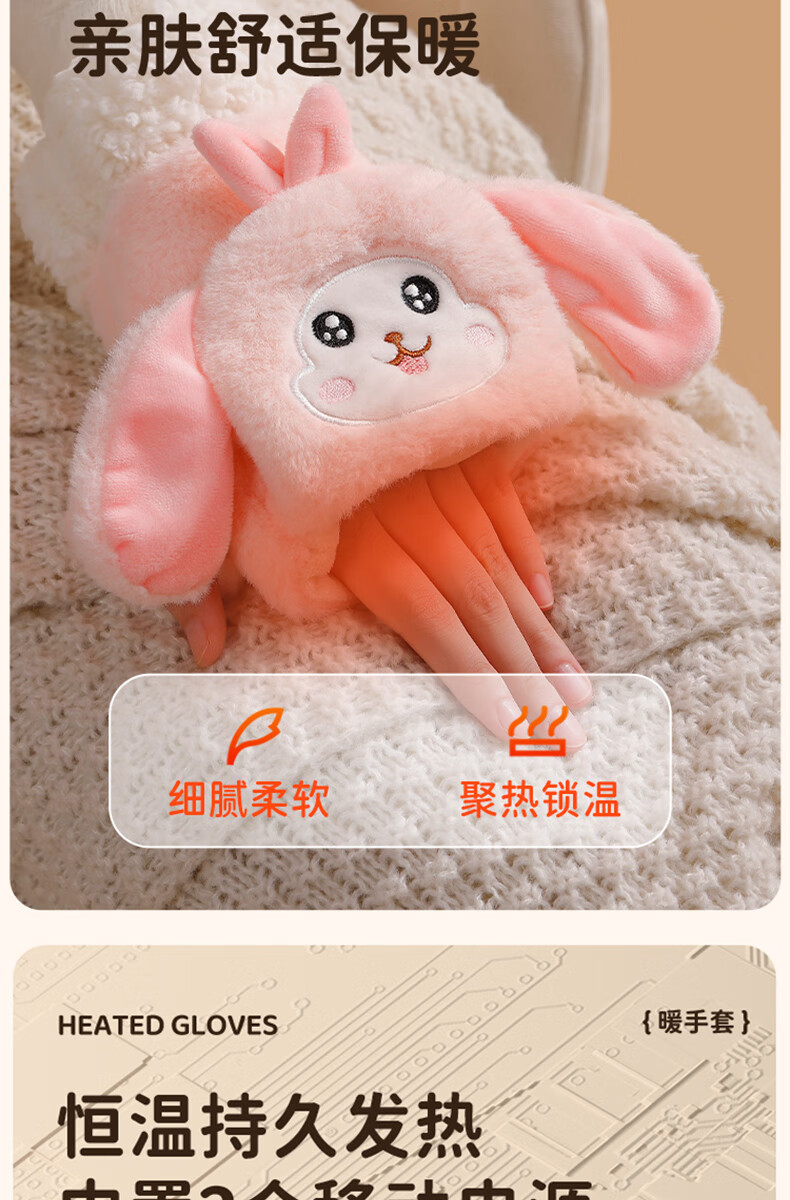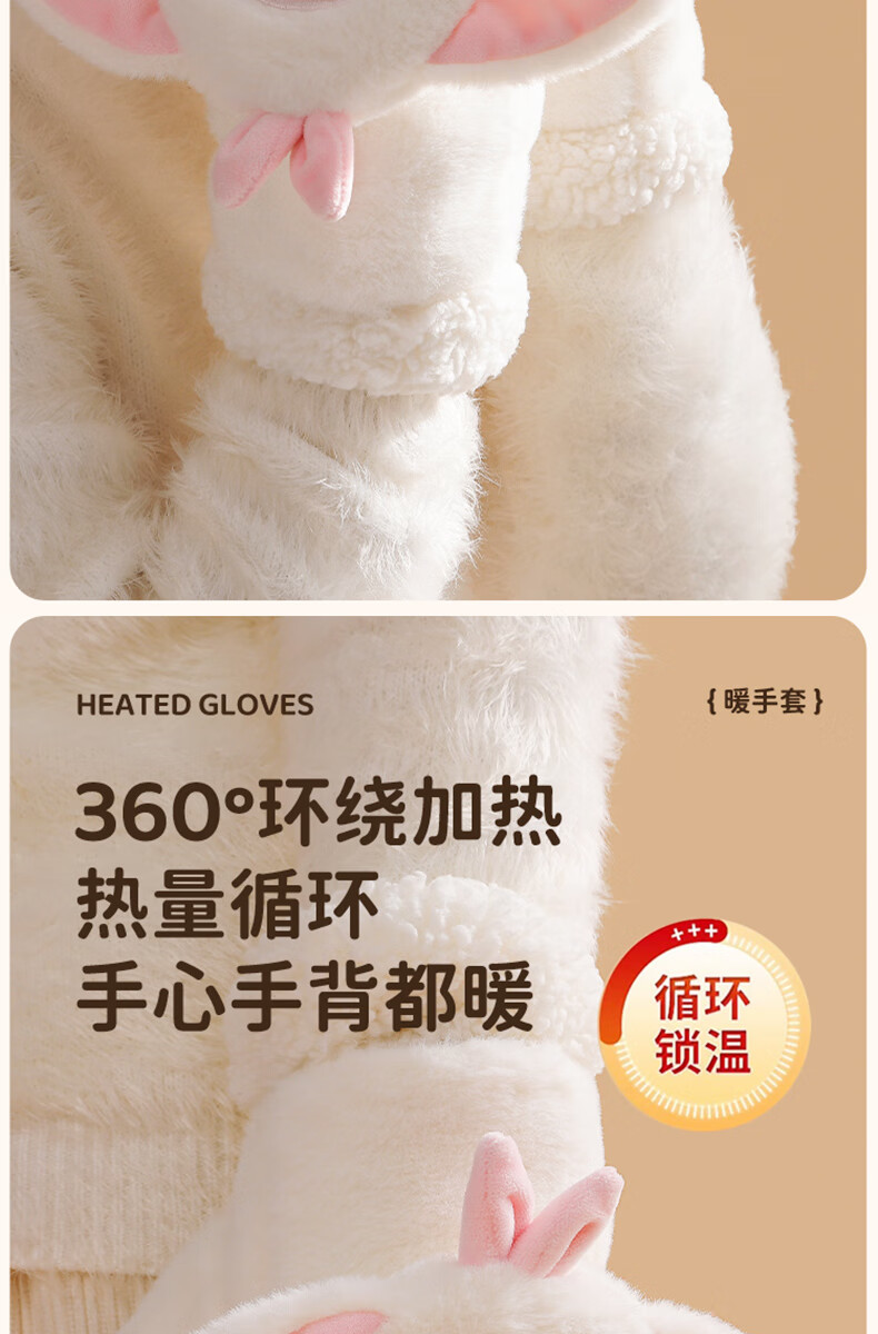 Gaboran Electric Heating Gloves Hand Warmer Heating Gloves Christmas Gift for Girlfriend Rechargeable Heating Magic Device Warmer Baby Finger-Open White Rabbit Three-speed Temperature Adjustment + Washable 3 Seconds Quick Heating丨Free Mobile Power Supply*2
